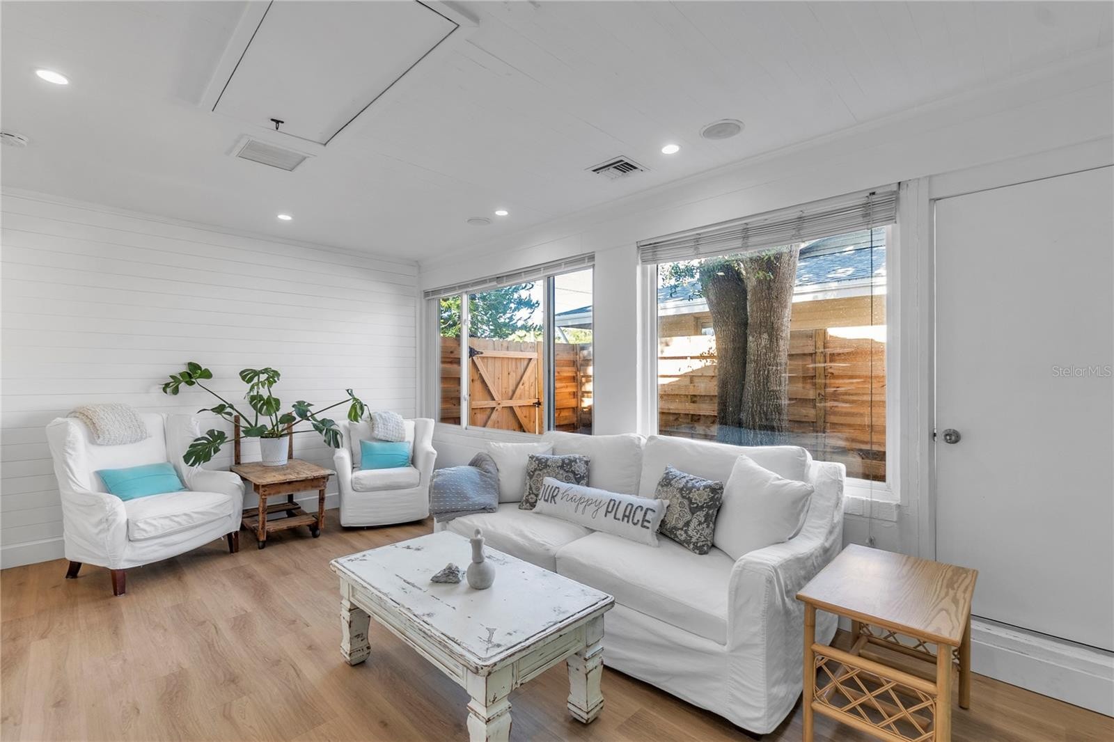 Located in Sarasota’s Sapphire Shores neighborhood, this 1,164-square-foot block home offers a functional layout with thoughtful modern updates throughout. Priced at $449,000, the two-bedroom, one-bath residence is move-in ready, featuring a full suite of kitchen appliances, a washer and dryer, and negotiable furnishings for a streamlined transition. The exterior includes two separate driveways, providing ample off-street parking, along with a private outdoor shower and a fire pit in the rear—amenities that highlight the property's outdoor space and Florida climate. Just three miles from downtown Sarasota, the property is conveniently close to local dining, cultural attractions such as the Ringling Museum, and nearby educational campuses. This location is characterized by its historic architecture and pedestrian-friendly streets, offering proximity to the bayfront and city amenities.
