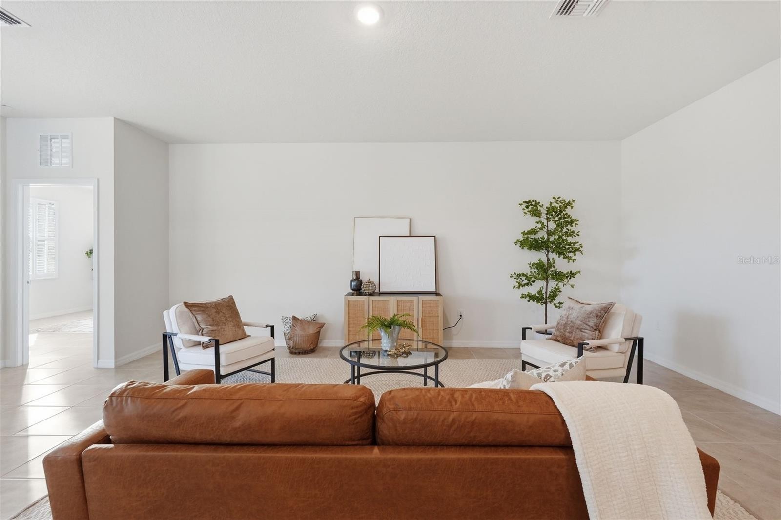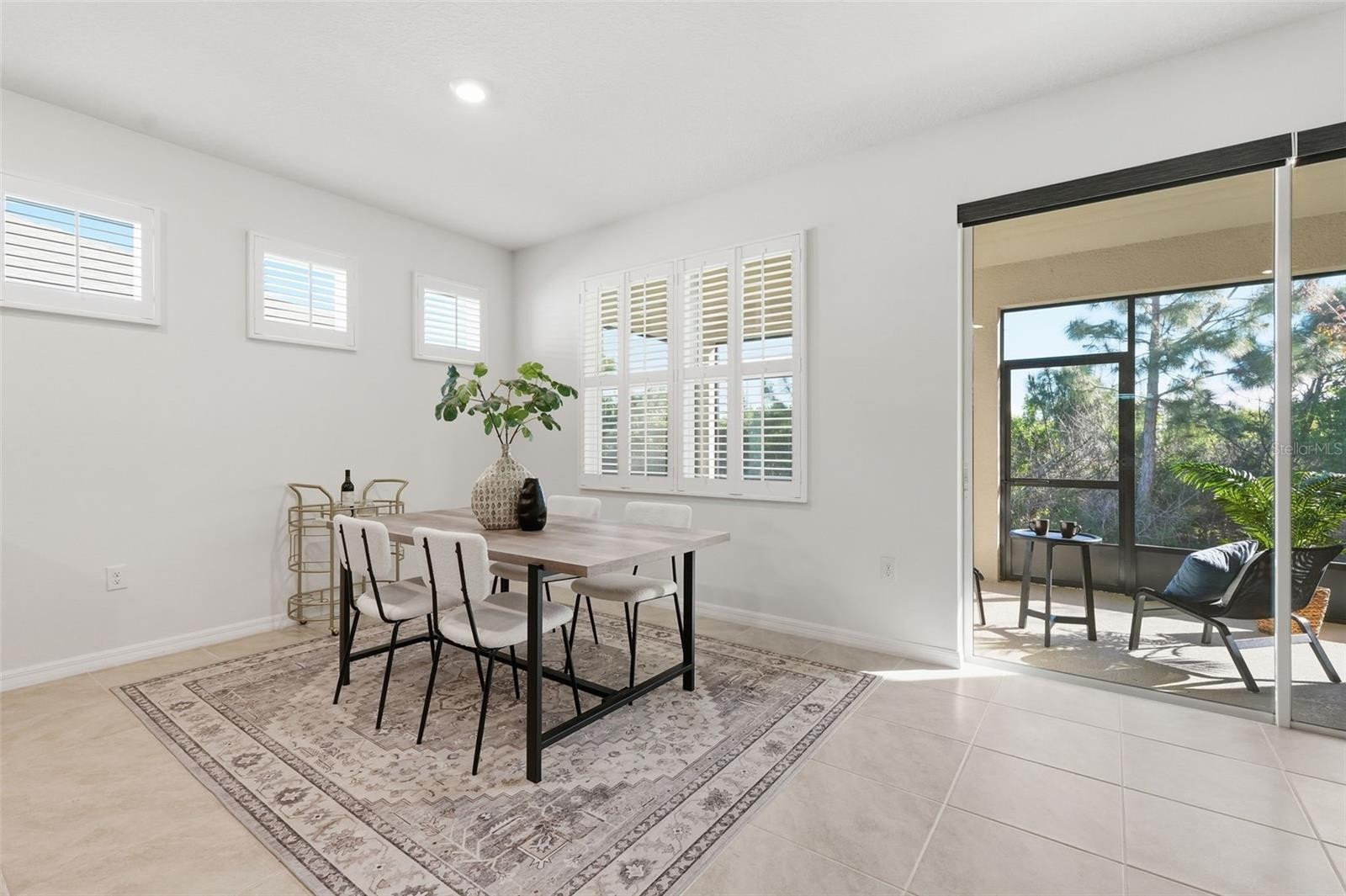 Why wait on new construction when you can buy a beautifully maintained 2021 home in the gated Willow Walk community of Palmetto now! Offering four bedrooms, two bathrooms, and 2,068 square feet of living space, this home combines modern design and a peaceful setting with no rear neighbors. A newly screened-in front porch creates a warm and inviting entry, leading into a spacious foyer with beautiful tile flooring and plantation shutters throughout. The home features a light and bright open floor plan, with a seamless flow between the living room, dining area, and kitchen, perfect for everyday living and entertaining. The open kitchen is well-appointed with updated stainless steel appliances, granite countertops, abundant cabinetry, a large island for dining or meal prep, and a walk-in pantry for added storage and organization. Designed with a desirable split floor plan, the primary suite offers privacy and serene tree-lined views from the window. It includes a large walk-in closet and a private en-suite bathroom featuring a dual-sink vanity, glass-enclosed shower, and private water closet. The additional bedrooms are all nicely sized and versatile. Sliding glass doors from the living area lead to a recently added screened-in lanai, providing the perfect space to relax and enjoy the Florida weather while overlooking a peaceful, natural backdrop. Hurricane shutters are also included for added peace of mind. Residents of Willow Walk enjoy access to resort-style amenities, including a sparkling pool and playground, all within a secure gated setting. Conveniently located near I-75 and I-275, this home offers easy access to nearby shopping, dining, and commuting routes. This move-in ready home truly has it all. Schedule your private showing today!