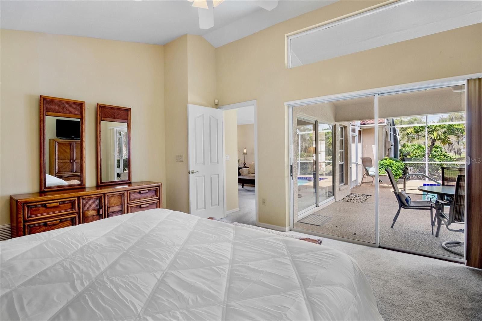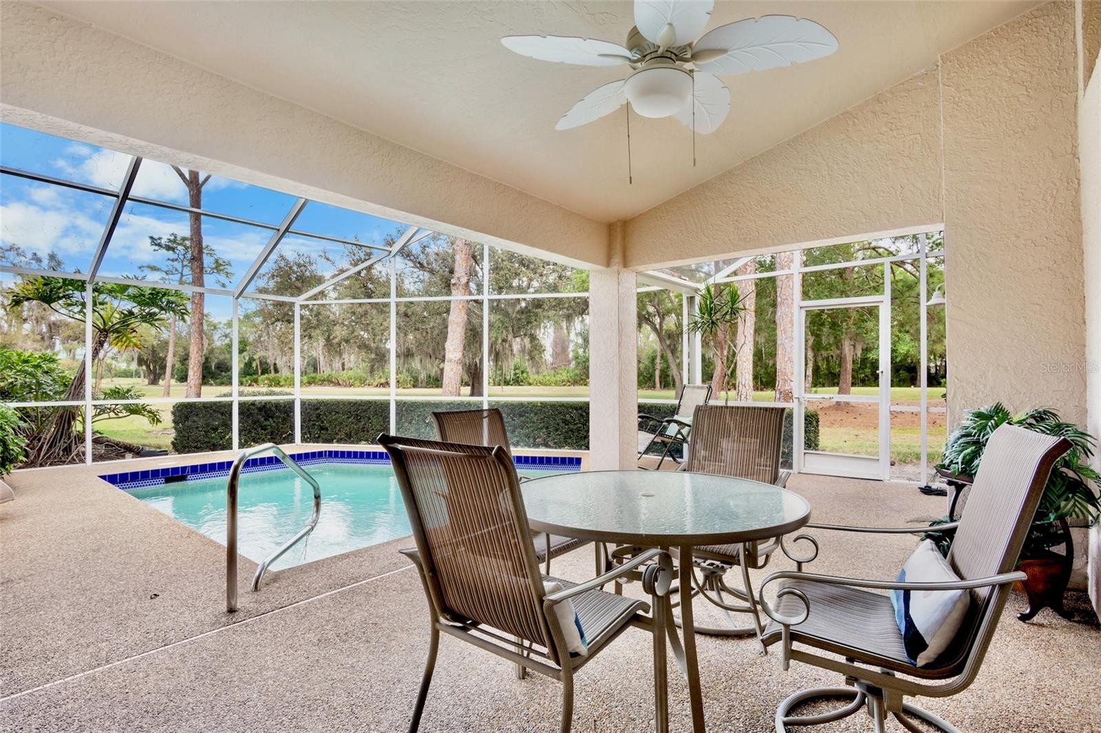 Easy living with a golf course view. This residence boasts vaulted ceilings and a spacious floor plan. Enjoy your morning coffee in the updated kitchen. Gleaming stainless appliances, quartz countertops and numerous cabinets make this a highly functional space. Just off the kitchen is a private patio with bistro set. The restful owners suite looks out to the pool and has an expansive ensuite that includes a large walk in closet , a soaking tub and an updated standing shower. The additional bedrooms provide ample space for your family and guests. The open living and dining room looks out onto the private pool and golf course. Enjoy the afternoon in your own pool after a day at the beach. Lyndhurst association maintains the grounds and building exterior including the tile roof that was installed in 2012. This home has great storage options including a two car garage with room for your bicycles and beach toys.The Meadows is a resort lifestyle in the best location in Sarasota. Get out in the sunshine and enjoy 1,650 park-like acres which includes 14 miles of walking and biking trails. Meadow residents Renaissance Access Plan which offers access to The Meadows Country Club facilities which include: Fitness, Jr. Olympic Pool, Dining, Community Sponsored Events, Pickleball, Tennis. Conveniently located to downtown Sarasota, award-winning beaches, arts and culture, Benderson Park recreation lake, MoteSEA Aquarium, the future Sarasota Orchestra. The Mall at UTC with extensive shopping and dining options is minutes away. This home comes furnished and move in ready.