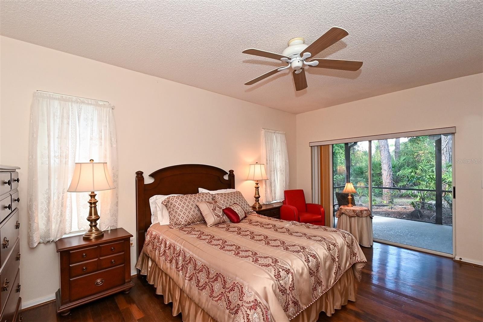 Turnkey furnished single family home in the Meadows is available to rent. The large home has three bedrooms, two bathrooms, split bedrooms, and a living room/dining room combination. The kitchen has stainless appliances and a breakfast nook. The primary bedroom has a queen sized bed, two big closets and an en suite bathroom with double sinks, garden tub, stall shower and a linen closet. The first guest bedroom has two twin beds and the second guest bedroom is set up as an office with a pull out sofa bed. The guest bathroom has a tub/shower combination. The home has a caged lanai with heated pool, several sitting areas and lush landscape view of a golf course. The home has a laundry room, two car garage and is located on a very quiet cul-de-sac. Available January 15, 2026 for an annual rental or short term rental. Long term rental rate is $3,000. Short term, two month or longer, rate is $6,500 monthly plus state/local tax, booking fee and damage deposit. Located in the Meadows which is home to the Meadows Country Club that offers seasonal, social and full memberships, three golf courses, club house and tennis courts (home does not come with a country club membership but guest/tenant may sign up for one themselves.) No trucks allowed unless it can be parked in the closed garage due to the Meadows community rules. Close to Nathan Benderson Park, University Town Center, Sarasota/Bradenton Airport, I75 highway, University Parkway, shopping, grocery stores, coffee shops and much much more.