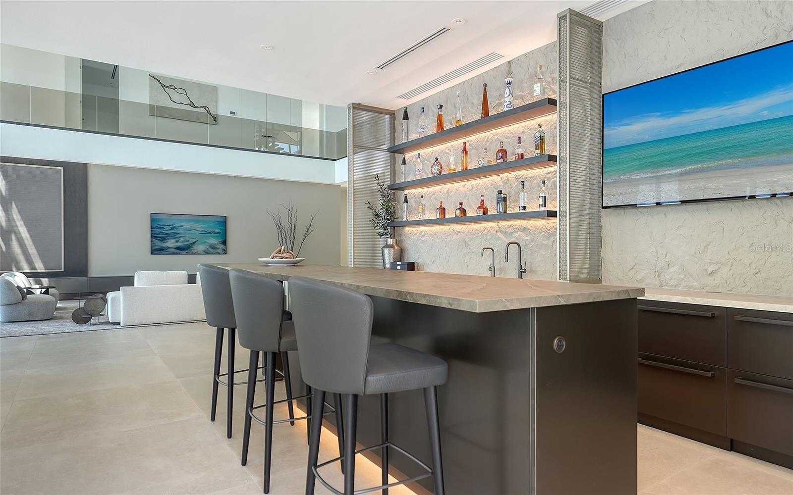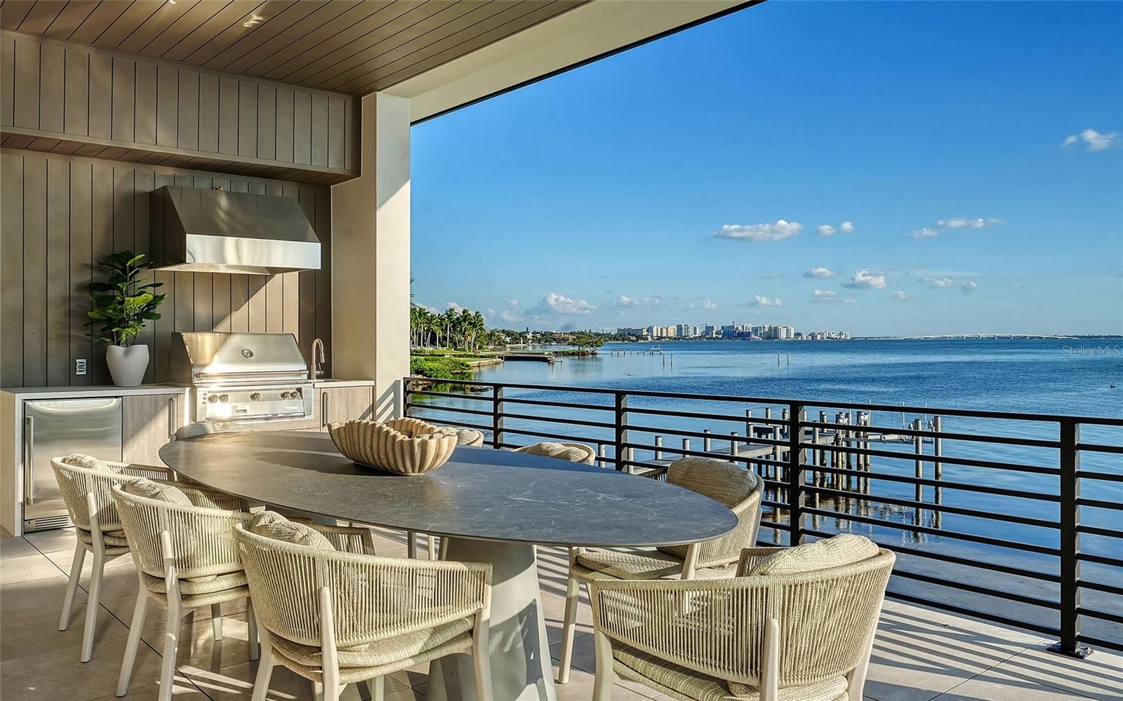 World-renowned as Florida’s cultural coast, Sarasota’s heritage of culture and the arts provides a distinguished backdrop for its newest architectural tour de force – Lunara. Set in Sapphire Shores, one of Sarasota’s most historic and culturally rich neighborhoods, the location is quintessentially Sarasota. This prized location, originally chosen by one of the city's foremost visionaries for his own Ca' d'Zan mansion, commands what are widely regarded as the city's best views, with sweeping panoramas of Sarasota Bay, the downtown skyline, and the landmark Ringling Bridge. Steeped in a tradition of the future, Lunara transforms state-of-the-art materials from around the world through the enduring craft of local artisans. Designed by Mark Sultana of DSDG Architects and built by Michael Voigt of Voigt Brothers Construction, the residence reveals itself with dramatic geometry and floating planes. Every angle captures the shimmer of water, every surface plays with light, and every room welcomes you into a life surrounded by beauty. The heart of the home opens with dramatic presence — the 11-foot pivot entry door leads to a soaring double-height living space, where an 11-foot automated glass wall extends to an equally lofty trellised sun deck. Despite its scale, the residence feels warm and personal, thanks to a no-hallway design directive that connects each area with purposeful flow. The impressive entertainment bar, which features floating liquor display shelves and a climate-controlled wine display, stands distinct yet linked to the ultra-high-end kitchen, which includes a retractable pass-through to a concealed prep kitchen. Outside, the al-fresco kitchen and pool deck share the same floor level as the interior, creating a connected indoor-outdoor living experience that amplifies the home’s spacious elegance. Lunara’s pleasures are abundant, anchored by amenities that blend function with imagination. A two-level swimming pool cascades from infinity edge to lap lane, offering a visual spectacle as much as a place for play or exercise. The glass elevator, tallest of its kind in a Sarasota residence, glides between levels with clarity and grace. The 10-car garage is designed to be more than just storage with bay-facing sliding glass doors that invite fresh breezes, natural light and a perfect view to enjoy while caring for your prized collection. The rooftop deck, a stage for Sarasota’s sunsets, invites leisure and entertainment in equal measure, complete with a putting green, fire pit and a flex space adaptable to yoga at dawn or cocktails at dusk. Even the practical touches are elevated – a dedicated “Christmas tree closet”, concealed floor-to-ceiling doors, and a movable wall of privacy glass that transforms the primary bath into either open vista or private retreat. Beyond prestige, the best of Sarasota is always close at hand. Within one mile you’ll find SRQ International Airport and The Ringling Museum. Downtown Sarasota, The Bay park, and Marina Jack are just five miles away, with Sarasota Memorial Hospital, St. Armands Circle and Lido Beach within six miles. IMG Sports Academy and St. Stephens School are within eight miles from your door. It is rare to find a residence that is at once a work of art and a place of retreat, where scale feels human and luxury feels livable. In Lunara, architecture becomes lifestyle, and lifestyle becomes sanctuary. This is a home that does not merely impress, it endures.