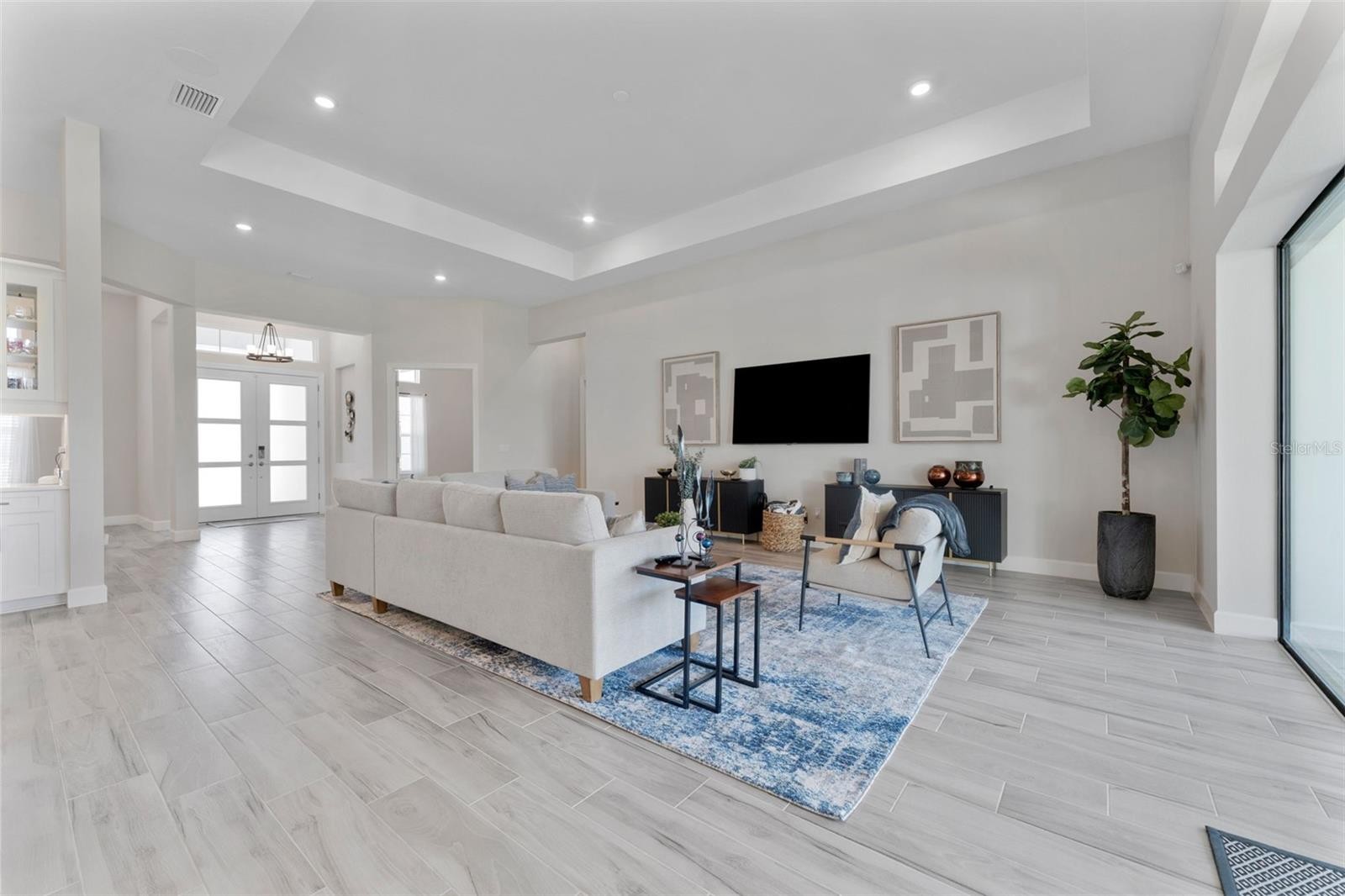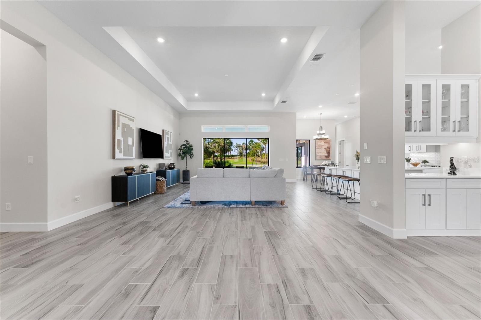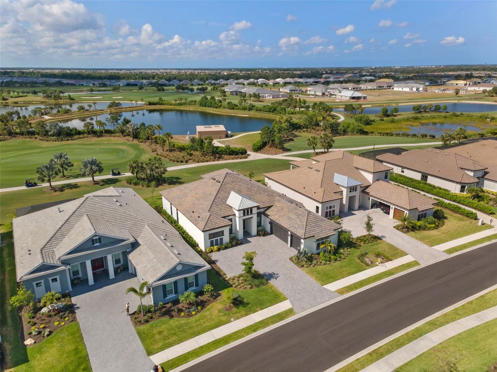 Live the ultimate Florida lifestyle in this rare North facing Beacon, a no longer built floorplan—the largest single-story model in Esplanade at Azario, Lakewood Ranch. This golf deeded Waterview home has very low miles and barely lived in. This gorgeous open floor plan has it all offering 3 bedrooms + 3.5 Baths + Great Room + Gourmet kitchen with Butler’s pantry + Formal Dining room + Bonus room + Study + Casual Dining + Laundry Room. The home features double entry doors, soaring 12-foot tray ceilings, recessed lighting and porcelain tile throughout. An extended lanai overlooking the 1st hole has serene water views. Spacious en-suite bedrooms, oversized owner's suite with spa-like bathroom, and a 3-car garage with epoxy flooring. This is the only Taylor Morrison floor plan with 2 HVAC systems with wi-fi thermostats. New security system, four built-in ceiling speakers, walk-in custom closets in each bedroom. The home is pre-plumbed and wired for heated pool/spa with approved permit as well as outdoor kitchen. Golf membership is also included. Resort amenities include large community pool and hot tub, Clubhouse, Bahama Bar (poolside restaurant), Culinary Center, Barrel House and Bistro (formal restaurant), Vine & Olive (pizza place), Pro Shop, Aqua diving range, tennis, pickleball, bocce, well equipped fitness center, spa, scenic walking trails, onsite activity director for all ages, & much more. Maintenance-free luxury in Lakewood Ranch is the Florida Lifestyle you've always envisioned. Schedule your private tour today. For full property walk thru please visit https://redmsolutions.aryeo.com/videos/0196ab74-cc0f-7082-903e-0e657f2a0f52