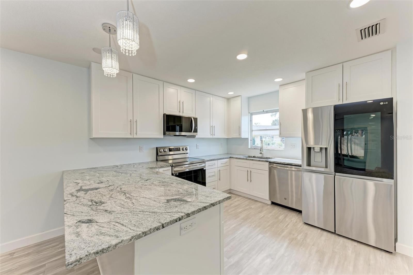 Welcome to your dream retreat! This stunning, fully remodeled condo is a rare find, combining high-end finishes with an unbeatable price. Step inside to discover luxury vinyl plank flooring and a brand-new kitchen complete with gleaming granite countertops and stainless steel appliances. The spacious primary bedroom features a stylish barn door leading to an updated bathroom, complete with a wheelchair-accessible shower for ultimate convenience. Unique glass slat doors add a modern touch, while the glassed-in lanai offers the perfect spot to unwind and soak in the Florida sunshine. A washer and dryer in the carport make laundry a breeze. Enjoy resort-style living with fantastic amenities, including a pool, pickleball courts, shuffleboard, and a vibrant clubhouse designed for active 55+ living. Centrally located near shopping, dining, and downtown, this condo is ideal as a second home or your forever oasis. Don’t wait—schedule your showing today and make this exceptional property yours!