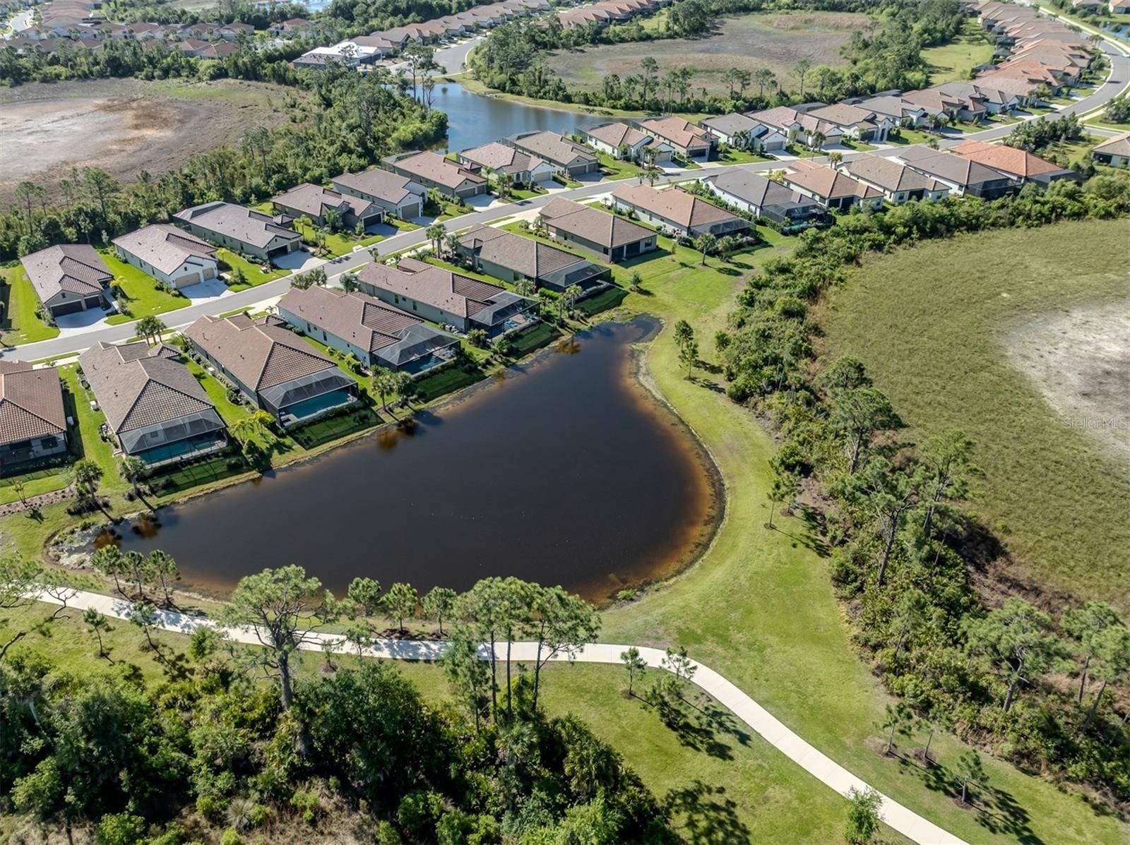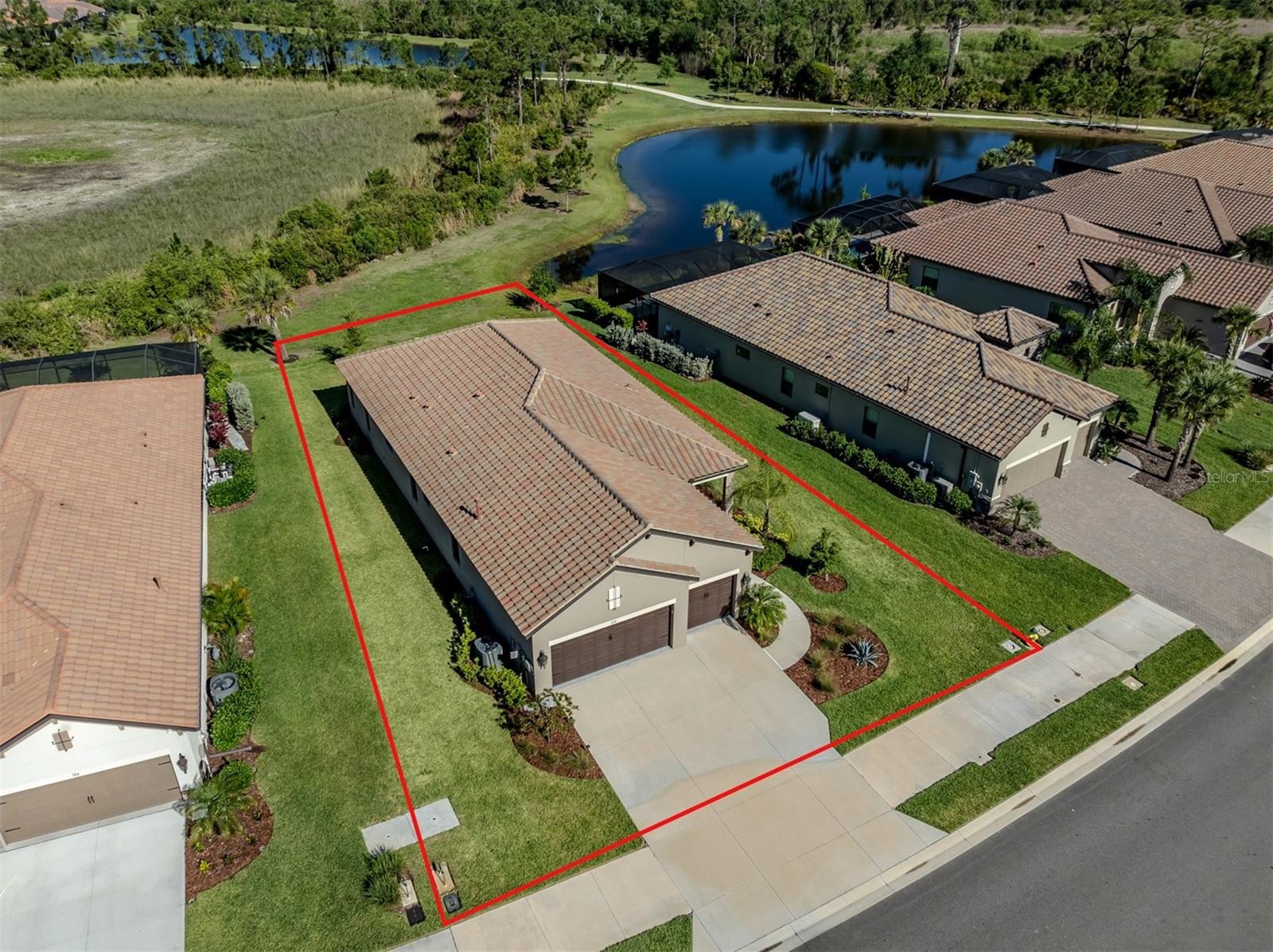 Safety, Luxury, and Location. This turn-key furnished home checks all the boxes. This Neil-built home in Vicenza features 3 bedrooms plus a den/study, 2.5 baths, and a 3 car garage. This sturdy built block home with a tile roof and hurricane impact glass windows and doors provides the safety and security every family wants and energy efficiency as a bonus. The desirable flood zone “X” and the quality of construction will keep your insurance costs low. HOA fees of $195 per month are a steal for this amenity rich community with no CDD Fees. The 3-car garage with sparkling epoxy floor has room for all your vehicles & toys and is the closest thing to a basement you will find in Florida. Enjoy your morning cup of coffee in privacy on your screened lanai overlooking the nature preserve and pond. Abundant white cabinets and quartz countertops give the kitchen a modern clean look. The island style kitchen with stainless steel appliances and gas stove is spacious, functional and has an abundance of workspace and storage. The spacious pantry will keep you organized. The great room is the center of all activity with easy access to the 3 spacious bedrooms and separate office. The owner’s suite has his/hers walk in closets, an ensuite bathroom with roman shower and dual sinks with quartz counter tops. Tray Ceilings, 8 ft doors, and too many upgrades to mention. Vicenza is amenity rich offering a heated resort style pool & hot tub, social clubhouse with kitchen, event lawn, 2 bocce ball courts, 4 pickleball courts and 2 dog parks. Nature trails run throughout this gated and deed restricted community. Just minutes from the Venice Myakka Park offering canoe/kayak launch, fishing, rest rooms, hiking, picnic shelter, grills, and mother nature at her best. Offered below its original purchase price.