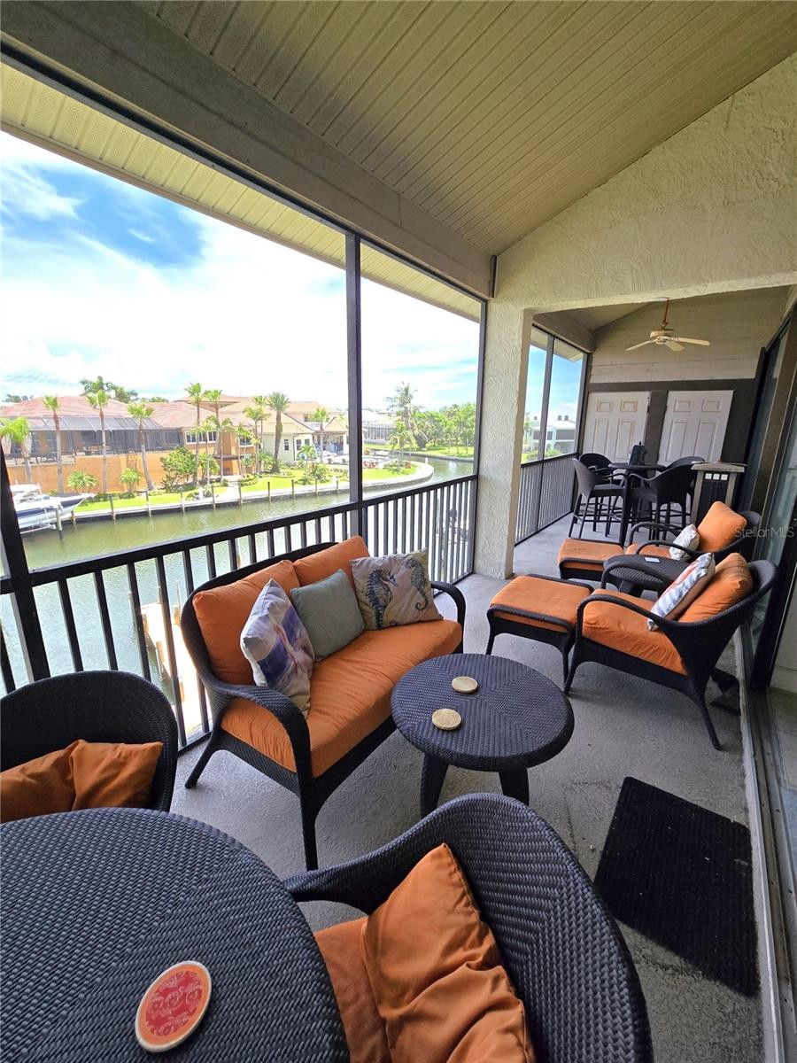 Annual rental! Great 3BR/3BA condo/ townhome with beautiful canal/boat views and your own 26 FT boat slip. It also offers 24 FT vaulted ceilings, fireplace, first floor master and a large screened lanai. The upscale, gated community of Mariner's Cove is located on a peninsula in the quaint fishing village of Cortez. Only one mile to beaches or restaurants and shopping. There are 2 heated pools, tennis/pickle ball courts, and picnic areas. Also a boardwalk along the marina for leisurely strolls. The condo has beautiful ceramic tile floors in the main living areas. It is an end unit with gorgeous views of the pool area from the front porch and offers two covered parking spaces and extra storage. The master opens to screened lanai with wonderful views. Immediate occupancy! Owner will consider seasonally for 2025-2026 for $4500 per month.