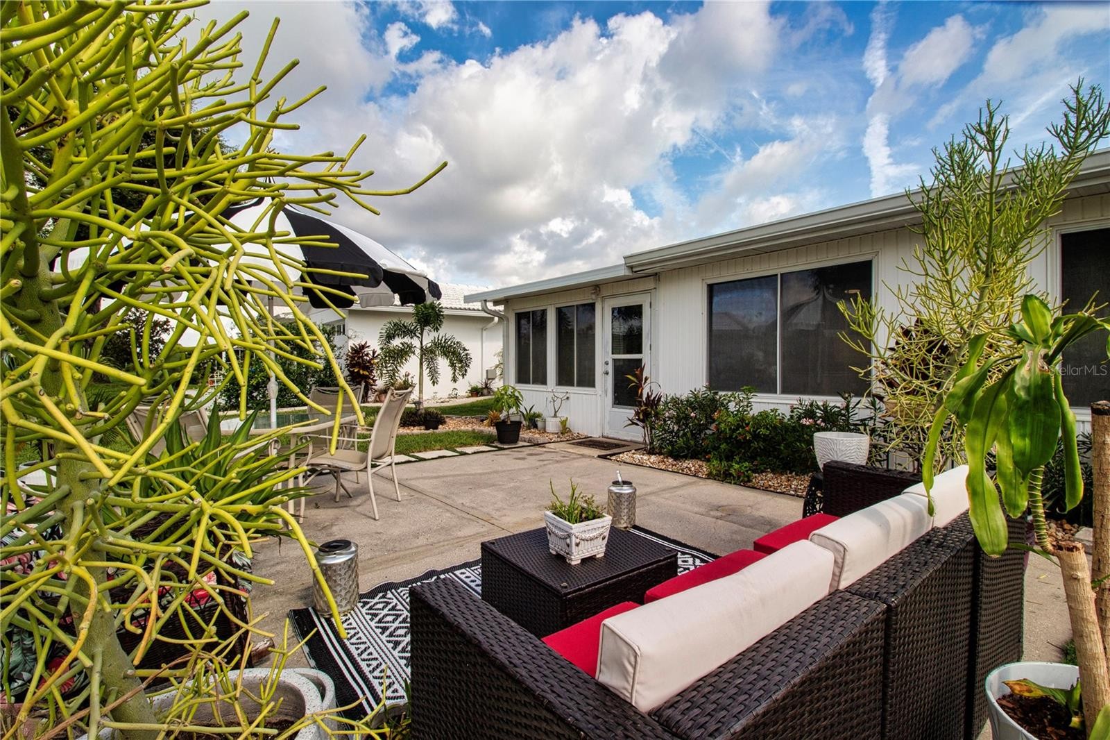 Welcome to River Isles with lowest $60 monthly HOA’s around. Just located along the Braden River. Explore this tucked away, 55 + golf course community. This charming two-bedroom, one-bath home, thoughtfully updated with so much TLC, making it a must-see! Step inside and be wowed by the stunning Mid-Century Modern decor that beautifully complements the home's unique charm. The kitchen is a showstopper, custom made arch over the sink, elegant hand-picked glass and stone tiling with herring bone pattern that reaches the ceiling, and solid surface Crowndale Luxury Quartz countertops. Every detail has been carefully chosen, featuring newer smudge resistant 4 piece appliance suite, the soft close cabinet drawers, to the chic gold faucet fixtures to the ceiling-high cabinetry, with stylish hardware—no expense was spared! The home flows effortlessly, leading you from the living space to the inviting Florida room. French doors opening to the bonus room, plenty of space to entertain family and friends or simply relax with a good book. The powder room features a handpicked antique Italian sink and commode, adding a touch of elegance that perfectly suits the space. Plus, you can rest easy knowing the electrical lighting, recessed fixtures, remote ceiling fans, switch plates, receptacles, and rocker switches, textured ceilings, freshly painted interior walls, updated baseboards throughout the home. You'll love the luxury vinyl plank flooring that runs seamlessly throughout, providing durability and style. The landscaping, which the seller curated, is simply gorgeous and ready to impress. Enjoy your oversized patio—a perfect spot for outdoor relaxation or hosting larger gatherings. Everything is already taken care of for you in this beautifully designed home. River Isles offers amenities such as clubhouse, shuffle board, library, billiards, fitness room, heated pool, and much more. River Isles Golf Club is a favorite spot for the golf enthusiasts - with a 9-hole executive golf course and an option to join a yearly membership with unlimited golf, making it an accessible and affordable option. In addition to the wonderful amenities offered in this community, River Isles is conveniently located with easy access to interstate 75, shopping centers, entertainment hubs, restaurants, airports, bus line, and medical facilities. If you are seeking a community that offers both a peaceful environment yet active community with abundant amenities and activities, River Isles is the perfect place for you to call home. Schedule a showing today! Refer to the “Look what we’ve Done” is a list of all the improvements will be attached in MLS and displayed at the property.
