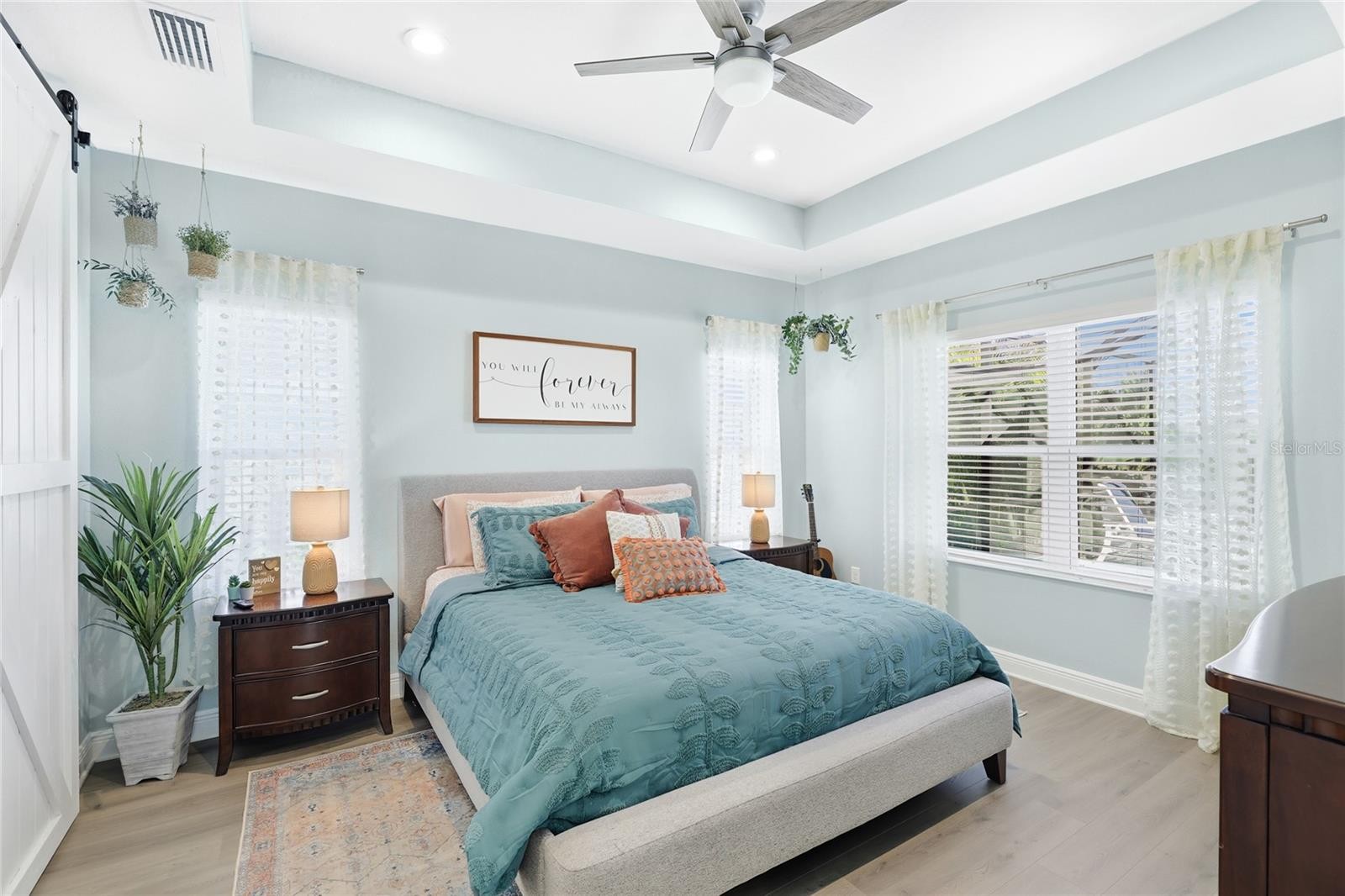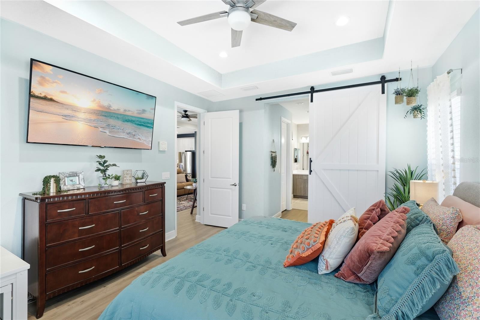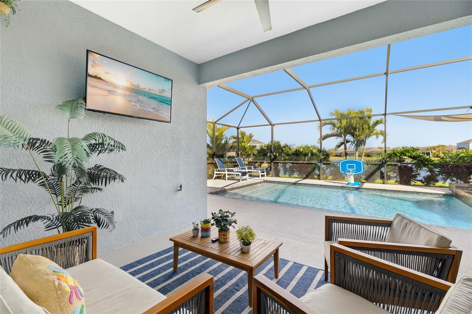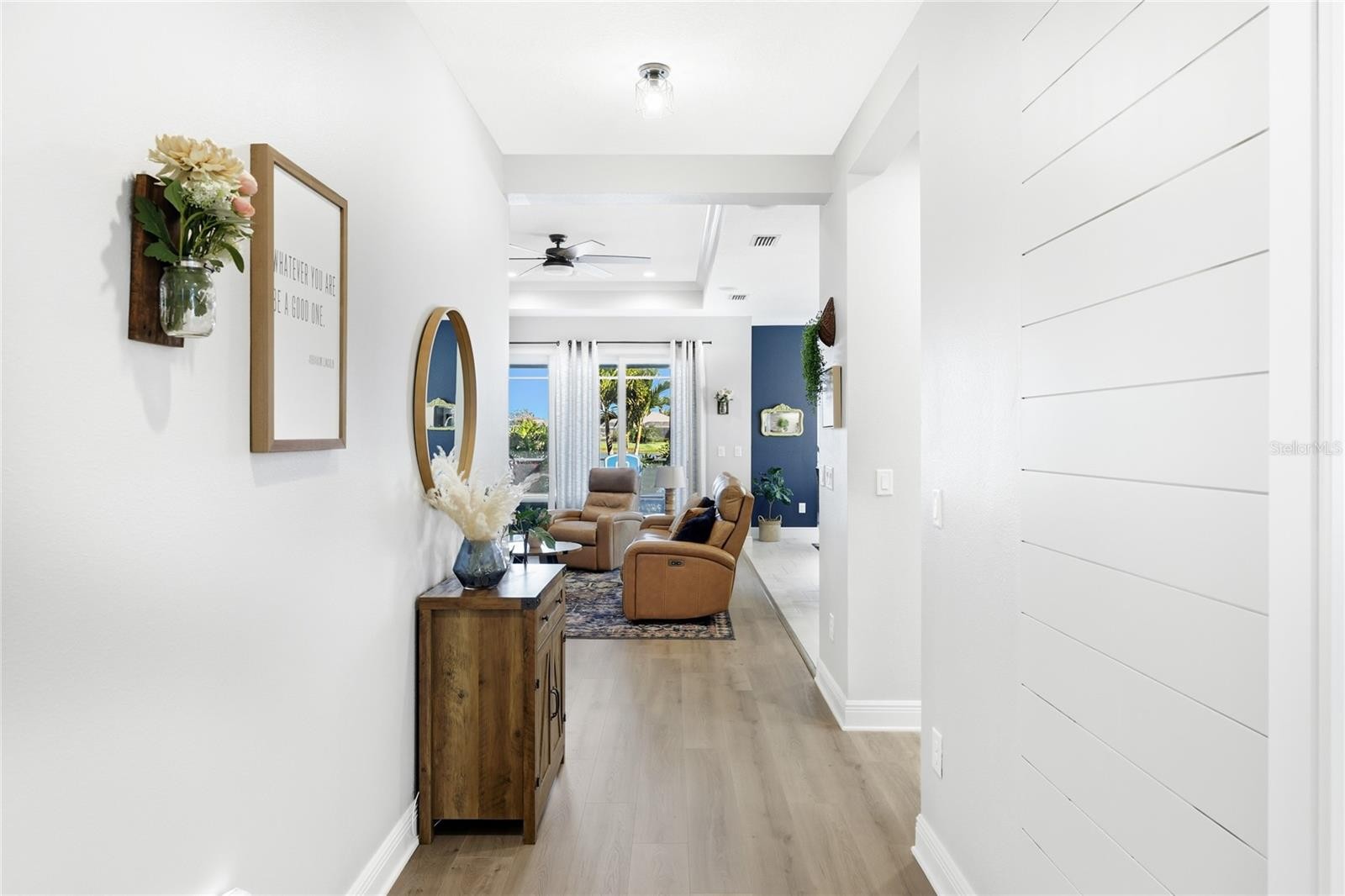 Located in the gated Neal Community of Silverleaf, this thoughtfully designed three bedroom, three and a half bathroom home offers comfort, style, and everyday functionality, all set on one of the largest lots in the neighborhood with peaceful pond views. Wide plank flooring, tray ceilings, and abundant natural light create a clean, airy atmosphere that flows naturally from room to room. The main living area connects seamlessly to the kitchen and dining space, making it ideal for both daily living and entertaining. The kitchen serves as a true centerpiece with stainless steel appliances, quartz countertops, a large center island with seating, modern cabinetry, and a walk in pantry. Sliding glass doors extend the living space outdoors, drawing your attention to the screened lanai and backyard retreat. A private front office enclosed with oversized glass doors offers flexibility for working from home, studying, or creative use. The split bedroom layout is ideal for privacy, with each guest bedroom offering its own bathroom, including one ensuite bath that is perfect for overnight guests or multi generational living. The primary suite provides a calm and comfortable retreat with tray ceilings and a well appointed en suite bath. Outdoor living is a standout feature of this home. The expansive screened lanai showcases a heated saltwater pool and spa, covered seating area, and tranquil pond views. The convenient half bath serves as a pool bath, adding comfort and functionality when entertaining or enjoying time outdoors. Additional features include hurricane impact windows and doors, a three car garage with extended driveway, electric vehicle charging outlet, whole house surge protection, gutters around the entire home, and an upgraded sprinkler system covering all lawn and planter areas. The home has been meticulously maintained with regular servicing of major systems. Silverleaf enhances everyday living with resort style amenities including a community pool, spa, fitness center, clubhouse, playground, dog parks, and scenic walking paths. Sidewalks, tree lined streets, and preserved natural surroundings add to the charm, all within a convenient Parrish location close to shopping, dining, and major roadways. **THIS PROPERTY QUALIFIES FOR A 1% LENDER INCENTIVE IF USING PREFERRED LENDER. INQUIRE FOR MORE DETAILS.**