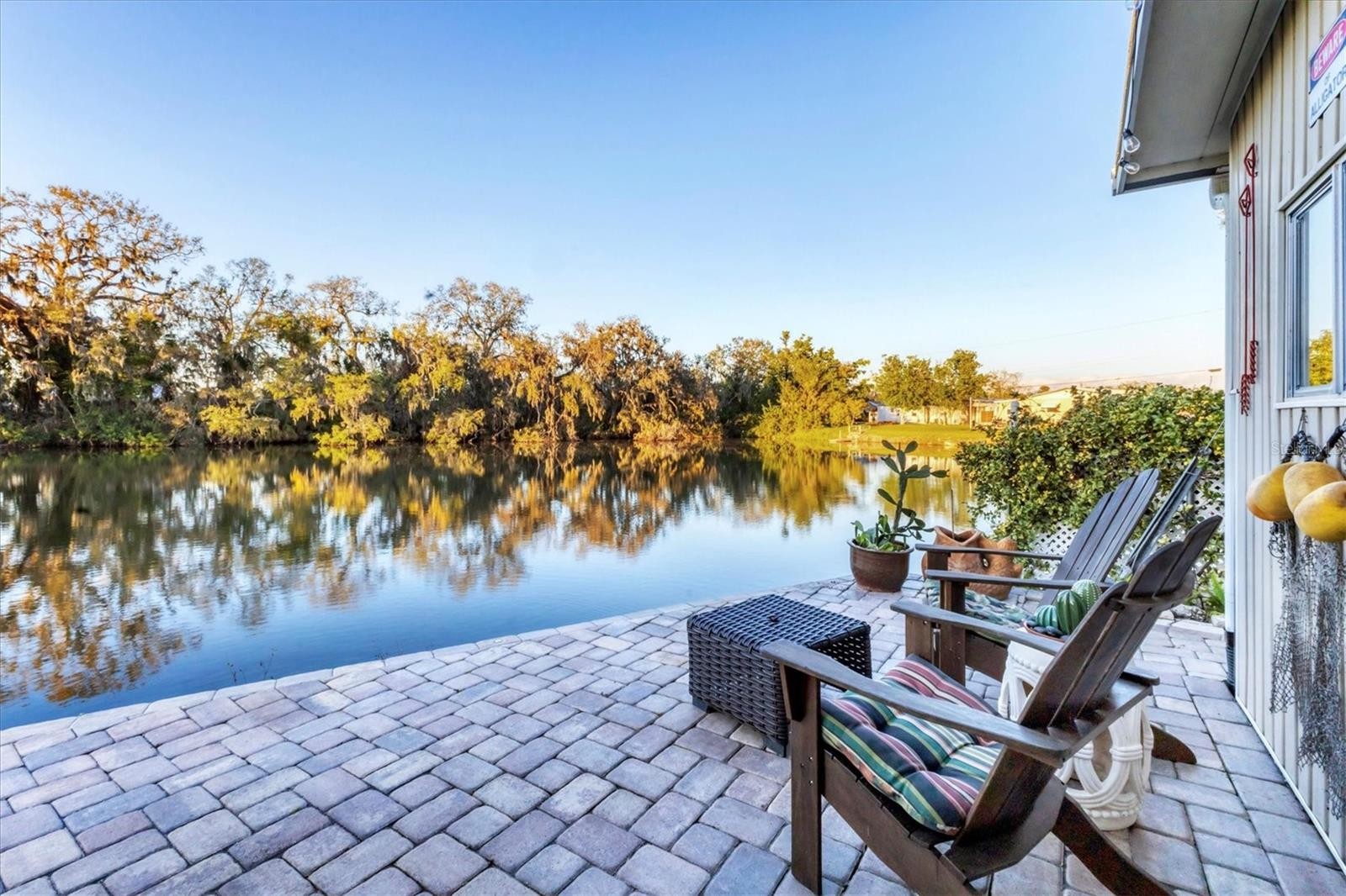 Experience lakefront living in Tidevue Estates, a land-owned, 55+ active community offering the perfect blend of comfort and Florida nature! This beautiful home is directly on Gamble Lake, where you can relax and unwind from your open paver patio surrounded by native Florida plants and peaceful water views. Enjoy peace of mind with a new roof in 2025 and A/C replaced in 2024. The updated kitchen is designed to impress with quartz countertops, rich brown cabinetry, glass tile backsplash, and a center island, all flowing seamlessly into the open living and dining areas—ideal for entertaining. The inviting Florida room features a wall of windows overlooking Gamble Lake, charming shiplap walls, and laminate flooring that runs throughout the home. The serene primary bedroom offers a private en-suite bath with ceramic tile flooring and a glass-door walk-in shower. The second bedroom also includes its own en-suite bathroom with a tub and shower—perfect for guests. Additional highlights include a screened lanai, spacious shed, and laundry room. Experience waterfront living at its finest in this vibrant and friendly community! Low HOA of only $600 annually. Pets are not permitted. Plenty of activities to keep you busy in this community. Take a water aerobics class in the solar-heated community pool or work on your tan. The community library has free WI-FI connection. Updated fitness center. Meet friends and make new ones for a game of indoor pickleball, bocce ball, or shuffleboard. Join the Golf League. Take a bike or golf cart ride to Veteran's Park to watch the wildlife and sunset. Ellenton Premium Outlet Mall, restaurants, and medical facilities are just minutes away. Easy access to I-75. Come visit this property today!