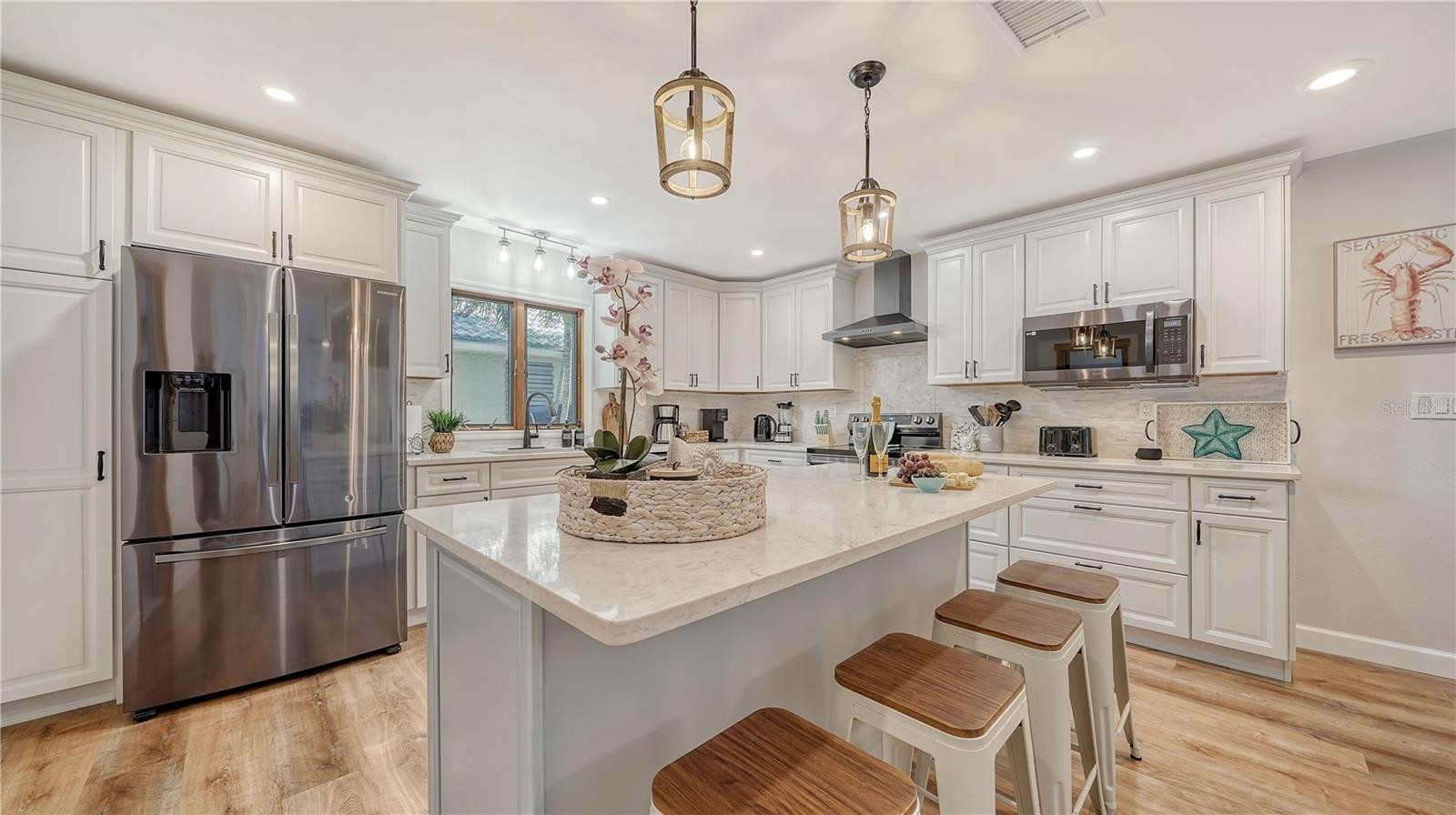 *** Waterfront *** Fall in love with the Gulf Coast Lifestyle. This charming and beautifully renovated 3 Bedroom, 2.5 Bathroom canal front home, located in the boating community of San Remo Shores offers a perfect blend of indoor and outdoor coastal living. Enjoy the convenience of docking your boat right in your backyard with direct access to the inter coastal waterway and the crystal-clear waters of the Gulf (No Bridges). It is just a short drive away from the wonderful white sandy beaches of Anna Maria Island, close to the IMG Academy, shopping and dining and the Old Florida charm of Historic Cortez Village. This beautiful dream home is currently operating as a successful short term rental, generating strong income and earning outstanding guest reviews. H I G H L I G H T S: every bedroom has a sliding door and water views * vaulted ceilings create an open and airy feeling * double sided wood burning fireplace * spacious and open Living-Dining-Kitchen area * modern kitchen with quartz countertops, stainless steel appliances and walk-in pantry * split bedroom plan for exceptional privacy * primary suite with walk-In closet and a spa inspired ensuite bathroom with spacious double shower and free-standing tub pool bathroom * outdoor shower * heated pool with LED light * oversized garage * circular driveway with abundant parking -- N E W -- Roof (2024), Seawall (2022), Dock (2022), Boat Lift (2022), Kitchen and Appliances (2022), Pool resurfaced (2022), Pool Heater (2023), Impact proof 4-panel Sliding Door (2025) NO FLOODING DURING THE LAST HURRICANES