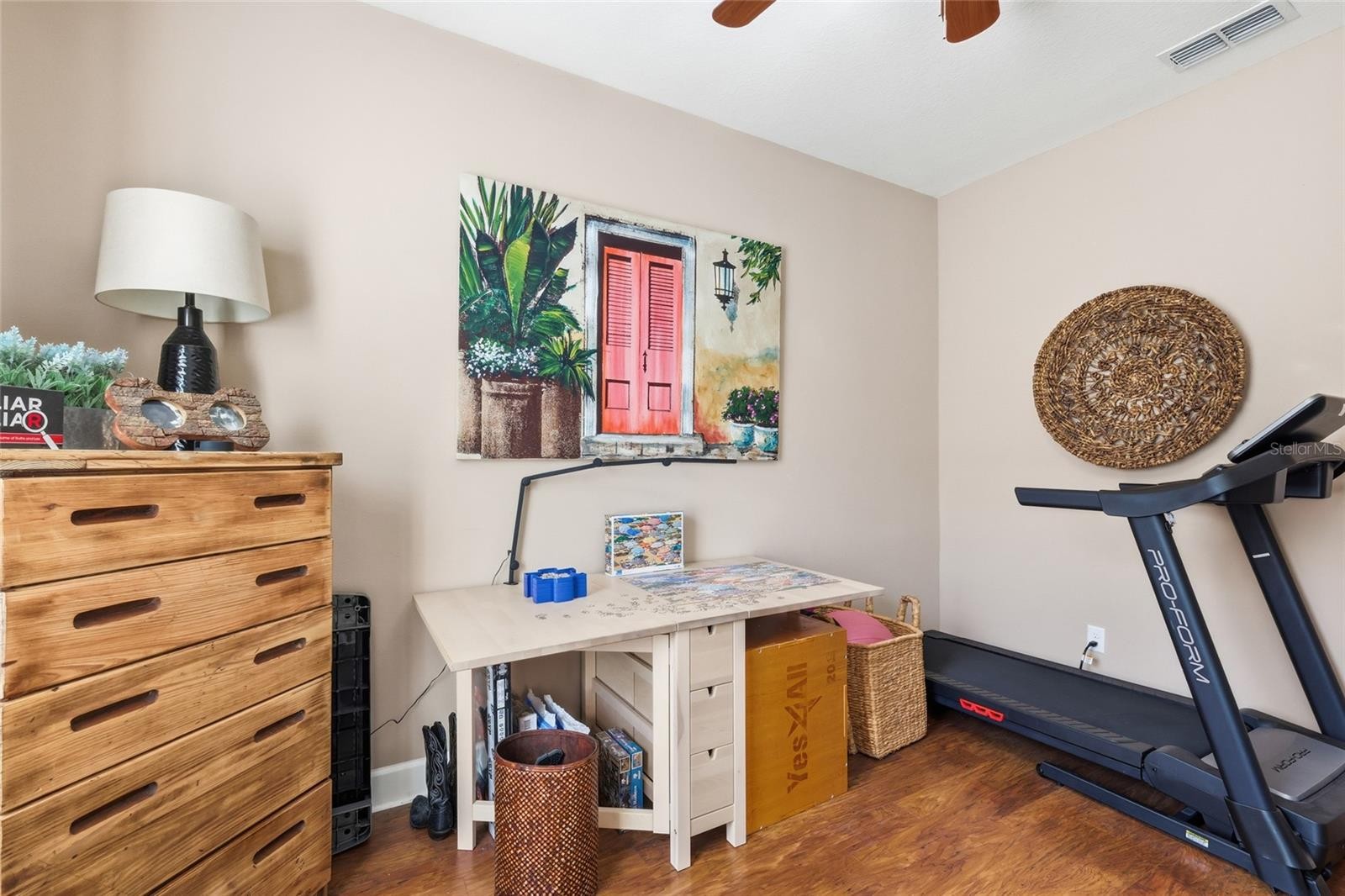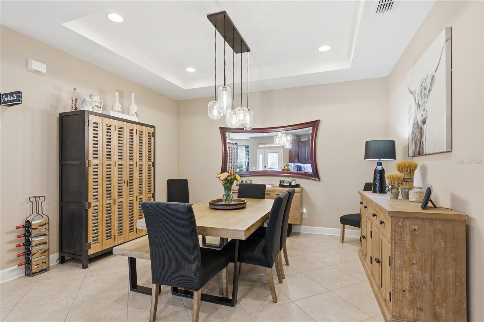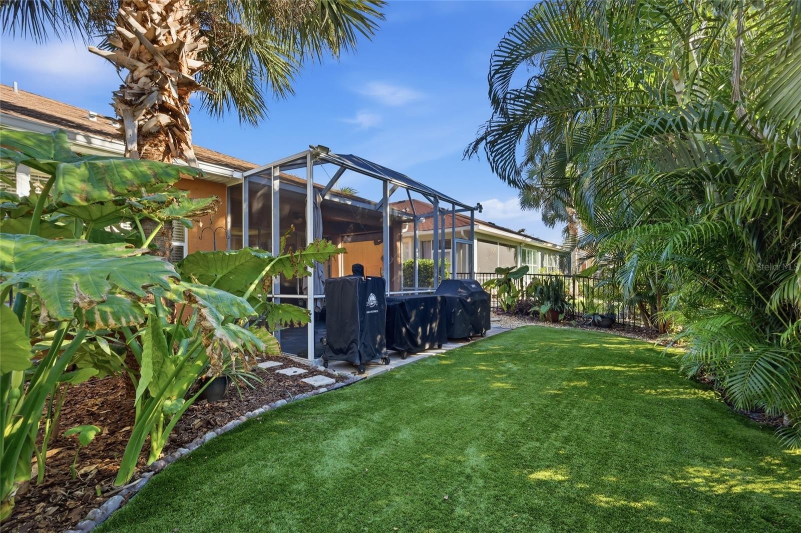 Welcome to Palma Sola Trace, an established community just three miles from the gorgeous beaches of Anna Maria Island. Palma Sola Trace consists of a mixture of condominiums, villas and single-family homes. The home you are looking at is 1852 feet of updated well-planned space. You enter from the covered front porch into a large open living space. This is where the sellers began their upgrades. The former elevated bar counter to your right separating the kitchen from the living space was removed. The surface was lowered to counter height and replaced with a massive granite peninsular counter. The counter has a new rectangular stainless-steel sink, garbage disposal and contemporary black fixtures. The kitchen cabinet handles were also replaced in black to match. This has become the perfect gathering place. The living space is wired for a wall mounted flat screen TV. To the left are 8-foot by 12-foot patio doors looking out over the extended lanai and lush astroturf covered rear yard. Outside the lanai is a patio for any of your BBQ toys. Inside the home is an open dining area, big enough for the largest table. If you like to cook, you will love the kitchen. It has a top-of-the-line GE profile refrigerator, GE profile dishwasher, a GE microwave, and GE propane stove. Speaking of propane, the home has a propane instant hot water heater mounted on the side of the home. The propane tank was approved by the HOA due to its energy efficiency. You will never run out of hot water or need to juggle your pans off the hot electric burner. The home has three bedrooms plus a den split floorplan. The primary bedroom has a large private bath, with dual sinks and a large walk-in shower. The shower tile was replaced with large floor to ceiling wall tiles and geometric floor tiles. The 84-inch vanity counter matches the kitchen and has newer vessel sinks and faucets. The primary closet has additional shelving to accommodate all your clothing storage. The split floorplan locates the other two bedrooms, the office, the laundry room and a shared hallway bath at the front of the home. All the bedroom closets have additional added shelving and racks for clothes storage. The shared bath also was updated with matching granite countertops and a vessel sink. The laundry room has full length wall cabinets over the newer front load washer and electric dryer. The original plastic sink was replaced with a stainless-steel utility sink and a matching granite countertop. All the ceiling mounted flood lights and lightbulbs throughout the home were replaced with dimmable energy efficient LED bulbs. Mounted in the attic is a digital tv antenna for broadcast tv should cable go out. It is connected directly to the TV in the living room and the office. The home is pre-wired for a 50-amp back-up generator. The connection is located on the side of the home and connected to the home with a generator safety interlock. Mounted on the lanai are two LED spotlights that totally illuminate your fully fenced in rear yard. This is perfect for your fur babies at night. Did I forgot to mention that Palma Trace is a pet friendly community? They will love the yard. You have a large two car garage with plenty of storage as the walls and ceiling are covered with shelves to keep it organized. The roof is being replaced by the HOA in February 2026, lowering your insurance costs. You will love your new neighbors as much as the seller does. Hurry up and celebrate the holidays in your new home.