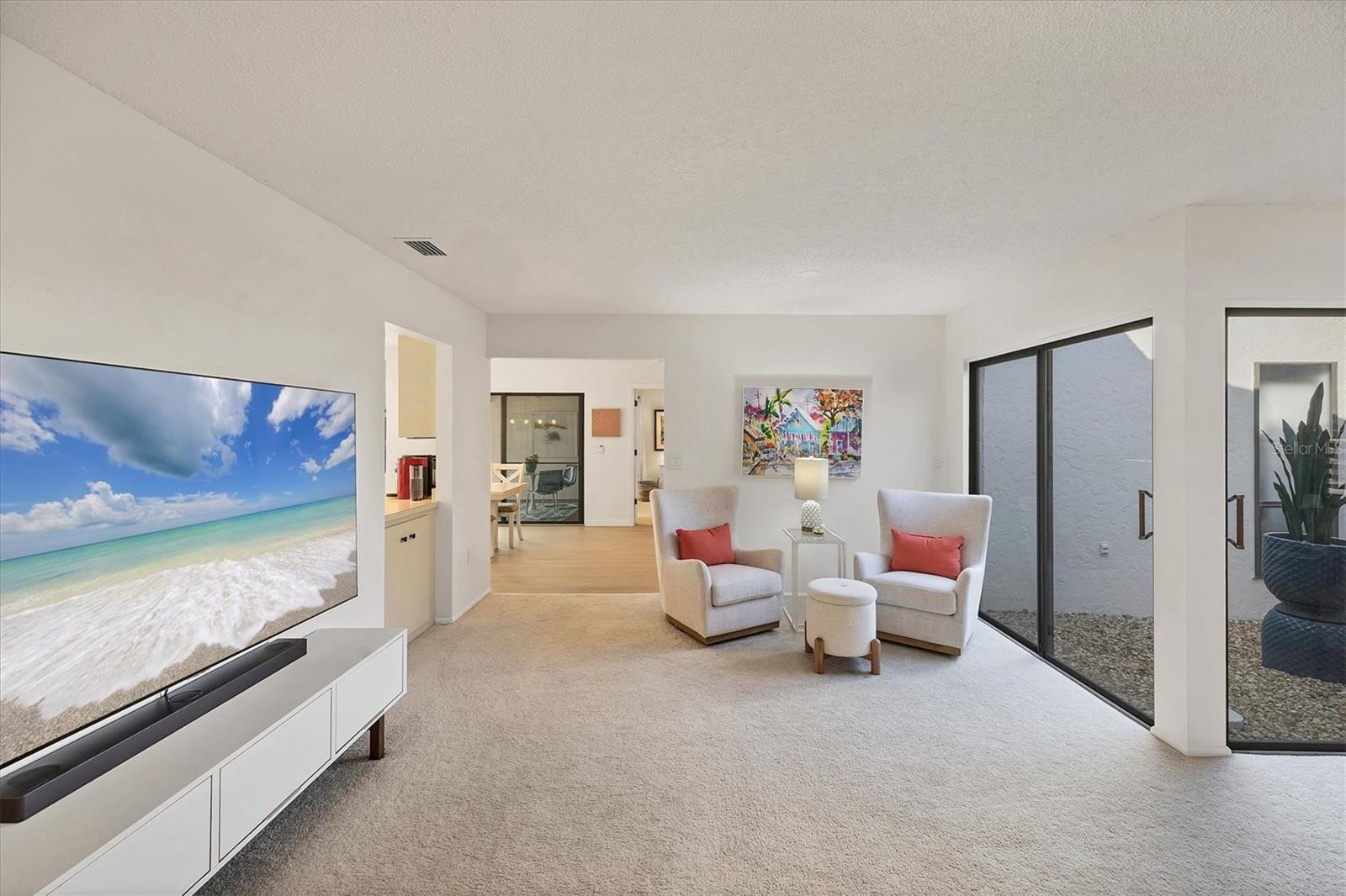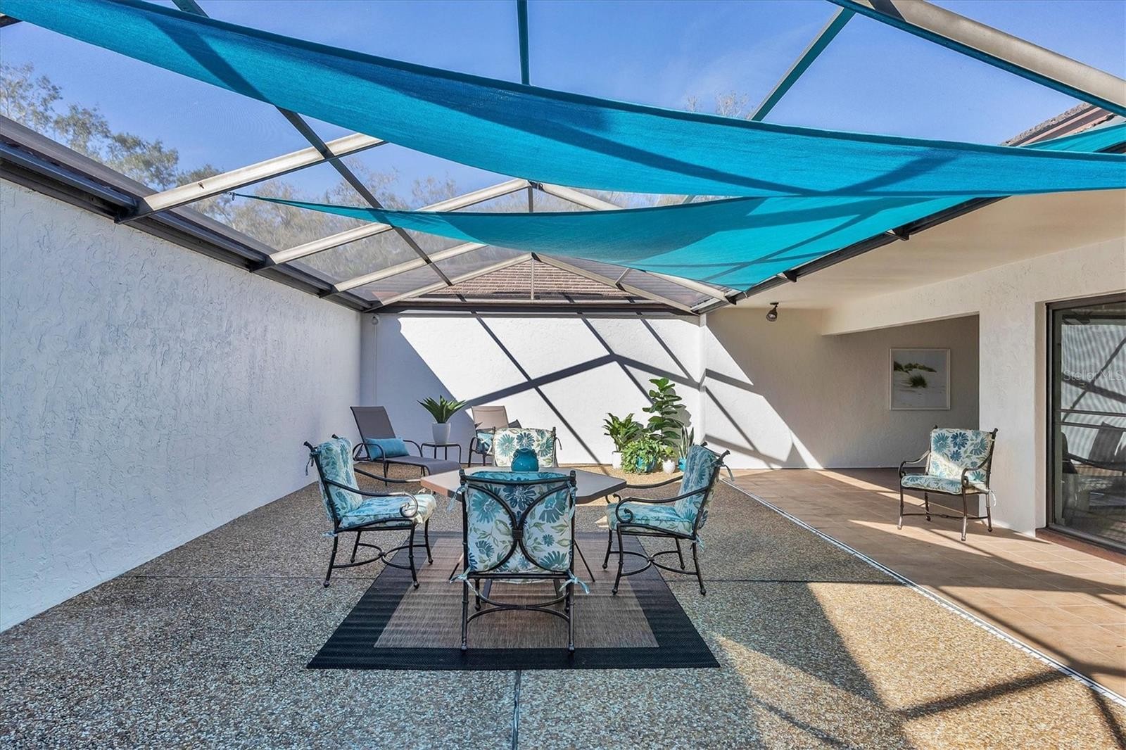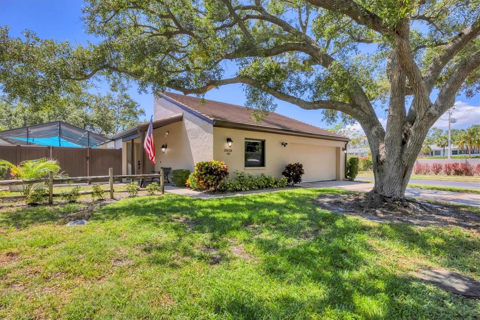 Welcome to Glen Oaks Manor...A boutique enclave of large Courtyard Villas carefully situated inside it's own park designed as a CANOPY TREE NEIGHBORHOOD complete with 2 paths, 3 gazebos, park benches, 2 lakes, a beautiful variety of Canopy trees and plants, and it is a dog friendly community. Mr. Clean lives here! This is an END unit villa affording more windows and letting the Florida sunshine in. Be one with nature in your large 33 x 24 screened courtyard with a Pebble Tech type patio surface to make your own Zen garden AND ADDED BONUS... on the other side of your villa is an atrium with water and electric great for an your orchid garden, fountain, kitty corral, aviary...it is a great space that lets the sun light shine in! This is a split plan with the bedrooms and bathrooms positioned at opposite ends of the home. UPDATES INCLUDE a NEW roof, NEW HVAC, NEW kitchen appliances, NEW washer & dryer, NEW hot water tank, NEW hardware in the kitchen and on all doors, New lighting throughout the villa, NEW ceiling fans, NEW LVF Flooring in the foyer, kitchen, hall and Family room, NEW switches and electric plugs throughout, Hot and cold fresh water lines replaced throughout, NEW gutters, NEW paint inside and in the courtyard, Beautiful NEW Lighted bathroom mirrors with various ambient light settings. Great news for getting insurance...this home has the "3RD NAIL" AND a NEW ROOF and is located in the MOST DESIRABLE "X" flood zone for no flooding! Whether you are looking for a full time home, seasonal home or investor purchase...this is it and it is PRICED RIGHT! Don't wait! Don't Hesitate! It's time to make that move so come on over to see this Gem of a home. Priced to steal at $405,000.