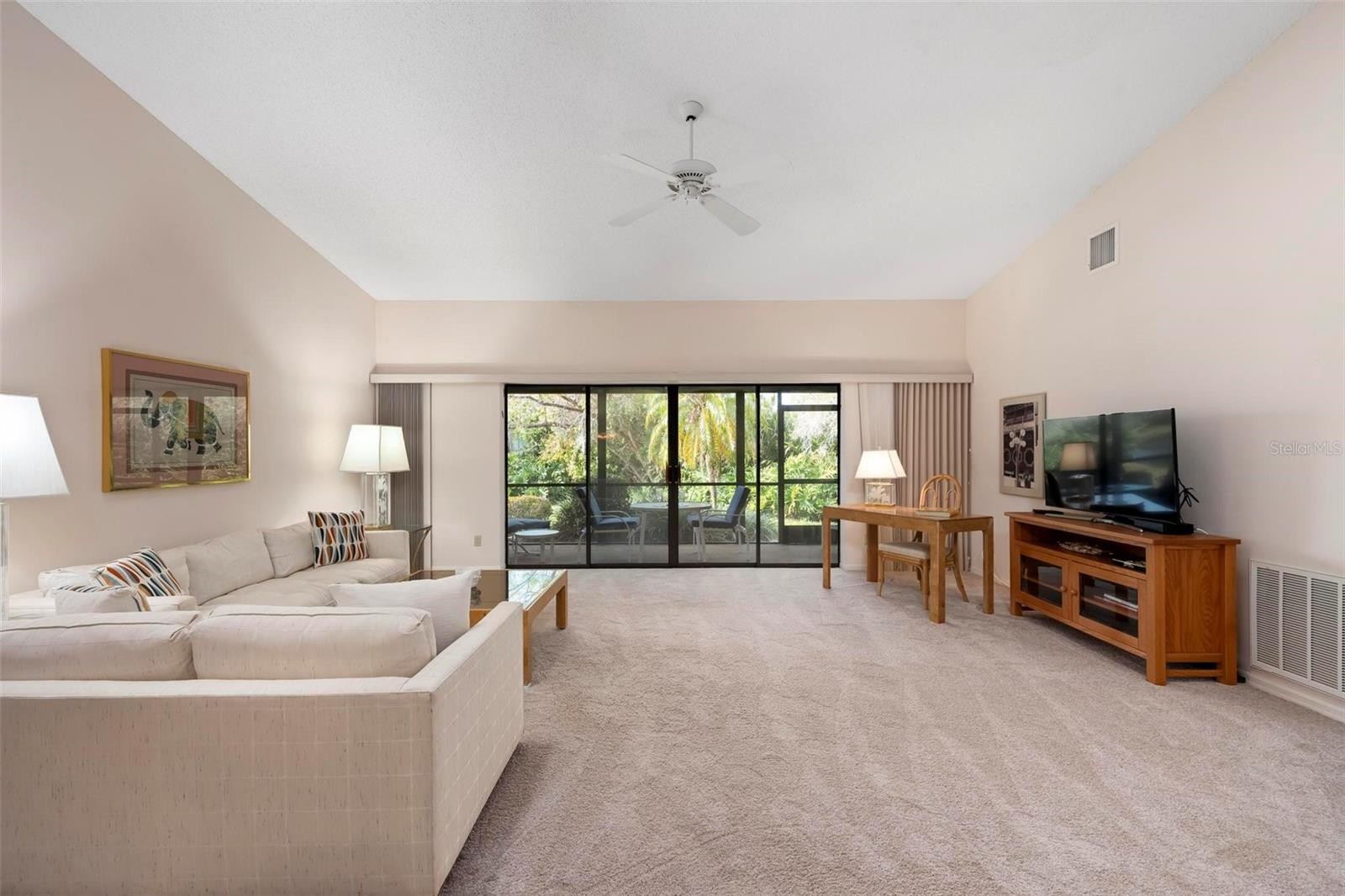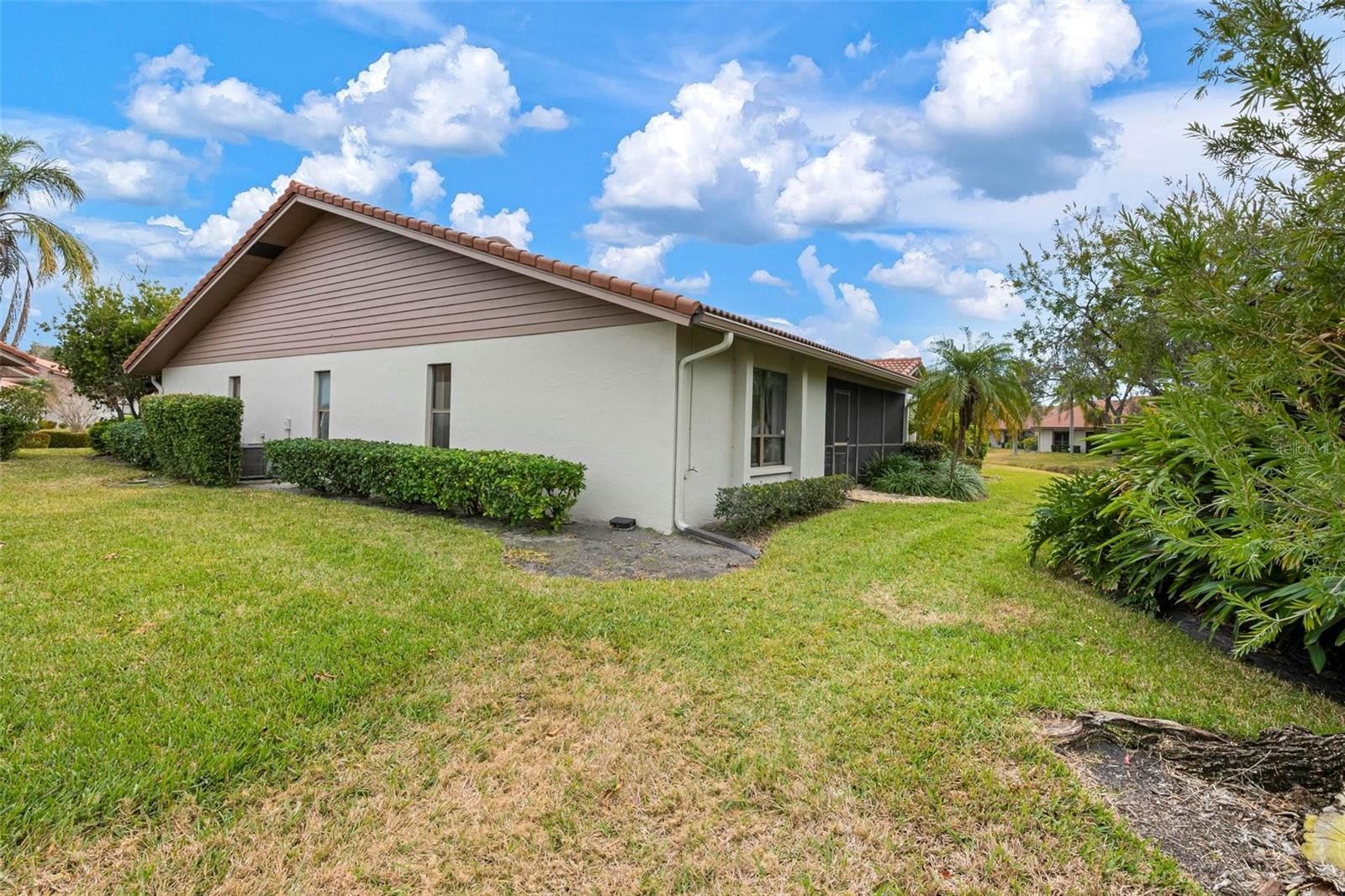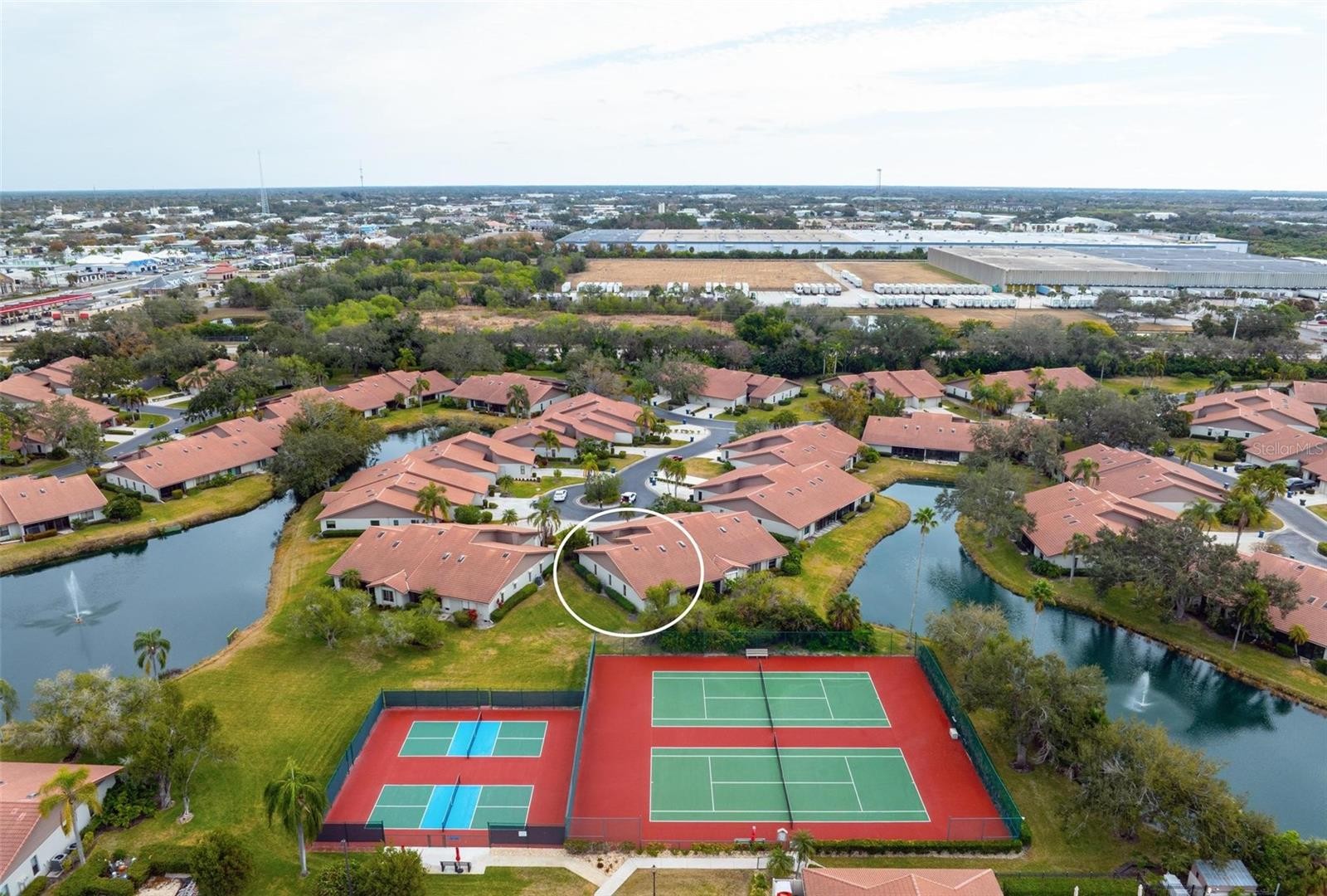 Welcome to this lovingly maintained 2-bedroom, 2-bath villa, proudly owned by the same family for 39 years. Vaulted ceilings and two skylights fill the open living and dining areas with natural light, creating a bright and airy space perfect for everyday living and entertaining. The spacious kitchen connects seamlessly to the main living area through a large pass-through, keeping conversations flowing while you cook. There's also room for a cozy breakfast table and chairs, ideal for casual dining. Both bedrooms are generously sized...each with large walk-in closets...creating a rare dual primary suite feel ideal for guests or shared living. The villa has been well cared for over the years, and offers a wonderful opportunity for a new owner to update and personalize to their taste. The screened lanai is a true highlight, with sliding glass doors that fully pocket to seamlessly blend indoor and outdoor living. Enjoy peaceful views of lush green space and the community tennis courts beautifully framed by mature hedges for privacy. A lovely lake view to the left adds an extra touch of serenity and can be easily enjoyed from the lanai. Other extras are a separate laundry room, new AC in 2020, 2023 hurricane rated garage door, and epoxy-coated garage floors. Lakeshore Village is a maintenance-free 55+ community designed for an active lifestyle with large clubhouse, pool, tennis and pickleball courts, and a full calendar of activities. It's centrally located, close to Siesta Key Beach, various shops, restaurants, and downtown Sarasota. Please note this is a pet-free community.