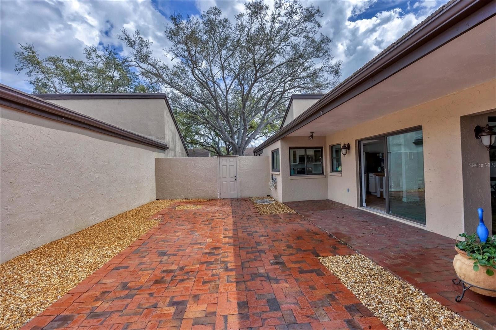 ARRIVE HOME to this stunning Urban Contemporary UPDATED villa-chalet where an impressive front courtyard greets you as you step inside this beautifully renovated END UNIT COURTYARD VILLA where the living room, dining room, kitchen and family room are all ACCENTED by the sun drenched atrium plus a full glass wall focused on your courtyard vista. The two bedrooms are a "split plan" and located at opposite ends of the home. Updating includes concrete tile roof installed in 2017, 2 year old HVAC, new 1 type of new flooring throughout the home (no carpet), new baseboards, doors, popcorn ceilings removed, 6 new ceiling fans, brick pavers in the courtyard, updated kitchen and bathrooms, hurricane wind screen protection & New wind rated garage door. Indoor laundry room with newer HWT & wash tub. Welcome the Glen Oaks Manor Lifestyle as this community is built inside it's own park with lakes, gazebos, walking trails, park benches, fishing and biking. This is a pet friendly community with convenient "dog stations" that are lakeside where bird-life abounds. with a well-maintained emphasis on canopy Live Oak trees & appealing landscaping. This home was HIGH AND DRY during 2024 hurricanes WITH AN "X" FLOOD ZONE! Convenient to downtown Sarasota (2.4 miles), beaches, restaurants & shopping. $425,000. This is an exceptional villa and priced right! Come take a look.