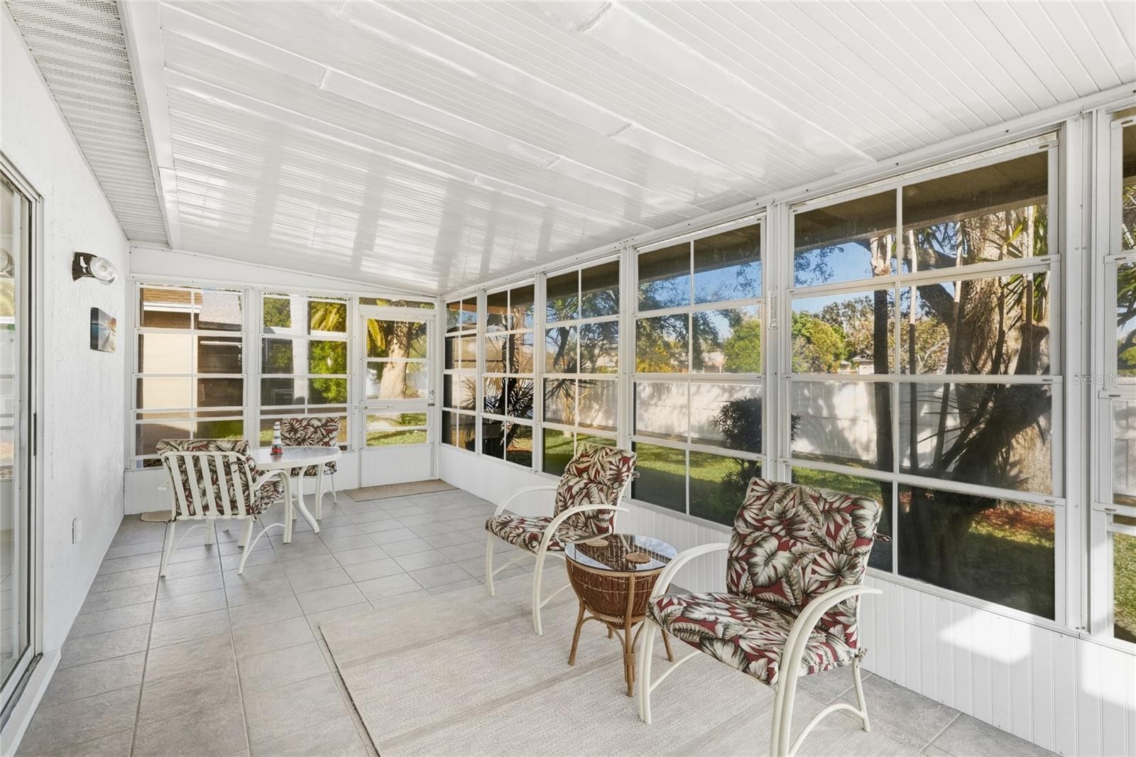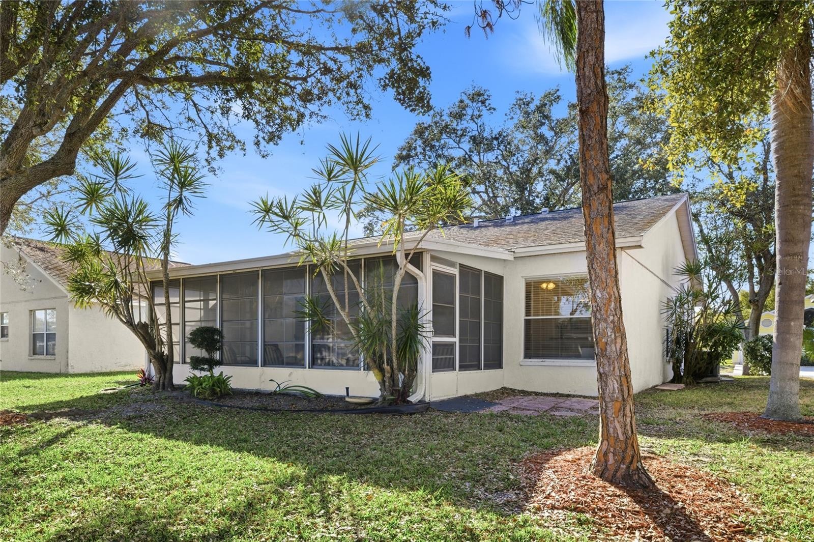 This home checks all the boxes! Constructed of concrete block with stucco and offering 1,425 square feet of well-designed, bright living space, this 3-bedroom, 2-bath and 2-car garage residence is going to capture your attention. Offered COMPLETELY TURNKEY and beautifully furnished, this home is truly move-in-ready, right down to the Samsung Frame At Home Gallery series TV, customizable for displaying classic artwork and your own photos. A formal living and dining room welcome you at the entry. Cathedral ceilings, a transom front door window and natural daylight elevate the interior making this outstanding floor plan look even larger. The Family Room, that is open to the kitchen, overlooks the patio and backyard fence providing a layout for comfortable living and entertaining. The kitchen features a 2024 Samsung Bespoke counter-depth, 4-door refrigerator equipped with an auto-fill beverage container, ice dispenser and the option for color-matched glass panels to complement your decor. Additional highlights include an indoor laundry room, security alarm system and ceiling fans in every bedroom and the family space. Exterior features include a 2011 roof, 2019 A/C, 2016 hot water heater, 2026 sprinkler system for full irrigation with a Rain Bird controller, tiled lanai with vinyl windows, a PVC 6-foot high privacy fence, rear gutters, motion sensor exterior lighting, storm door front entry, garage workbench complete with tools and accessories and a garage door with new 2026 torsion springs, wheels, opener motor, one portable and two vehicle remote door openers and a keypad entry. As for the lifestyle ... it's nearly impossible to beat the low $169 a month fees that include Internet, cable TV with two receivers, lawn cutting, a Community heated pool, tennis courts, pickle ball, shuffleboard, basketball court, playground area and Clubhouse. Located in a Non-Flood Zone. This lovely home is sure to capture your heart!