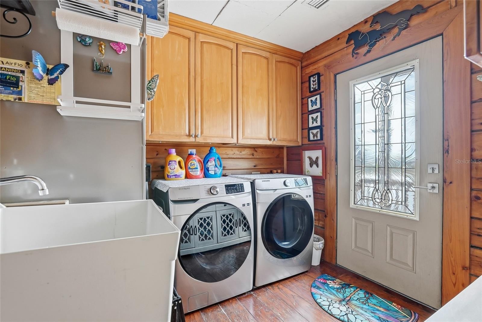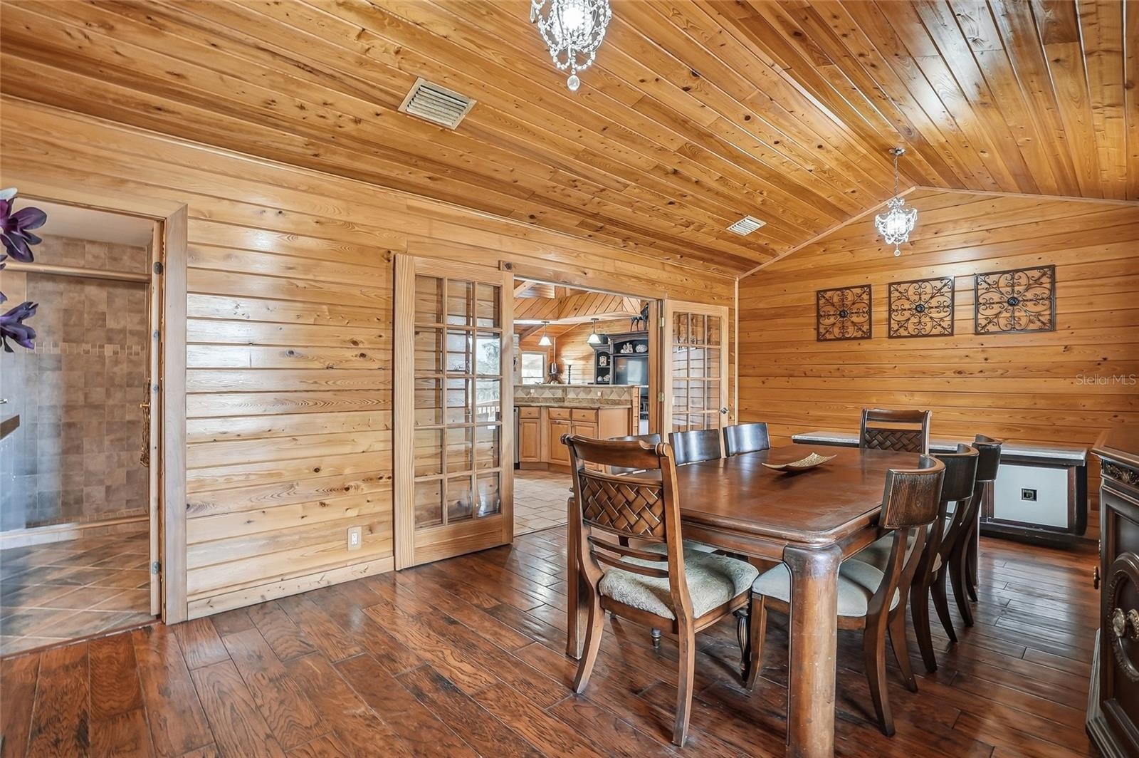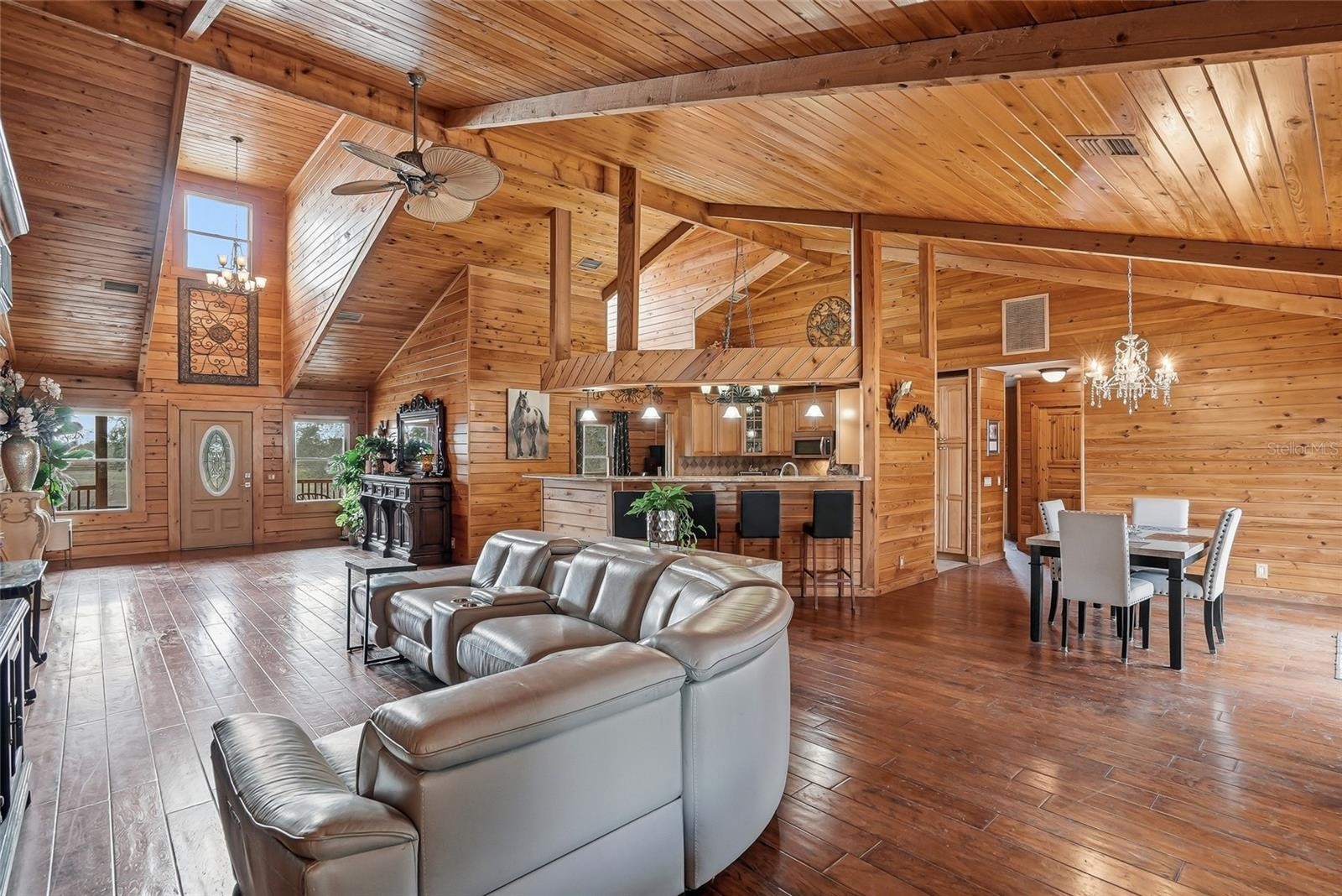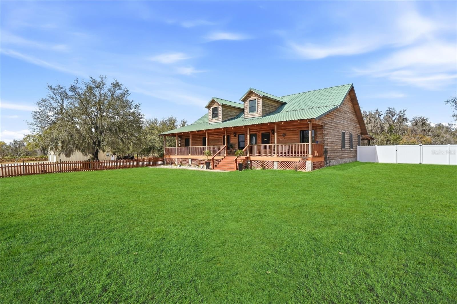 If you’ve been dreaming of peace, privacy, and room to breathe, you’ve found it. Nestled on almost 6 fully private acres with no front or rear neighbors, this extraordinary property offers the perfect blend of refined living and rural freedom. Enter through your automatic metal gate with remote access and discover a fully fenced estate designed for multi-generational living, income potential, or your own private retreat. The property includes a separate 3-bedroom, 1-bath living quarters, complete with its own laundry room and separate electric meter — ideal for extended family, guests, or rental income. Outdoors, the lifestyle amenities are unmatched. Enjoy a new saltwater pool featuring jets, a waterfall, and color-changing LED lighting, surrounded by an extended paver deck and a fully equipped outdoor kitchen with granite countertops and waterfall edge — perfect for entertaining under the Florida sky. A brand-new 6-foot privacy fence enhances the backyard oasis. Equestrian or hobby farm ready, the property offers a separate fenced pasture with water spigot, covered area prepped for four stalls, and an air-conditioned tack room. The charming chicken coop includes current egg-producing hens. A new well system with pump ensures reliable water access throughout. Car enthusiasts and hobbyists will appreciate the new 8-car double-bay garage and brand-new detached shed — perfect as a she-shed, man cave, or pool house — complete with energy-efficient windows and a metal roof. The main home is truly one-of-a-kind, featuring solid cedar log exterior construction and stunning Cyprus wood interior with cathedral-style ceilings throughout. Inside, you’ll find 3 bedrooms, 3 bathrooms, and a versatile flex space ideal for a formal dining room or den. Rich red oak hardwood floors flow throughout the home. The kitchen is fully updated with all-new SMART appliances, reverse osmosis system with easy-change filter, and elegant finishes. The spacious primary suite offers a spa-like retreat with a jetted Jacuzzi tub, new rain shower, granite countertops, double sinks, and a custom closet system with lifetime warranty. Two hidden built-in safes add an extra layer of security. Additional upgrades include: Impact windows with tilt-in cleaning New well system Reverse osmosis kitchen system Brand new detached structures and fencing throughout This property is more than a home — it’s a private sanctuary designed for those who want space, freedom, and elevated country living without compromise.