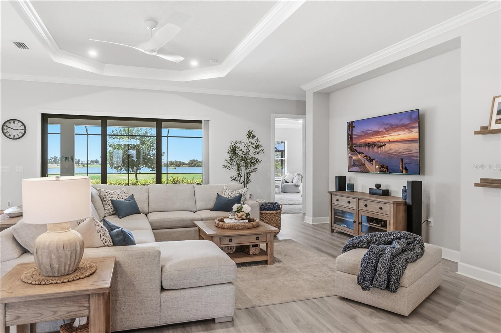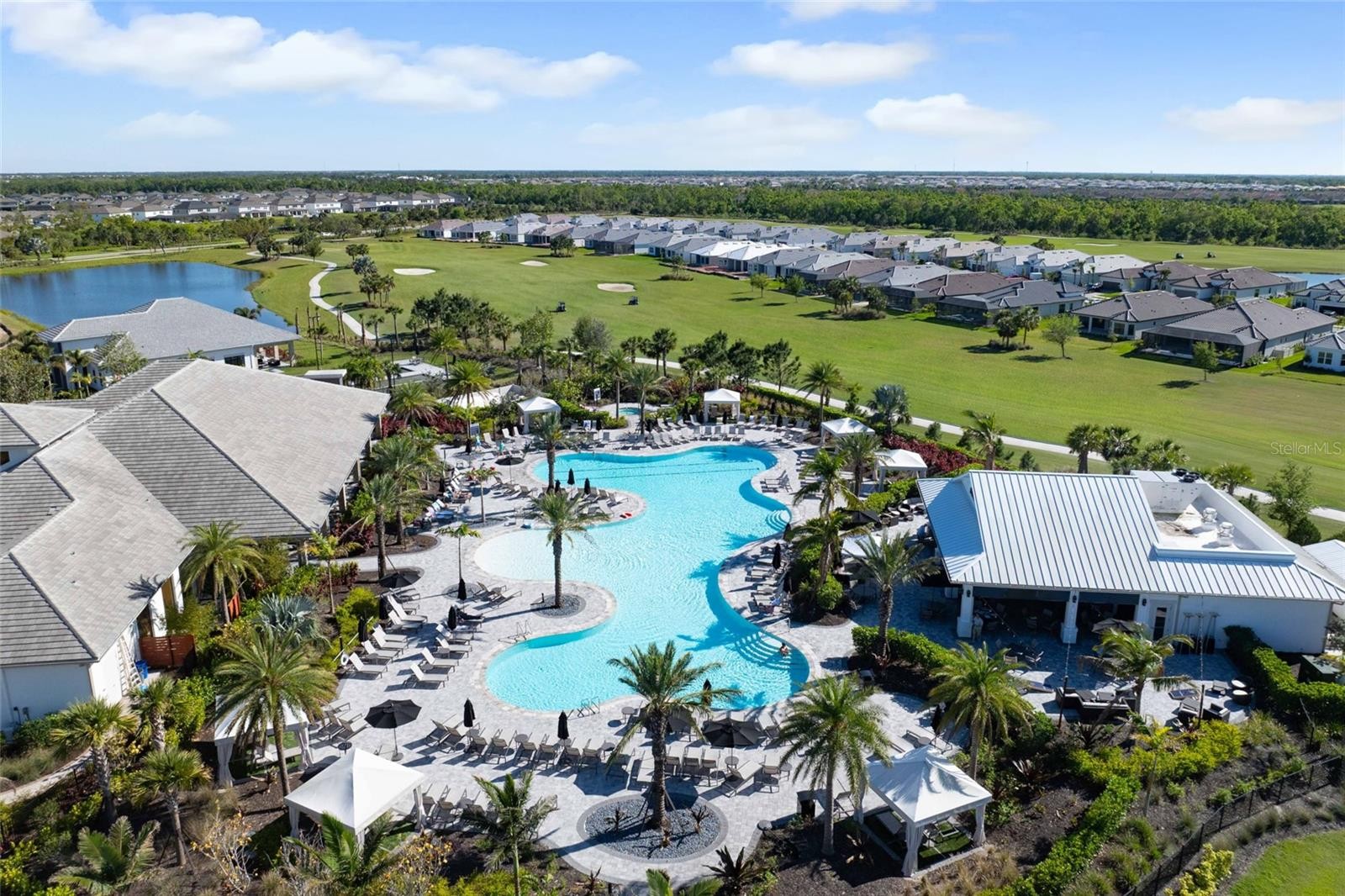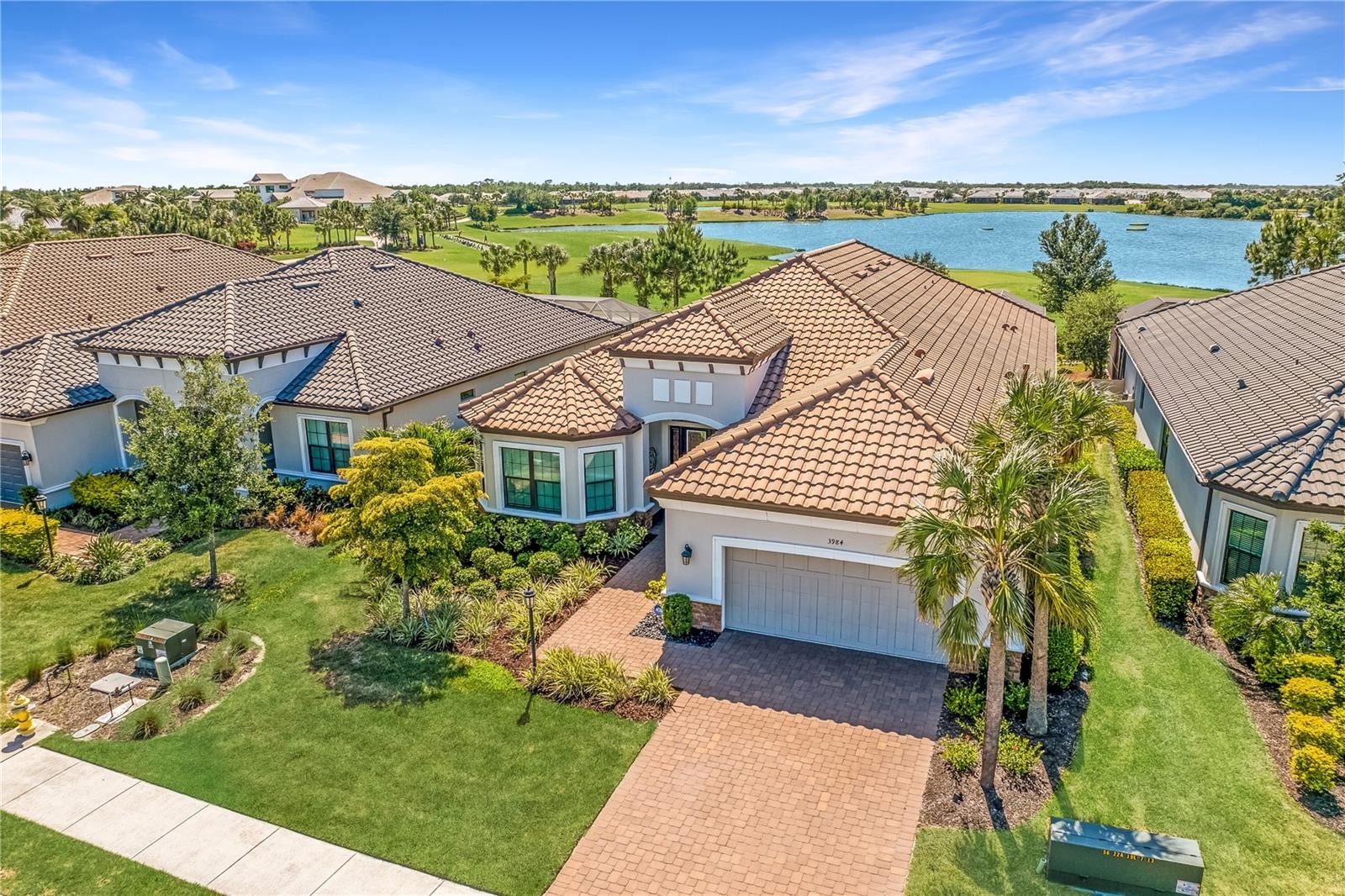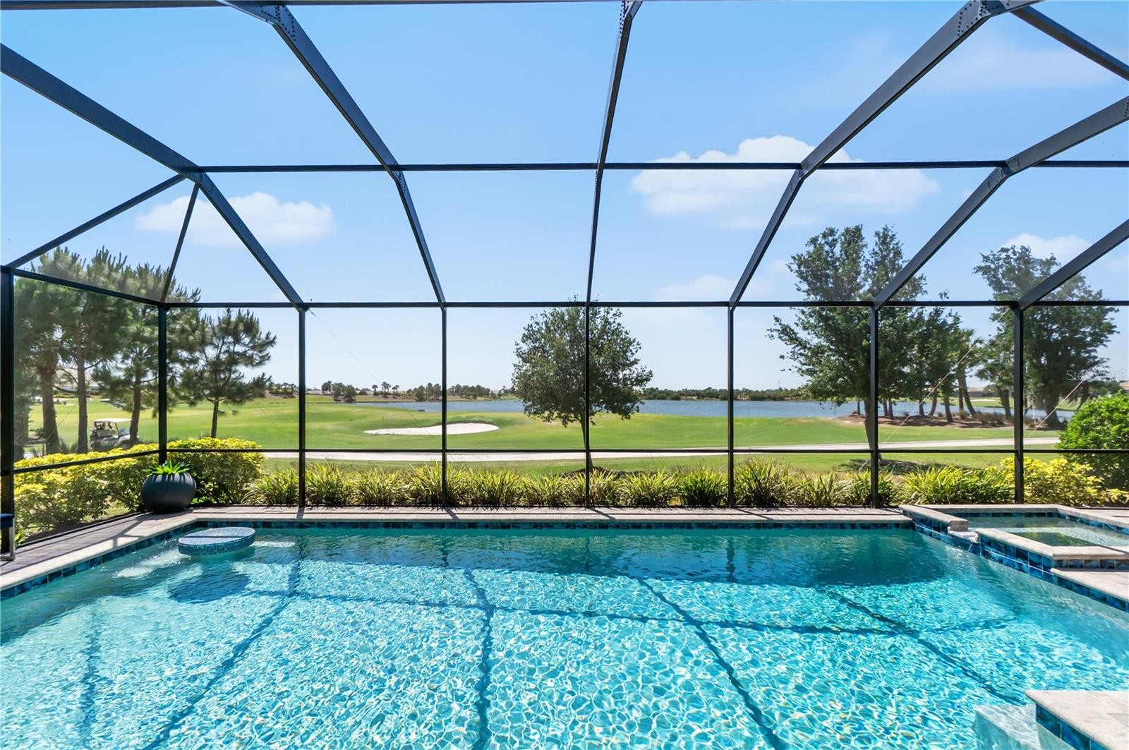 Experience elevated, resort-style living with full golf membership included in this exceptional Pallazio residence, located in the highly sought-after Esplanade at Azario within Lakewood Ranch. This GOLF-DEEDED home offers the rare opportunity to step directly into a luxury lifestyle centered around championship golf, world-class amenities, and effortless elegance. Spanning 3101 square feet, this thoughtfully designed Pallazio floorplan by Taylor Morrison captures stunning POOLSIDE SUNSETS across a distant water view. Featuring three (3) bedrooms, a private study, and three (3) full baths, and an extended tandem two-car garage. A grand double glass door entry welcomes you into a light-filled interior, where soaring tray ceilings, 8-foot doors, crown molding, and refined finishes create a sophisticated, inviting atmosphere. Designed with privacy and functionality in mind, two guest suites—each with access to their own bathroom—are positioned at the front of the home, while the double-door study offers flexible space ideal for a home office, media room, or additional guest accommodations. At the heart of the home, the open-concept great room seamlessly connects to the dining area and a beautifully appointed gourmet kitchen. Anchored by an oversized island, the kitchen showcases Cambria quartz countertops, soft-close cabinetry, a beverage center with glass-front accents, a spacious pantry, and a reverse osmosis water filtration system—perfect for everyday living and upscale entertaining. The owner’s suite is thoughtfully tucked away at the rear of the home to capture tranquil golf course water and sunset views through an elegant bay window. A tray ceiling adds architectural interest, while the expansive walk-in closet and spa-inspired bath—w/ dual vanities, a soaking tub, and separate shower—offer a true sense of luxury. Pocketing IMPACT sliders invite you outdoors, where the home transforms into a private resort. The custom-designed lanai is a showpiece, featuring a fully equipped outdoor kitchen with granite counters, an Artizan gas grill, Perlick kegerator and beverage refrigerator, and Scotsman ice maker. Overlooking a stunning heated saltwater pool and spa, complete with a swim-up bar, the outdoor space is designed for unforgettable entertaining and relaxed evenings alike. Enjoy a daily backdrop of rolling fairways, the lake, and breathtaking Southwest Florida sunsets. Living in Esplanade at Azario means embracing a lifestyle that rivals a five-star resort. This stunning home is a short walk from the Azario amenity campus where residents enjoy access to an 18-hole championship golf course, Driving Range, Pro Shop, and Bunker Bar, along with a full suite of luxury amenities including a resort-style pool with Bahama Bar, a state-of-the-art fitness center, spa services, culinary center with teaching kitchen and Barrelhouse restaurant, tennis & pickleball courts, dog park, walking trails, and a vibrant social calendar curated by a full-time activities director. Lakewood Ranch – the #1 multi-generational master planned community – This location offers convenient access to daily needs, as well as shopping & dining at Waterside Place, Lakewood Ranch Main Street, and The Mall at UTC. A short ride away is Sarasota-Bradenton International and Tampa International Airport, and the world-renowned Gulf Coast beaches. More than a home—it’s a statement of lifestyle, where luxury, leisure, and championship golf blend seamlessly.