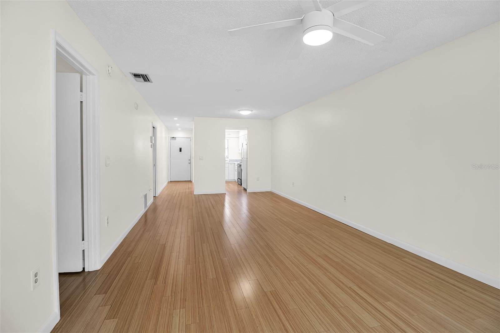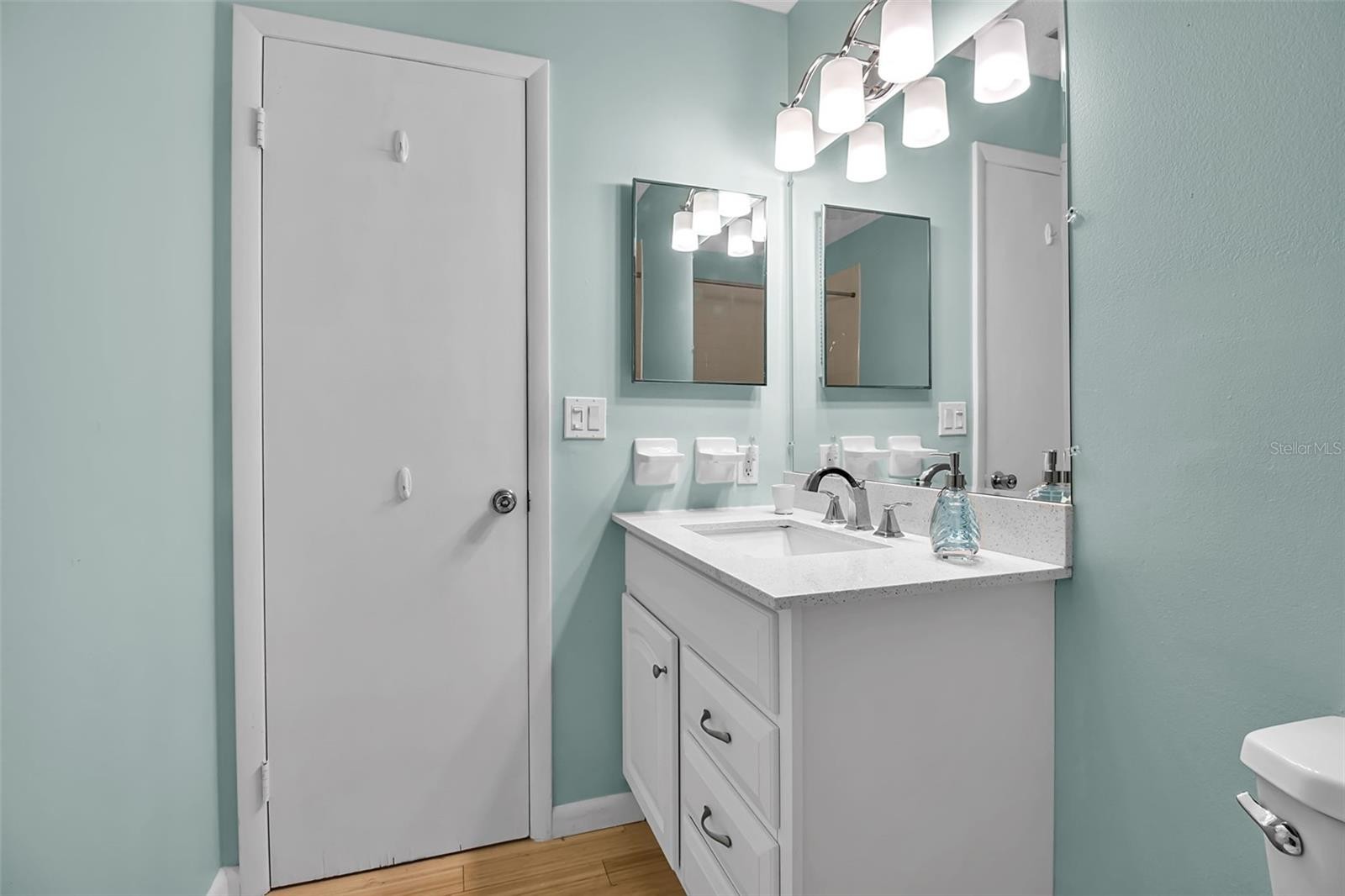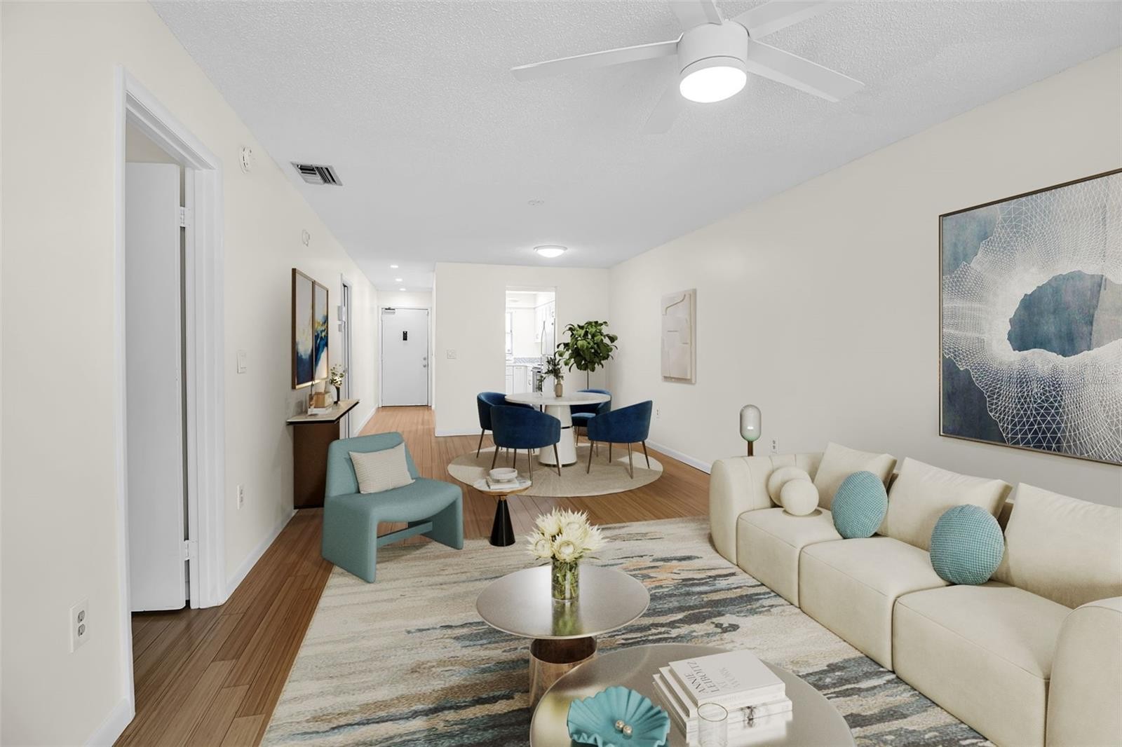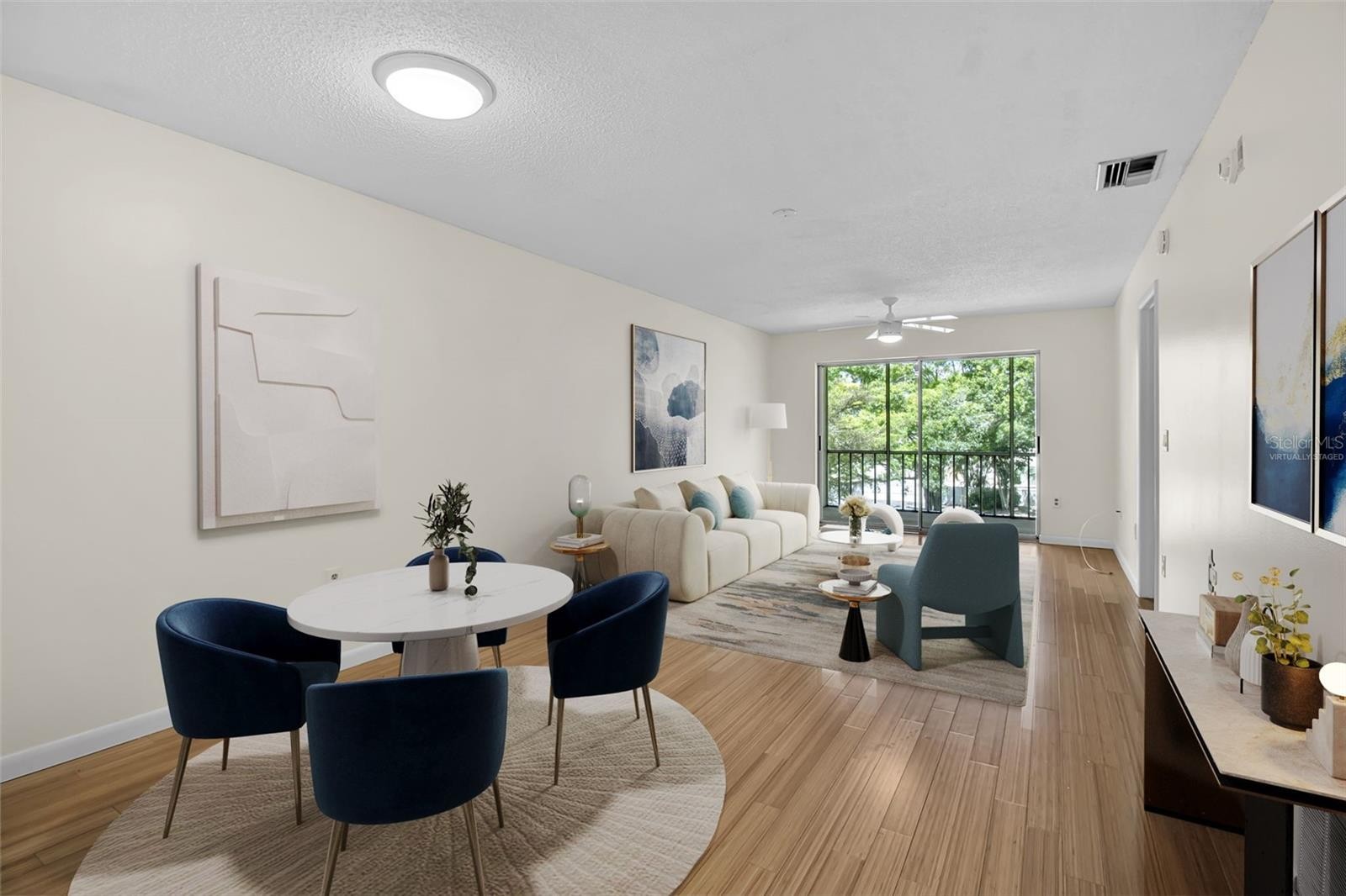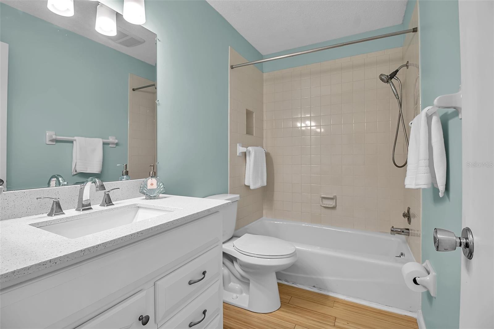 One or more photo(s) has been virtually staged. Welcome to 3987 Maceachen Blvd, Unit 133, an updated condo located in a desirable 55+ community in Sarasota. This 2-bedroom, 2-bathroom residence offers 978 square feet of living space with bamboo hardwood flooring throughout. The primary suite features a walk-in closet and an updated en-suite bathroom with a quartz vanity and tile walk-in shower. The guest bathroom has also been remodeled and includes a quartz vanity. The kitchen has been updated with quartz countertops, new cabinetry, a built-in sink with neck faucet, and canned recessed lighting. Enjoy the private terrace overlooking the community pool and park. The building includes elevator access for added convenience. The property is conveniently located near Publix, is approximately 6 miles to Siesta Key Beach, and 5 miles to downtown Sarasota, providing easy access to shopping, dining, and entertainment. This move-in-ready condo is suitable for full-time or seasonal living within a well-located Sarasota community.