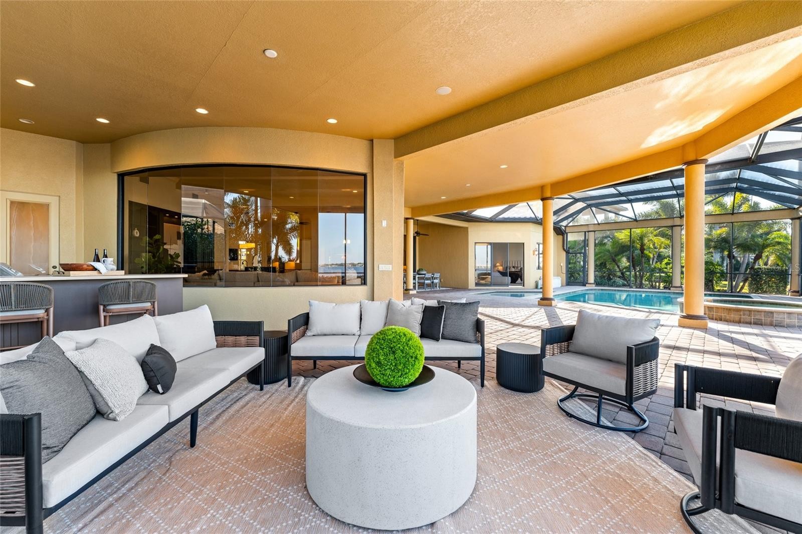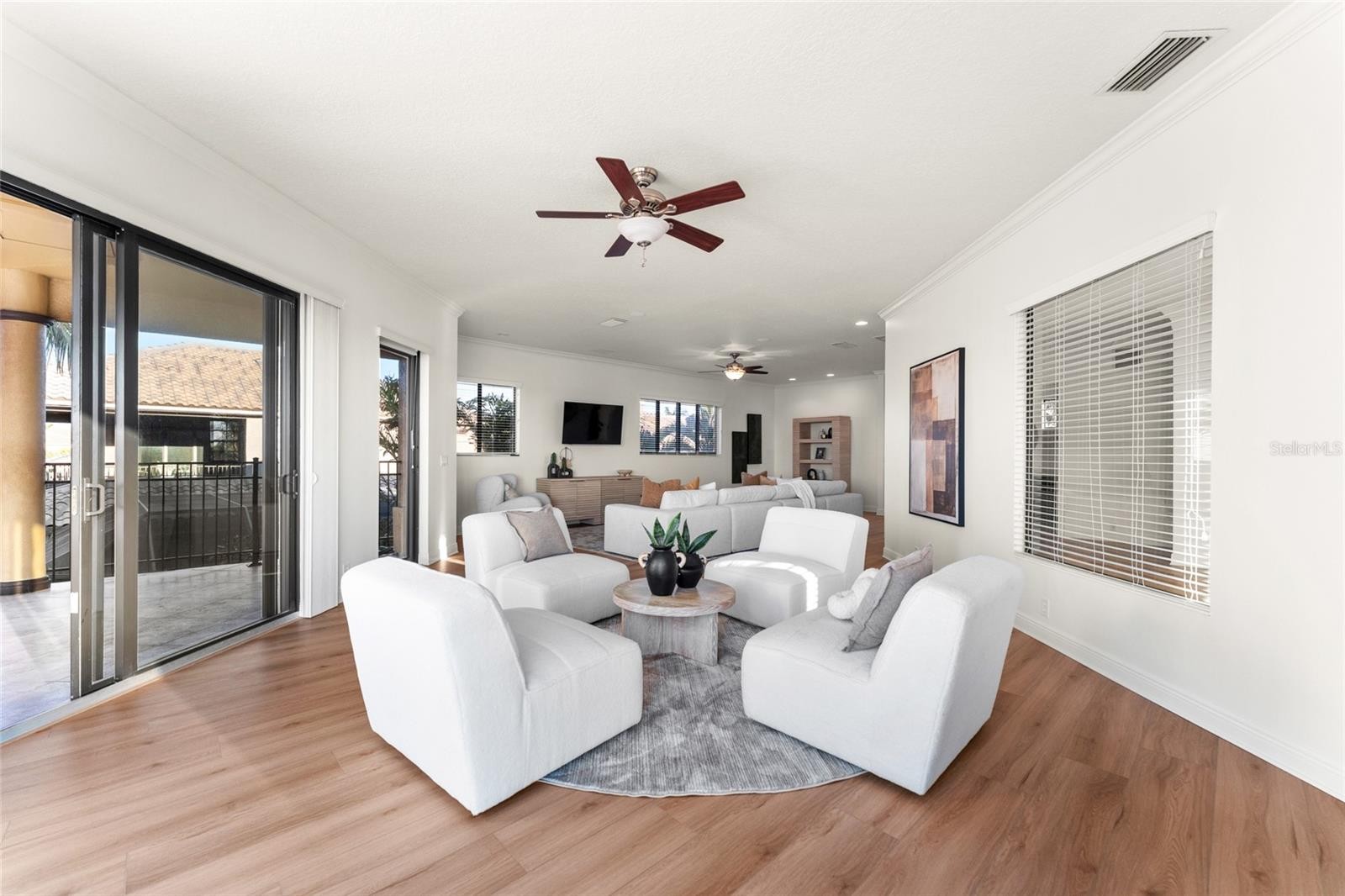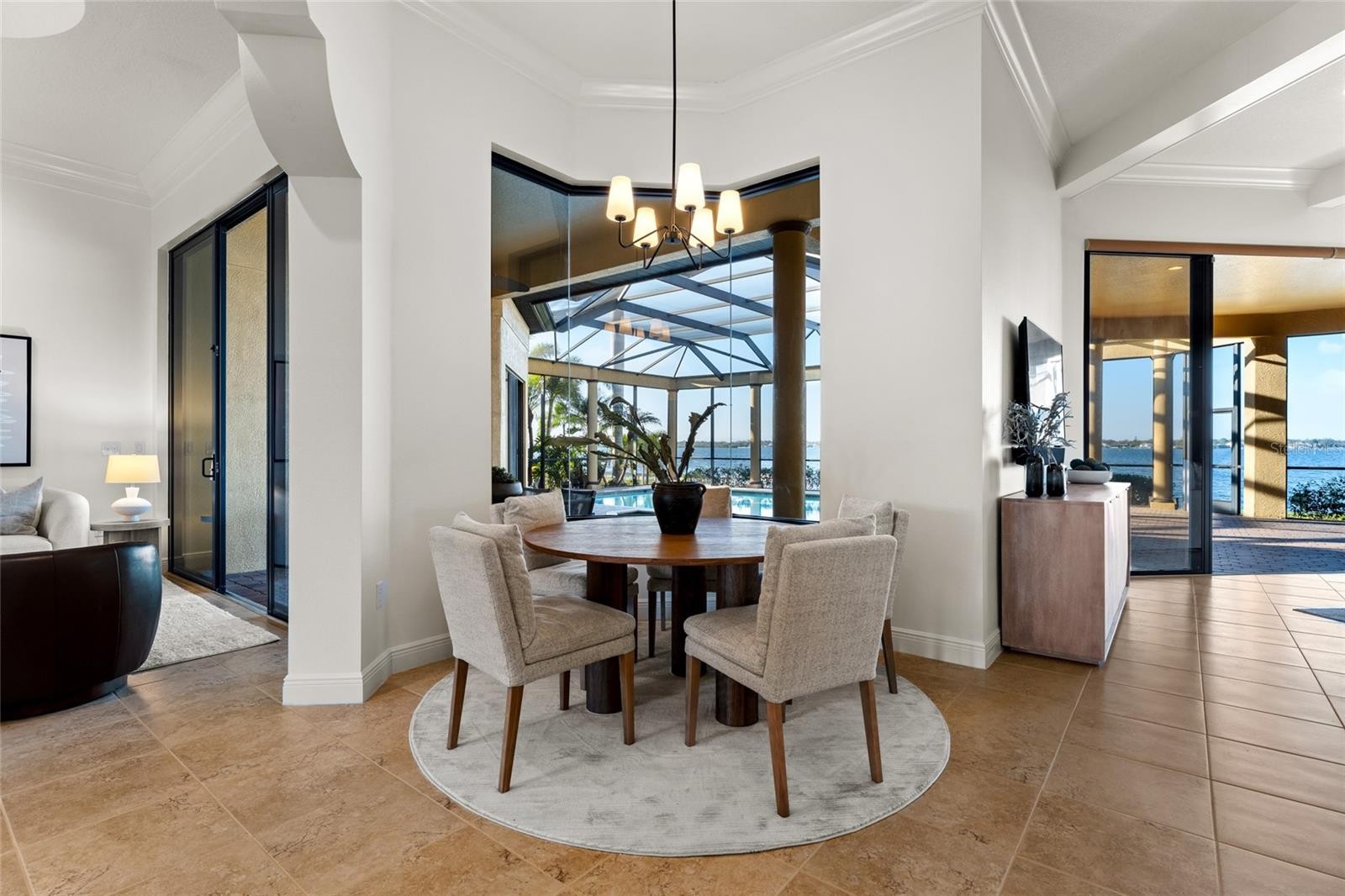 4003 Hawk Island Drive, Bradenton FL Positioned along the picturesque private street that defines Hawk Island, this waterfront estate delivers architectural scale, exceptional privacy, and direct boating access inside one of Bradenton’s most exclusive guard gated communities. With a single road serving the entire peninsula, the setting feels discreet and insulated, yet close to everything that makes life on Florida’s Gulf Coast so desirable. Extensively refreshed with a new roof, new interior and exterior paint, and new flooring throughout, the home presents with a clean, cohesive aesthetic. Inside, beautiful 18 foot ceilings elevate the main living areas, bringing in natural light and showcasing long water views from nearly every primary space. The kitchen anchors the home with generous proportions and seamless connectivity to both formal and casual living areas, designed for everyday living and entertaining without feeling segmented. Expansive glass doors open to a sprawling covered lower lanai, while the upper open air terrace captures elevated sunset views and coastal breezes. The floor plan was intentionally designed for flexibility. In addition to the primary suite, a true second master suite offers comfort and separation for extended guests or multigenerational living. Upstairs, a substantial bonus room and private living area create an ideal retreat for older children or visiting family, offering independence while still connected to the home’s central spaces. Two dedicated office spaces support a work from home lifestyle, including a main office with a private flex room positioned just behind it, ideal for a curated wine room, fitness studio, or secure specialty space tailored to the next owner’s preferences. Outdoor living unfolds across multiple seating areas and is anchored by an oversized pool and spa, along with a separate soak pool that enhances the resort-style setting. A private dock with lift and an observation and fishing pier extend from the rear of the property. With water exposure on both sides of the residence, the views and atmosphere feel expansive, while the positioning remains composed and protected, a rare advantage in Manatee County waterfront living. Enjoy sunrise over the Manatee River where dolphin, rays, sharks, and coastal fish feed in the shallows just offshore. Car enthusiasts will appreciate the four car garage configuration, including two detached bays, along with an oversized drive offering additional parking and a strong sense of arrival. Mature, lush landscaping surrounds the property, reinforcing its privacy and established character. Convenient to Gulf beaches, private golf clubs, dining, no-bridge boating access to Anna Maria Island and Tampa Bay, and the airports of Sarasota and Tampa, 4003 Hawk Island Drive presents a distinctive opportunity within a tightly held waterfront community defined by scale, discretion, and lifestyle.