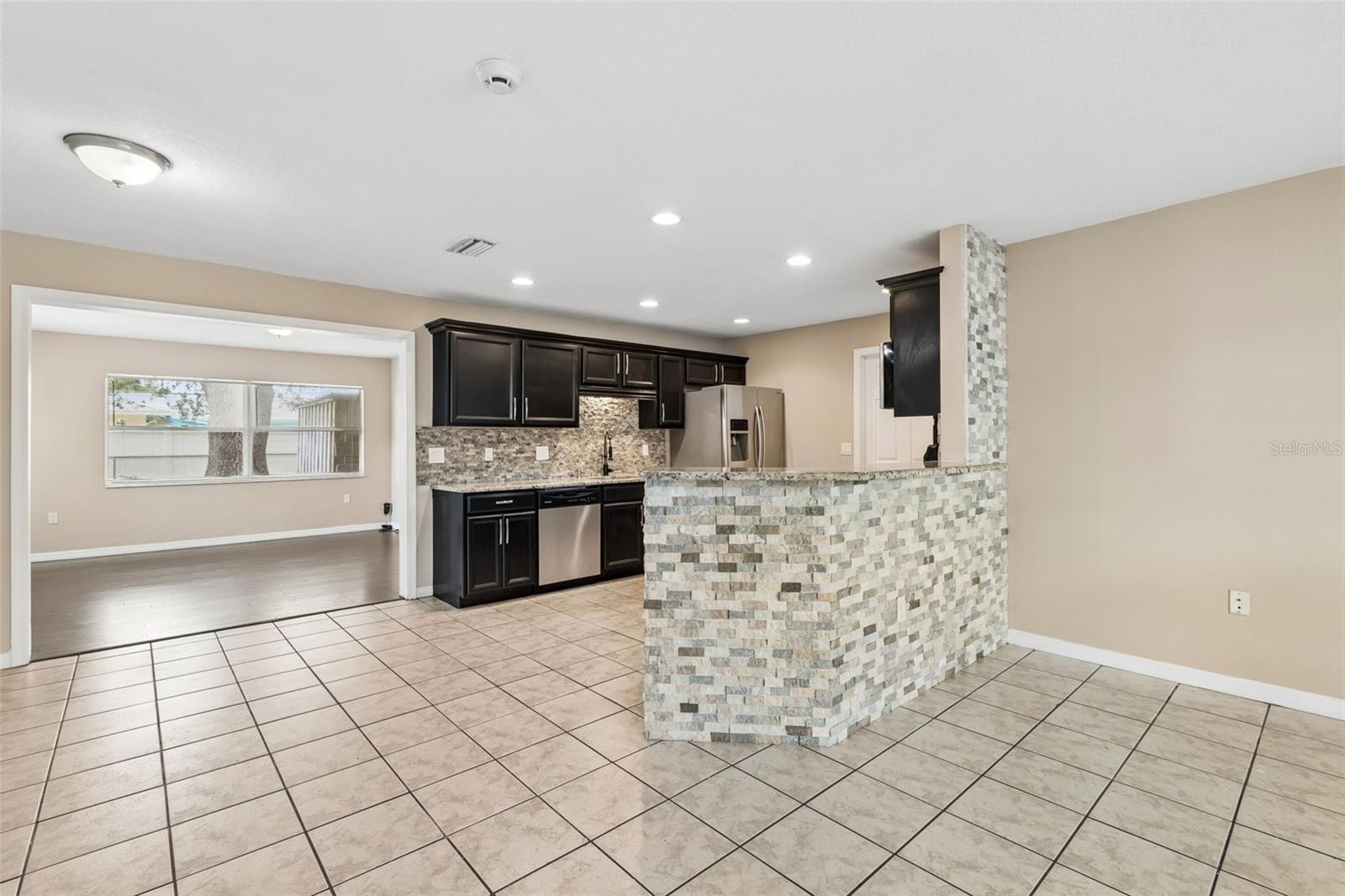 Welcome to this spacious 4-bedroom, 2-bath home featuring an open floor plan that seamlessly connects the kitchen, dining, and living areas—perfect for entertaining or relaxing with family. The large kitchen offers plenty of workspace and storage, while the bonus/family room adds flexibility for a playroom, home office, or media space. The primary suite includes a walk-in shower and an upgraded closet system for extra organization. Throughout the home, you’ll find ceiling fans, ceramic tile and vinyl floors (no carpet), and an inside laundry room. Major updates bring peace of mind: HVAC (2024), water heater (2019), roof (2015), and a new garbage disposal. Step outside to a fully fenced, oversized backyard—ideal for pets, outdoor living, or adding a pool. A large storage shed provides additional space for tools and toys. With no HOA restrictions, you’ll have the freedom to make this property truly your own. Conveniently located near shops, restaurants, the airport, and Sarasota’s world-famous beaches, this move-in-ready home offers comfort, functionality, and a prime location for your Florida lifestyle.