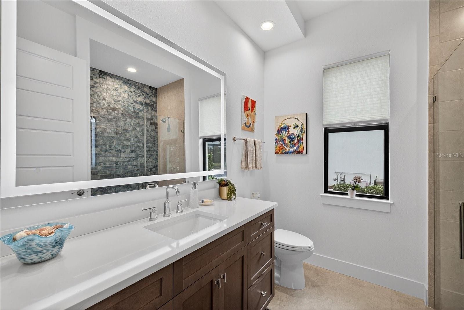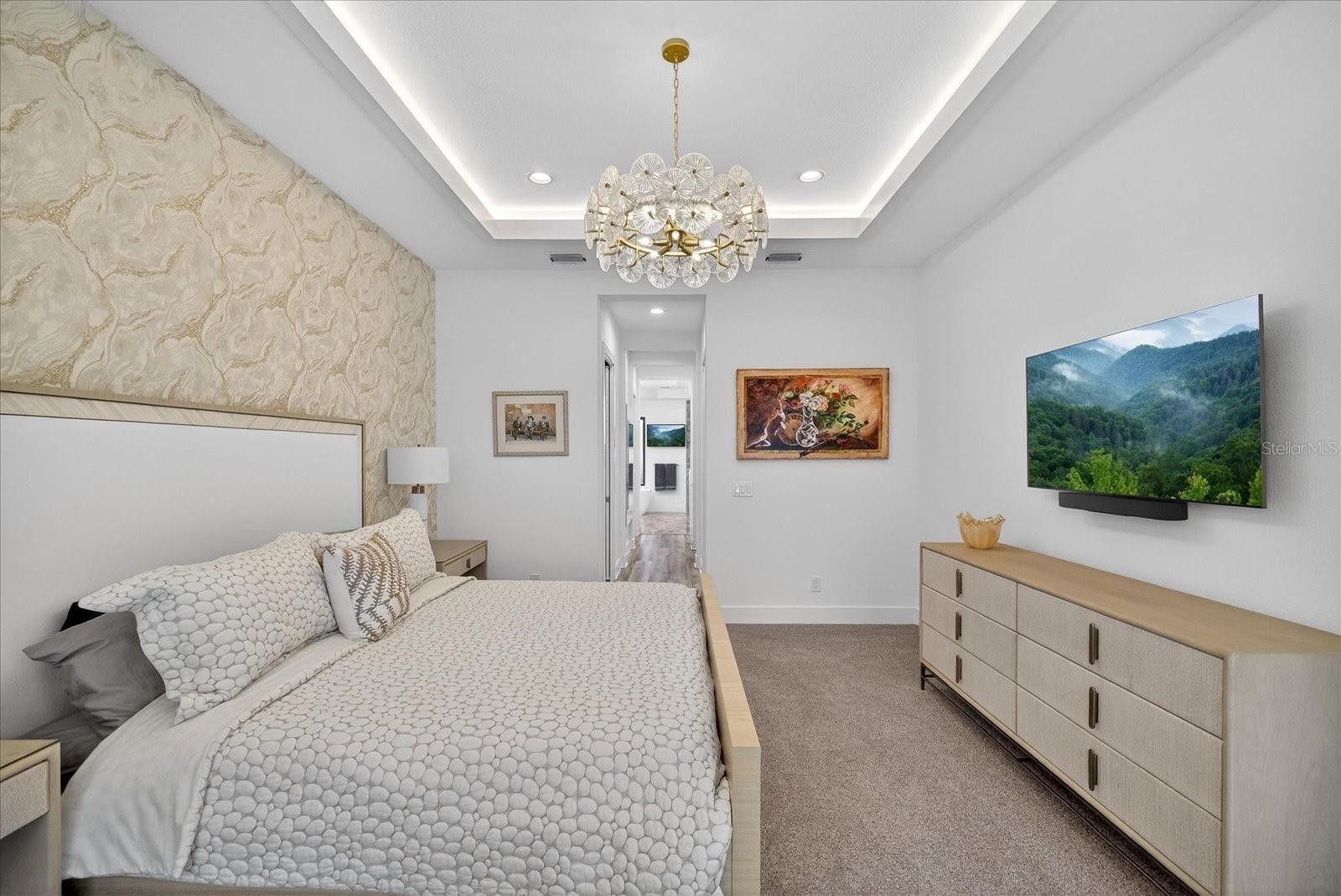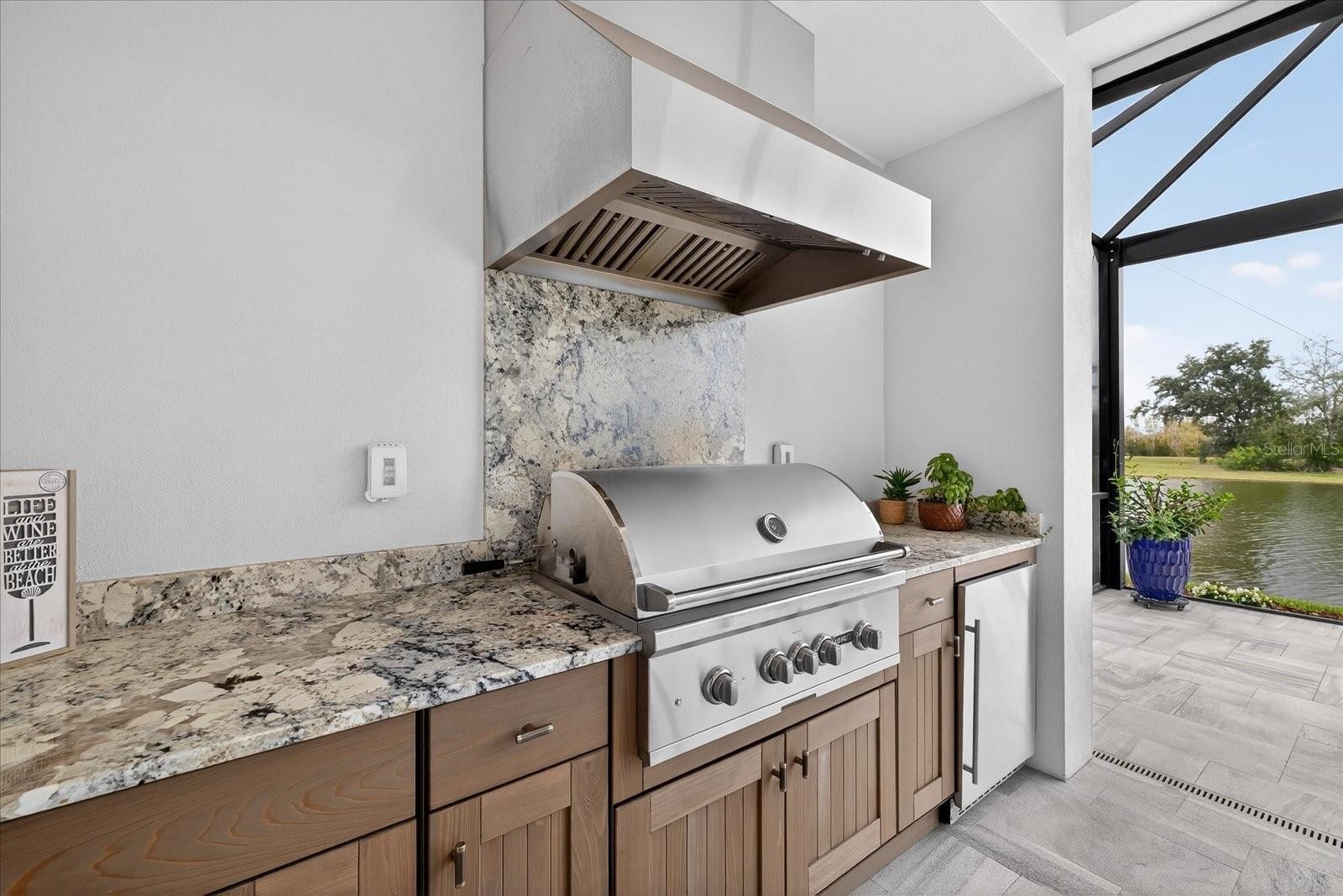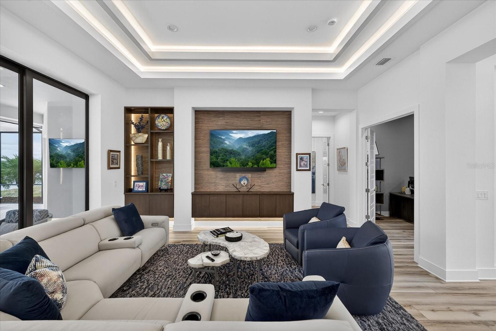 Considering building a custom home or working with a luxury production builder but hoping to avoid the wait, delays, and punch lists? This Lee Wetherington custom single-story residence, built in 2024, offers the best of both worlds. Ideally positioned on a premium lot in Star Farms at Lakewood Ranch, the home is designed to maximize sweeping western lake views and serene preserve surroundings. Offering over 3,100 square feet of thoughtfully designed interior living space and an impressive 2,100 square feet of outdoor living, this home embodies refined Florida living. The layout includes four spacious bedrooms, four beautifully appointed bathrooms, a den/office, an oversized and versatile bonus room, and a generously sized great room ideal for both everyday living and entertaining. At the heart of the home is an open great room floor plan centered around 24 feet of oversized, center-opening glass stacking sliders that flood the space with natural light and frame tranquil lake views. The living and dining areas are enhanced by 12-foot double tray ceilings with LED uplighting, creating a warm and elegant atmosphere. The chef’s kitchen features a Sub-Zero refrigerator, high-end stainless steel appliances, wine refrigerator, sleek quartz countertops with seating for four, custom wood cabinetry with accent LED lighting, and an expansive walk-in custom pantry. Continuing the home’s seamless indoor-outdoor flow, the bonus room is equipped with 18 feet of unobstructed, disappearing corner glass sliders that open directly to the lanai. With over 42 feet of access to the outdoor space, guests can easily step outside to enjoy Florida’s year-round sunshine. Entertainment is elevated with a multi-zone Sonos sound system and a resort-style pool featuring three decorative fountains. The owner’s suite is a private retreat, offering dual custom walk-in closets, a soaking tub, oversized walk-in shower, dual vanities, tray ceiling with LED lighting, a statement chandelier, remote blackout shades, and glass French doors providing private lanai access. Two out of the three guest bedrooms feature en-suite bathrooms, each offering spacious closets, chandeliers, vanity lighted mirrors, and blackout shades, providing comfort and privacy for family and visitors. The exceptional outdoor living area features an alfresco kitchen, refrigerator, natural gas fire table, a 10,000-gallon heated saltwater custom pool and spa, panoramic screened enclosure, and stunning leathered marble pavers set in a tight French pattern. Completing the home is an oversized three-car garage, fully insulated and climate controlled, offering ample storage, an epoxy floor, and two EV charging receptacles. This energy-efficient smart home includes a tankless recirculating hot water heater, integrated camera system, smart deadbolt keyless entry, remote pool controls, smart HVAC systems, hard-wired Wi-Fi boosters, and a Ring video doorbell. Impact windows and doors throughout, along with remote hurricane screens, provide added protection, privacy, and shade. Additional features include custom built-in cabinetry and shelving, a functional drop zone, decorative cultured stone exterior accents, and natural gas throughout. Residents of Star Farms enjoy access to on-site restaurants, a resort-style pool, pickleball and tennis courts, fitness facilities, and more. Skip the build time and start enjoying breathtaking sunset views today. This home is truly move-in ready!