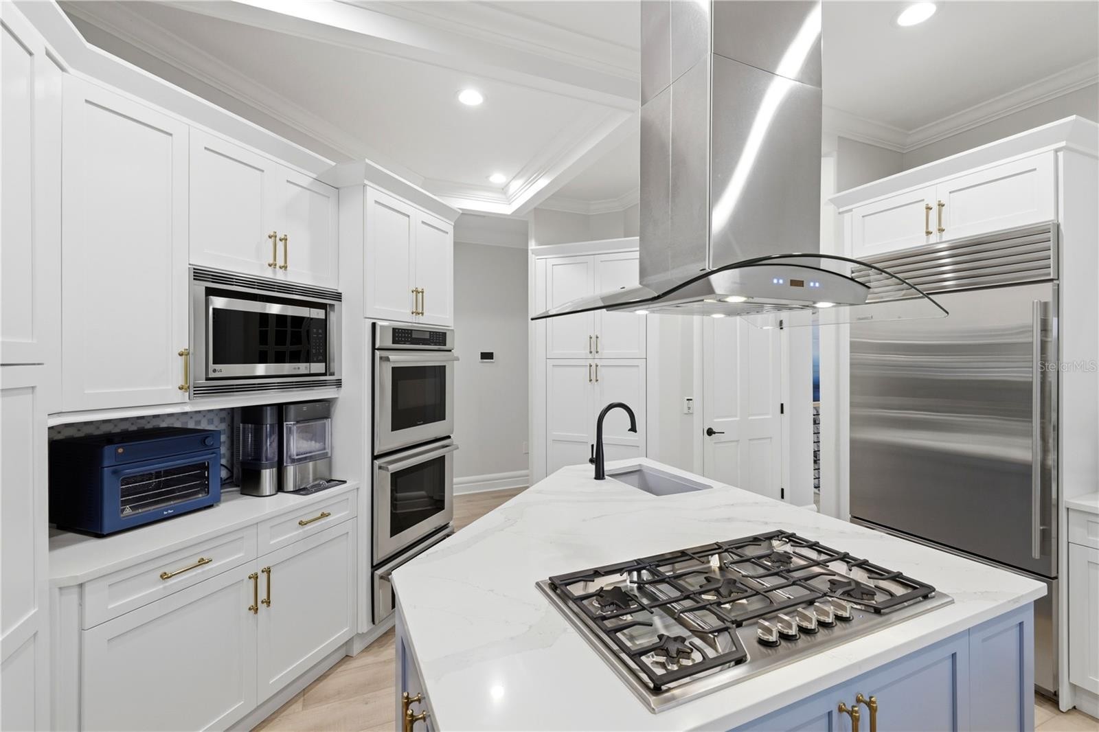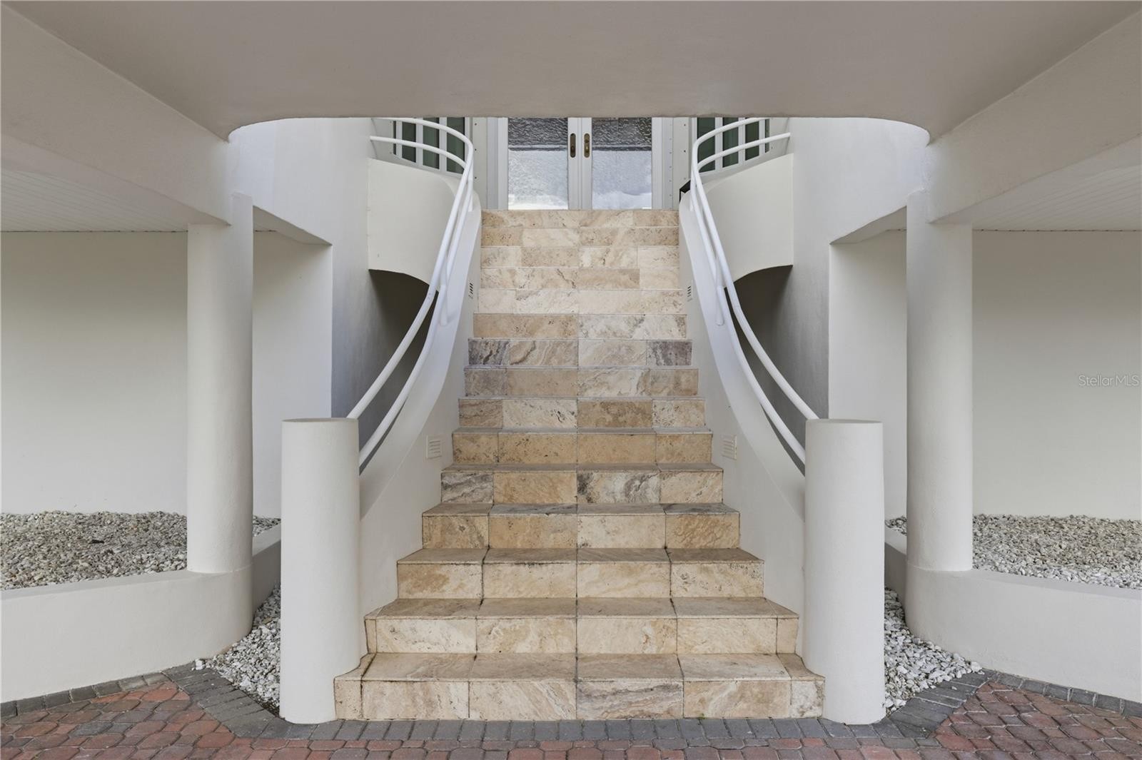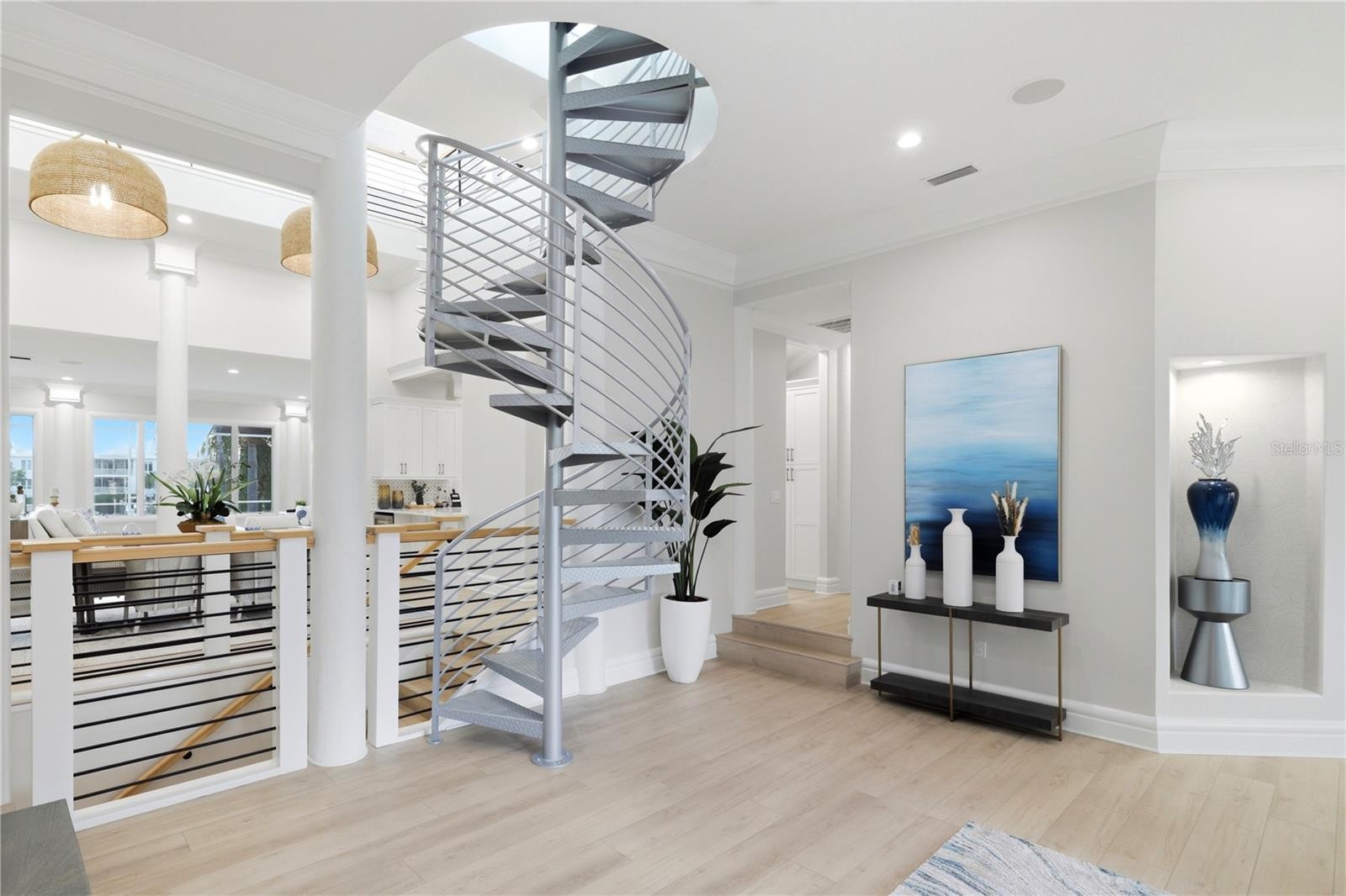 A rare offering on the exclusive enclave of Roberts Point Road, this fully remodeled in 2023 waterfront estate embodies refined coastal luxury, encompassing 5,458 square feet with five bedrooms, four full bathrooms, and one half bath. Showcasing water frontage on both the front and rear with direct, no-bridge access to Sarasota Bay, the home is set on a private 0.64-acre homesite. The property features a brand-new seawall and two exclusive dock settings, including a 16,000 lb boat lift and jet ski lift, along with a private waterfront seating area designed for effortless enjoyment of the serene surroundings. Underground utilities preserve uninterrupted water views, while soaring ceilings and a signature eagle’s nest vantage point elevate the home’s architectural presence and capture breathtaking vistas. Inside, the residence has been masterfully transformed with a refined open-concept design, anchored by a fully redesigned chef’s kitchen featuring Sub-Zero refrigeration, a gas range, new appliances and countertops, and exceptional craftsmanship throughout. Custom millwork, designer lighting, shiplap detailing, and elegant new railings define the home’s modern coastal aesthetic. The thoughtfully designed floor plan offers three distinct kitchen spaces—including a main kitchen, outdoor kitchen, and private guest suite kitchen—along with a private-entry guest residence and a versatile ground-floor loft with dual Murphy beds, providing exceptional flexibility for both everyday living and elevated entertaining. A private elevator services the home, while a new glass front entry door—currently being installed—further enhances its modern coastal presentation. Curated for both comfort and performance, the home is equipped with three new AC systems, a new well, enhanced irrigation and landscaping, a whole-home Generac generator, reverse osmosis and Kinetico water systems, and full smart home integration through Control4 automation, Sonos audio, and a high-end AV infrastructure. Outdoors, a resort-style pool and spa with both gas and electric heating and full app-based control ensure year-round enjoyment. Additional features include a six-car garage with epoxy floors, a bespoke outdoor bar and kitchen, screened enclosure, kayak storage, and a private sand area—culminating in a truly turnkey, design-forward waterfront estate in one of Sarasota’s most coveted locations.