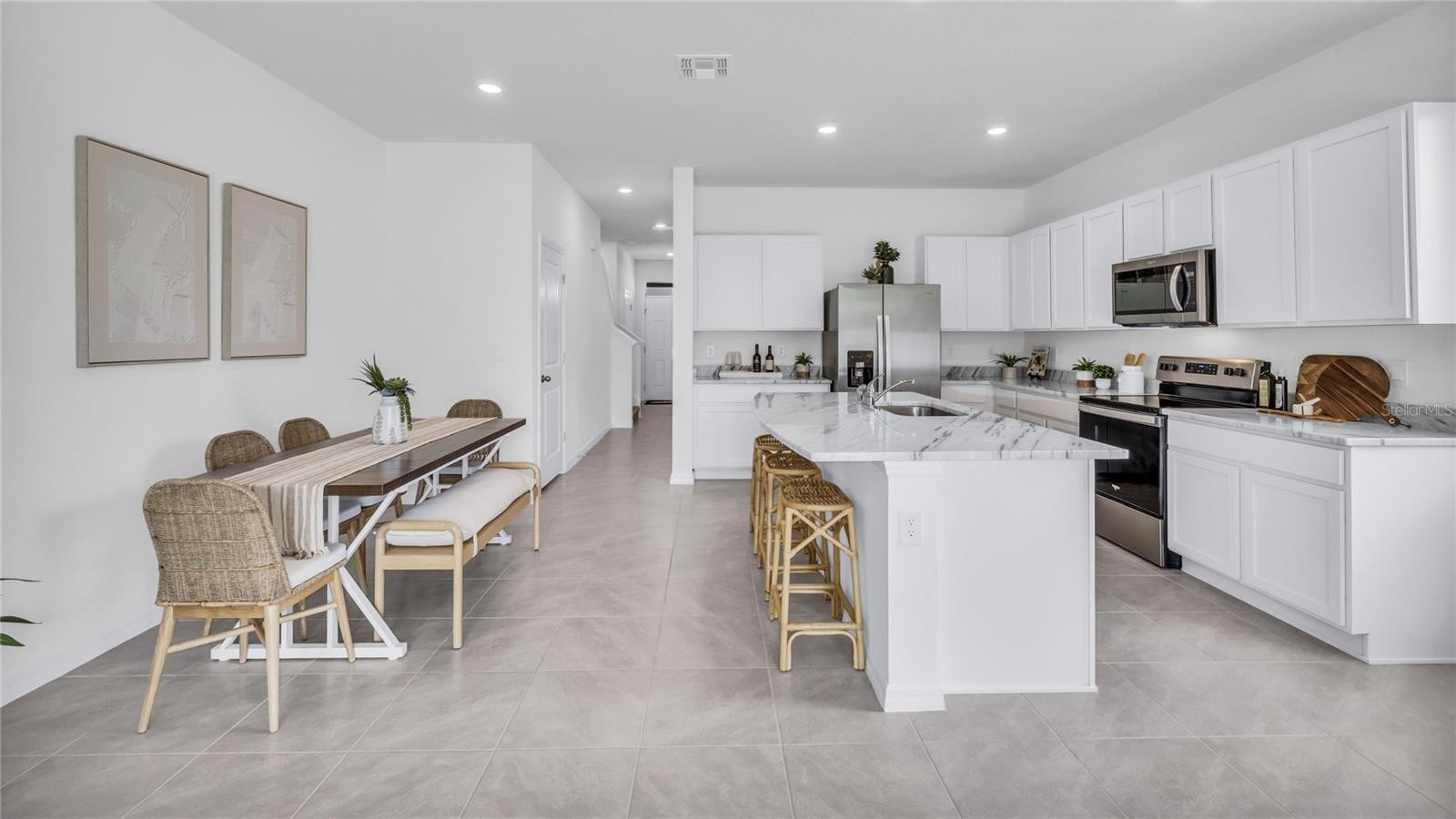 MOVE IN READY! ALL CLOSING COSTS PAID, special interest rates and price reductions available until December 31st. Must use preferred lender to receive closing cost contributions and special interest rates. See an on-site sales consultant for more details. This two-story, all concrete block constructed end-unit townhome has an open concept downstairs that includes a large open kitchen, a powder room, and a large family room that overlooks a covered lanai. The second floor includes a spacious Bedroom 1 with ensuite bath, two additional bedrooms, a full bathroom, and a laundry area. This home comes with all appliances, including a stainless-steel refrigerator, built-in dishwasher, electric range, microwave, washer, and dryer. Pictures, photographs, colors, features, and sizes are for illustration purposes only and will vary from the homes as built. Home and community information including pricing, included features, terms, availability and amenities are subject to change and prior sale at any time without notice or obligation.