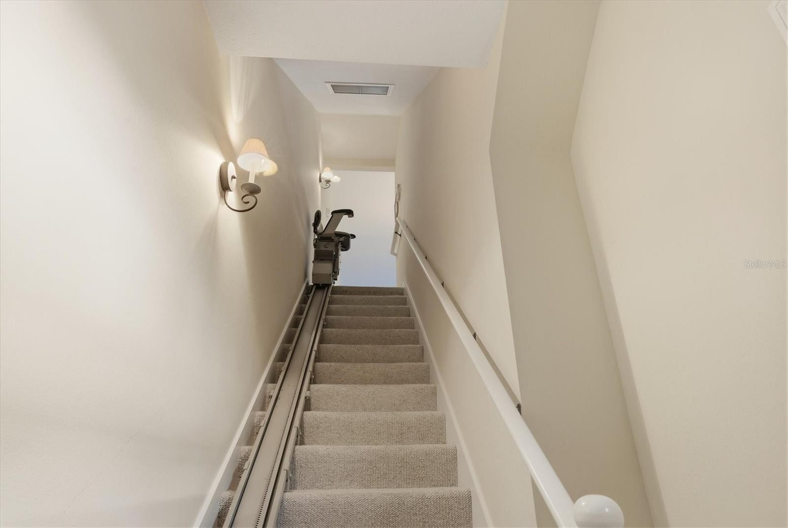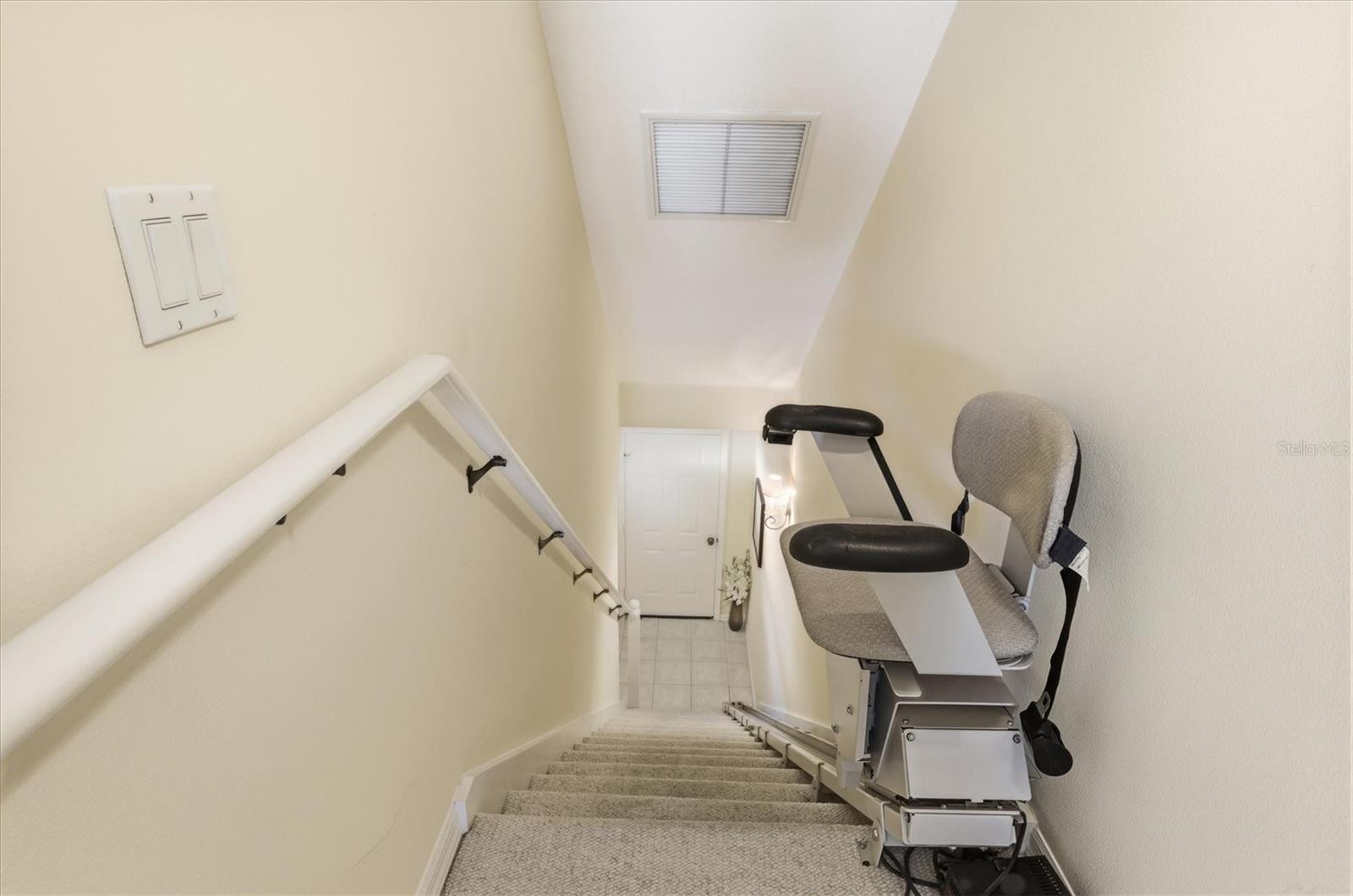 Don't miss this lovely home with long panoramic lakefront views!! 2 bedrooms PLUS Bonus room, 2 bathrooms, 1 car garage. Beautiful 2nd floor condo gives long beautiful views of lake and Clubhouse pool area in distance! Front foyer entry into home with stairs or "awesome" Bruno chair lift for you or packages, groceries, or you!! just great to have!! Open and light from back to front with peaceful lake views for beautiful sunsets then See the sun rise with your morning coffee from your lovely front porch overlooking Easterly landscaping, lake and morning sunrises!! Lovely master bedroom has sliding glass door to screened lanai, nice large windows bringing in that Florida sunshine, large walk in closet, master bath, vanity with 2 sinks, nice lighting for personal use, shower and water closet. Living room/great room, dining room is adjacent to large kitchen with breakfast bar. Laundry room has great access from living areas, bedroom 2 is adjacent to bath 2 with newer walk in shower and conveniently located to front porch thru sliding glass door. Bonus room is your choice of uses, office, breakfast room, library, TV, etc., choices go on! Kitchen is light and bright with breakfast bar and opens fully to dining and living room area. Foyer entry is convenient or just steps from 1 car garage into home. Gondola Park is centrally located for all your shopping needs, clubhouse is close by with heated pool, tennis and pickle ball court gives great exercise close by, minutes to Historical Downtown Venice and Venice Beachs on the Gulf of Mexico and Intracoastal waterway! Lanai has weatherproof roll downs giving peace of mind for inclimate weather