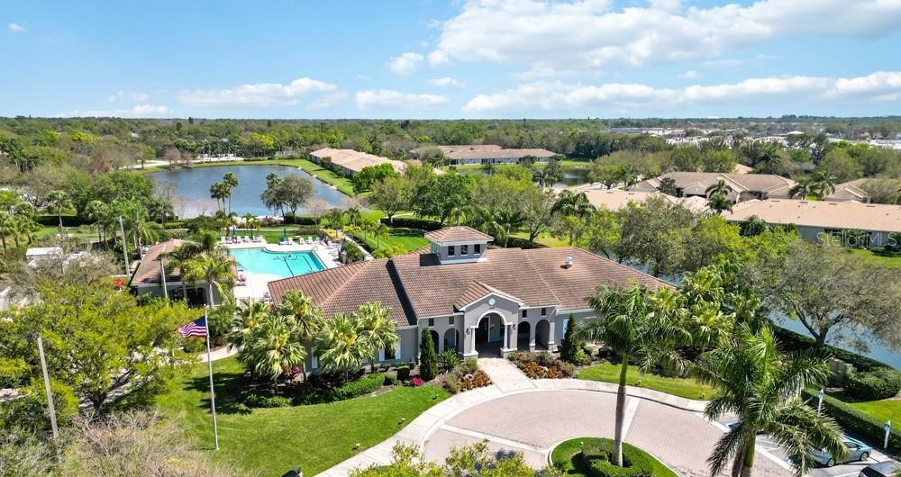 Beautifully maintained 2 bedroom plus den, 2 bathroom, 2 car garage home in a desirable 55+ community offering comfort, functionality, and key updates. This home was gently used as a second home. Enjoy peace of mind with a brand new A/C system. The spacious interior features large diagonal tile flooring, creating an open, upscale feel. The living and dining carpeted areas provide a generous layout perfect for relaxing or entertaining. Enjoy views of the spacious screened lanai and lake views through two large sliders. The screened lanai is perfect for enjoying beautiful Florida weather. A versatile carpeted office/den with double-door entry adds flexibility for hobbies or guests. The eat-in kitchen offers a gas range, refrigerator, ample cabinetry, breakfast bar, pantry and easy care tile flooring. The primary ensuite with lake views includes a well-sized bedroom with sliding doors overlooking the lanai. You get a walk-in closet and regular closet. The primary bathroom has higher dual sink vanity counters, linen storage, and an upgraded deep-soaking tub for a spa-like retreat. The guest bedroom features a regular closet and cozy carpeting. Guest bath includes a single sink and tub/ shower combination with updated fixtures. All the appliances are conveying including the washer and dryer in the laundry area. Lots of storage in this home. Wired for ceiling fans. The garage is a standout feature with storage lockers, workbench, and hanging racks — perfect for organization and projects. American Home Shield home warranty transfers to the new owner. A wonderful opportunity to enjoy low-maintenance living in this active 55+ community. Lakeridge Falls is a 24 hour-guard gated community. It offers an updated clubhouse with grand salon for a full array of activities, state-of-art fitness center, card room, billiards room, resort style heated lap pool and spa, bocce ball courts and its own private sandy beach. Walking trails and beautiful lakes are another of its many attractive features. There is a one-time Capital Contribution of $1,500.00 at closing. The community is located conveniently close to shopping at the UTC Mall, restaurants, grocery stores, coffee shops, world awarded beaches and the Sarasota airport. Your next chapter starts here, contact us today to set up a viewing.