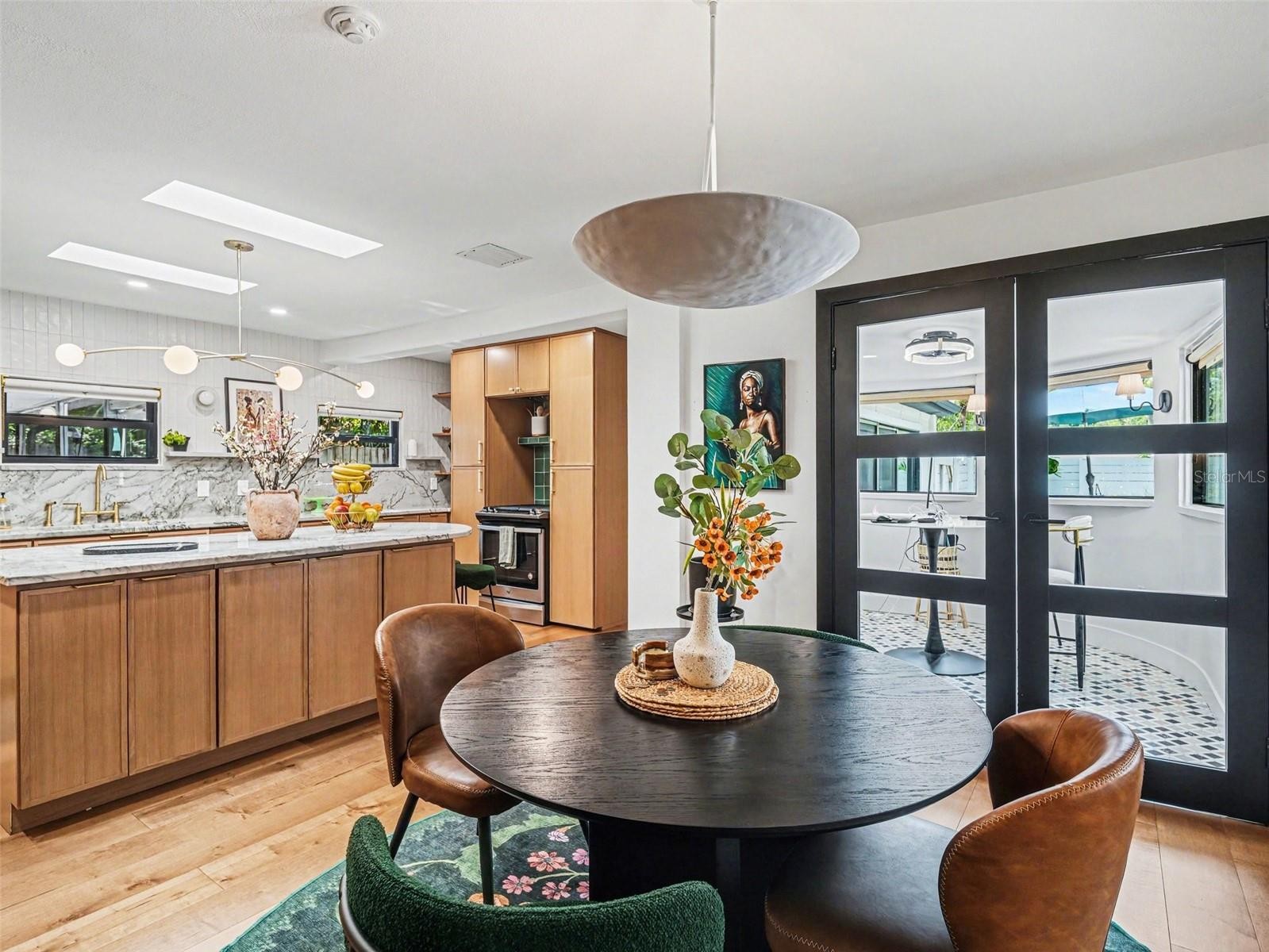 Step into a home that redefines privacy, design, and sophistication. Priced at $870,000, this fully renovated 3-bedroom, 3-bathroom residence with a dedicated office and pool offers a rare courtyard-style layout where indoor and outdoor living seamlessly intertwine. Enter through a private gated front courtyard, and you’re immediately welcomed by a heated pool, custom pavers, and a striking outdoor wood-burning fireplace. Cement planters with cushioned seating surround the pool, creating a relaxed resort-style setting, while a lemon tree and foliage add a natural, tranquil touch to the courtyard oasis. This is an intimate, resort-style setting designed for both private entertaining and everyday living. The oversized screened lanai extends your living space even further, creating multiple areas to relax and unwind in complete privacy. Inside, modern upgrades marry timeless design across a beautifully connected living and kitchen layout. The living room is anchored by a sleek electric fireplace and a mounted picture frame TV against a green tile backsplash, creating a refined focal point that feels both comfortable and elegant. The kitchen is equally impressive, featuring quartzite countertops, floor-to-ceiling custom cabinetry, and a pot filler above the gas stove. Seamlessly integrated appliances, including a refrigerator concealed within matching cabinetry, enhance the clean, elevated aesthetic. A hidden “secret” door within the kitchen leads to a spacious laundry room and full bath, adding practicality while introducing a subtle element of surprise. The private office is another standout feature, finished with marble flooring and framed by large windows overlooking the courtyard and pool. Abundant natural light and serene views create an inspiring workspace, while French doors provide privacy when needed. New engineered wood flooring flows throughout the home, complemented by updated lighting and new hurricane impact windows and doors for peace of mind. This home offers the rare advantage of two primary suites, each refined in every detail. The main suite is a true retreat, featuring a private dry bar with a mini fridge, a fully customized 7x17 walk-in closet, and a spa-inspired bath with a soaking tub, expansive walk-in shower, heated towel rack, smart toilet, and designer finishes in warm, sophisticated tones. The second suite provides its own spacious bath and beautifully finished walk-in shower, ideal for guests or multigenerational living. The third bedroom has beautiful views of the pool through the sliding glass doors. Additional upgrades include a whole-home water filtration system, split A/C units for enhanced cooling, an attic fan, and new fencing surrounding the courtyard. Parking is abundant with a circular driveway and additional space alongside the fence, comfortably accommodating five or more vehicles. A separate outdoor shed provides convenient storage for lawn and pool equipment. Located in a quiet neighborhood just a few streets from the water, this home is a rare find in today’s market, where every detail has been carefully curated for luxury, comfort, and style. Furnishing negotiable!