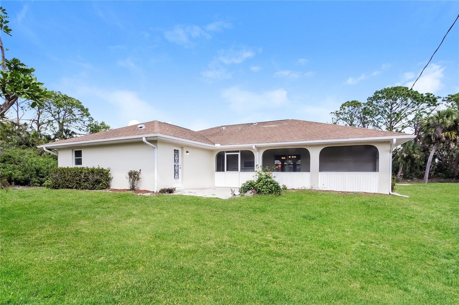 LOCATION, LOCATION, LOCATION! This CITY WATER home is perfectly situated in the heart of North Port, Florida, just moments from Coco Plum Plaza—yet nestled in a quiet, friendly neighborhood. Step inside to an open floor plan featuring cathedral ceilings, a spacious living room, dining area, and family room, along with split bedrooms for added privacy. The master suite boasts a large walk-in closet and a luxurious bathroom with a Roman-style shower. The guest quarters include a well-appointed bathroom that can also serve as a convenient lanai/pool bath. Step out to the screened lanai—generously sized and complete with a hot tub, overlooking a beautiful backyard with ample space to add a future pool. This property is free of HOA and CDD fees, and close to Gulf beaches, the new water park, shopping, dining, schools, and major highways. Make this your piece of Florida paradise today!