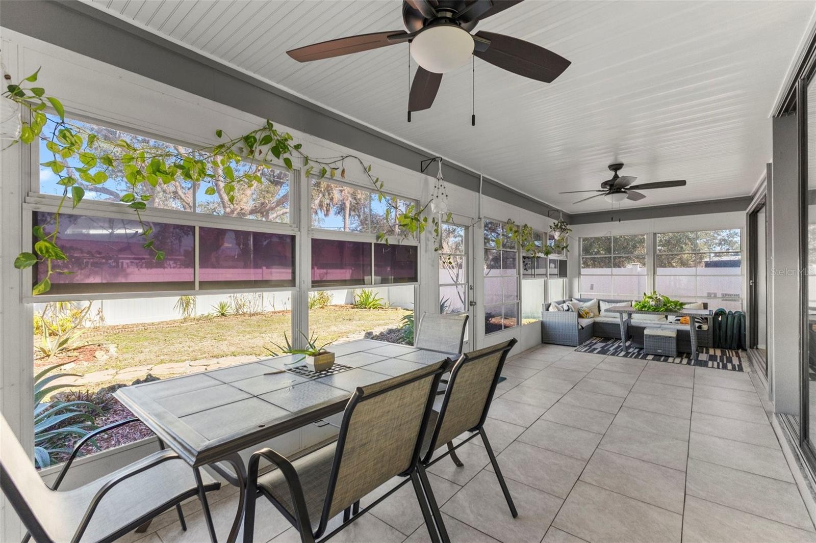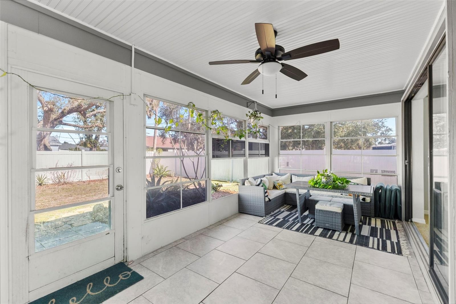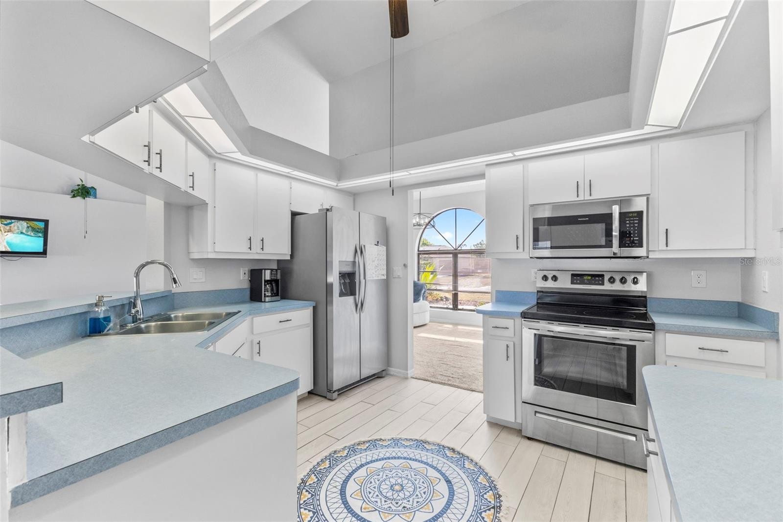 Price below market value. Welcome to this well-maintained 3-bedroom, 2-bath home offering 1,844 sq. ft. of living space on an almost quarter-acre lot in North Port. With no HOA and no CDD, this property provides flexibility and freedom in a desirable residential setting. Inside, vaulted ceilings create an open and airy feel, complemented by a herringbone-tiled foyer and thoughtful updates throughout. The kitchen features newer appliances and flows seamlessly into the main living areas, making the layout ideal for everyday living and entertaining. Both the living room and primary bedroom offer pocket sliding doors leading to the enclosed, oversized lanai/Florida room, providing additional year-round living space. The primary suite includes an updated double vanity and ample closet space. Major improvements add peace of mind, including a roof (2021), AC system (2022), and garage door (2022). Enjoy outdoor living in the landscaped backyard, fully enclosed with a newer privacy fence (2022) and featuring a children’s swing set. Conveniently located near shopping, dining, and local amenities, this home offers comfort, space, and recent updates in a non-deed-restricted neighborhood.