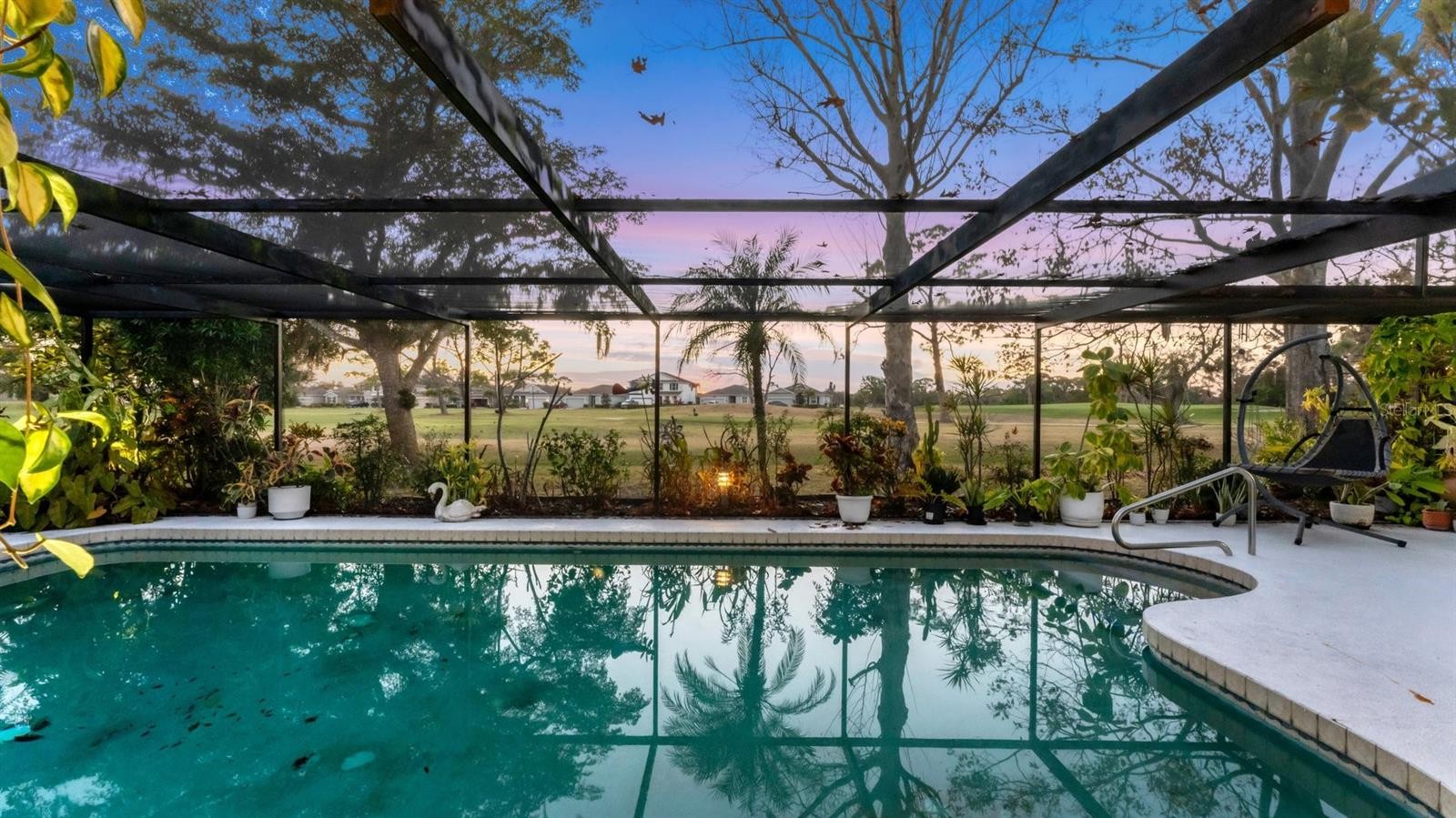 This is a rare opportunity to purchase a well built original Bent Tree home with newer roof right on the fairway of Bent Tree golf course. This beautifully maintained split plan residence offers privacy, thoughtful upgrades, and premium positioning within the neighborhood. Bent Tree Community Homeowners Association dues are only $319 per year. Situated on a premium lot on hole #16, it boasts a west-facing rear exposure to enjoy sunsets throughout the seasons and beautiful afternoon light situated on an elevated lot that you can see clearly from the roadway. The property has never experienced flooding and features many different exotic trees, including an original Bent Tree bottle brush,a maple tree in front, sycamore, camphor, and bamboo. The exterior showcases an authentic clay brick driveway, brick paver front entry, and decorative porcelain tile accents with evening lighting. Twelve-volt LED driveway lighting and professional 120-volt LED landscape lighting enhance the property’s curb appeal. Inside, the home features porcelain tile flooring throughout—no carpet. Recent improvements include new bathroom mirrors and Kohler faucets, 72-inch energy-efficient DC indoor/outdoor ceiling fans (6 total), and replaced sliding glass doors (11/2021). Most windows were replaced in 05/2021 with Armortech windows all under Sarasota County permit. Additional metal security panels provide extra hurricane protection for select windows. The property includes a well-fed, three-zone sprinkler system for lawn irrigation and a hot water heater timer for additional efficiency. Outdoor living is enhanced by two private bathroom courtyards finished with real brick pavers and Hardy Board fencing. The pool area is supported by updated equipment and energy-efficient systems. This property combines extensive upgrades, quality materials, and a prime golf course setting—ready for its next owner to enjoy.