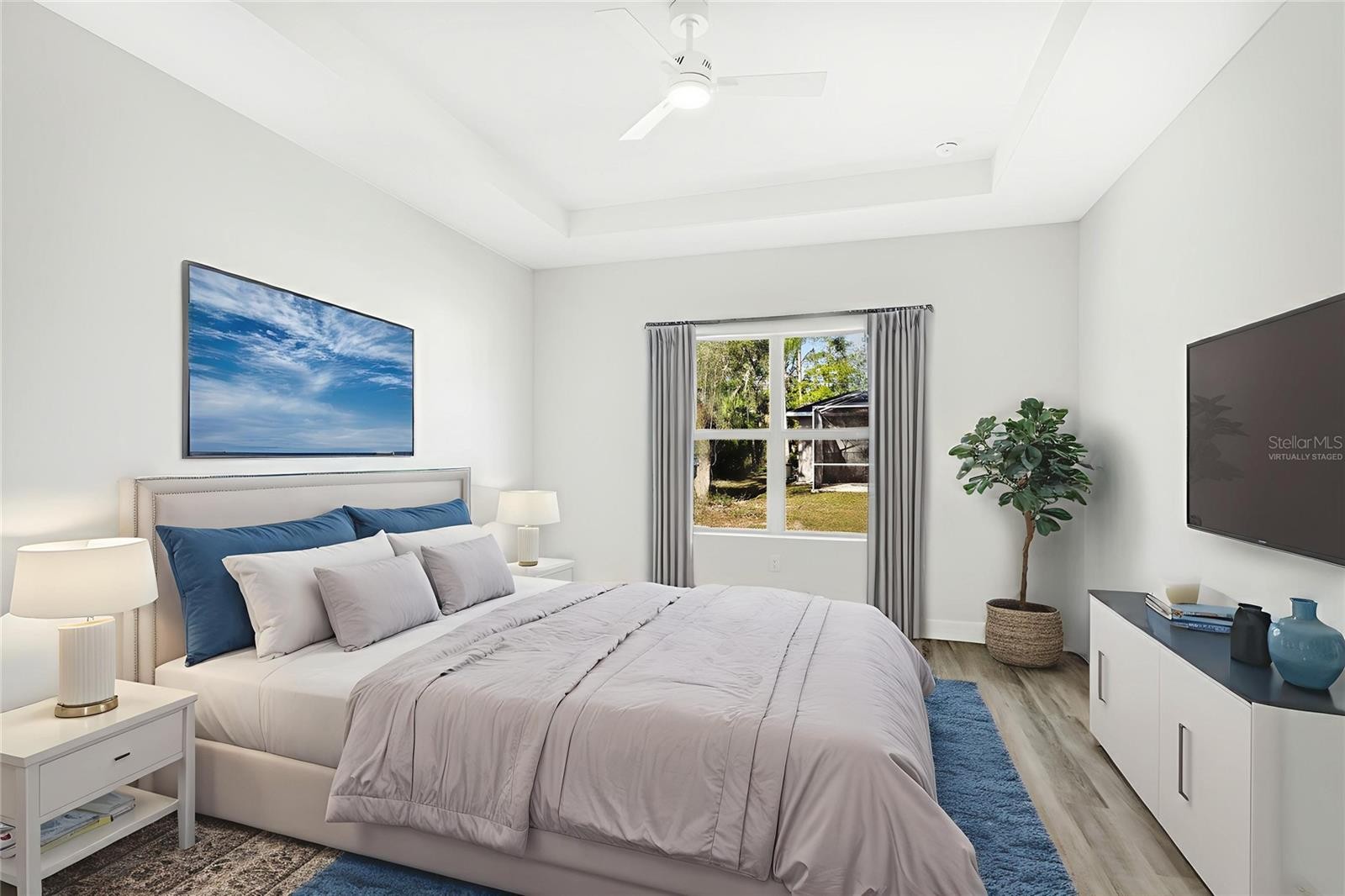 One or more photo(s) has been virtually staged. Located on an oversized corner lot, this modern 3-bedroom, 2-bath residence offers 1,615 square feet of thoughtfully designed living space with a clean, contemporary aesthetic throughout. From the moment you arrive, the home’s curb appeal stands out with a paved driveway, manicured landscaping, and a welcoming covered entry that sets the tone for what’s inside. The interior opens to a bright, open-concept layout highlighted by dramatic ceilings and durable vinyl plank flooring that runs throughout the home with no carpet to maintain. The kitchen serves as the heart of the space, featuring a large center island with architectural detailing, white cabinetry, subway tile backsplash, and stainless steel Samsung appliances. Pendant lighting and modern fixtures add warmth and character while maintaining a sleek, cohesive look. The living and dining areas flow seamlessly together, creating an ideal setting for everyday living and entertaining. Large windows and sliding glass doors invite natural light and connect the interior to the covered rear lanai, overlooking a spacious backyard with ample room to add a pool or customize an outdoor retreat. The primary suite offers a peaceful escape with tray ceilings, generous natural light, and a well-appointed ensuite bath featuring dual vanities and a walk-in shower. Two additional bedrooms provide flexibility for guests, a home office, or additional living needs. A dedicated laundry room with washer and dryer included adds everyday convenience. Built with efficiency and ease in mind, the home includes an energy-efficient system, vinyl windows, modern doors, and a professional irrigation system. With its oversized corner lot, contemporary finishes, and move-in-ready condition, this property offers a modern lifestyle with space, privacy, and low-maintenance living in a growing North Port location. **THIS PROPERTY QUALIFIES FOR A 1% LENDER INCENTIVE IF USING PREFERRED LENDER. INQUIRE FOR MORE DETAILS.**
