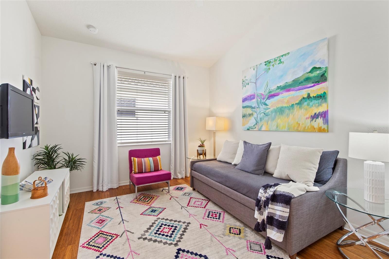 Welcome to this immaculate light-filled 2 bedroom, 2 bath home with a den, nestled in The Cascades at Sarasota, an active 55+ gated community that offers the perfect blend of modern updates and an unbeatable Sarasota location. Enjoy immediate peace of mind with significant investments already completed, including a brand new roof (2025) with wind mitigation inspection completed, HVAC system replacement (2023), fresh exterior repaint completed (2025), and accordion hurricane shutters for quick and seamless storm protection. For an even easier transition, most furniture is negotiable! Inside, the home boasts a completely updated kitchen (2020) and stylish flooring, featuring elegant hardwood bamboo in all bedrooms and easy-to-maintain tile, all complemented by abundant natural light. The Cascades community offers its residents amazing active adult living! Social amenities include a 25,000 sf clubhouse with a beautiful ballroom, library, Mah Jongg/card room, poker room, billiards room, and art & crafts room. Recreational amenities include a fitness center, aerobics room, locker rooms with showers & saunas, pickleball, Har-Tru tennis, bocce and horseshoe courts and an expansive resort-style indoor-outdoor pool. There are on-premises management & maintenance personnel, Sports Director, Tennis Pro and Pro Shop. Crucially, the home’s prime location provides quick access to the best of the region: it is just a short drive to diverse and signature retail and dining at UTC (University Town Center), SRQ airport and the amazing arts and waterfront activities of Downtown Sarasota. This beautiful property is ready for its next owner!