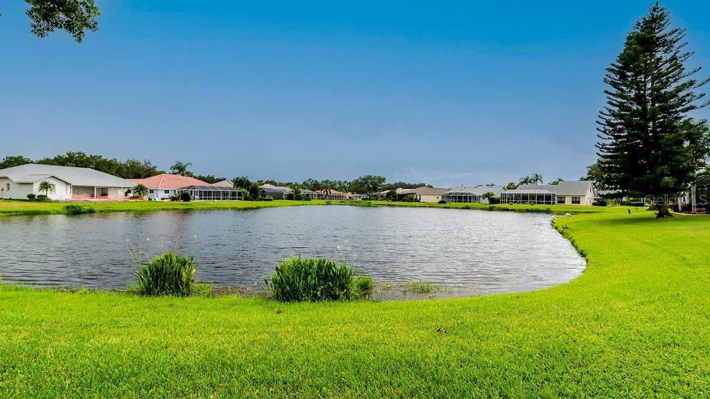 Nestled near the end of a peaceful cul-de-sac, this pristine 55+ Cascades home offers exceptional privacy and unobstructed picturesque water views on an extra-long lot, making it a perfect retreat for relaxation and entertaining. Enter through beautiful mahogany and glass front doors into a spacious, thoughtfully designed interior adorned with elegant whole-house crown molding. The eat-in kitchen is a delight, featuring a large pantry and ample cabinetry, equipped with convenient pull-out shelves, plus a breakfast bar perfect for casual dining. The kitchen seamlessly flows into the expansive Living Room with soaring 14-foot ceilings, ideal for dining and gathering. A wall of sliding glass doors opens to an extended lanai overlooking the serene water, creating an expansive and stunning indoor-outdoor living space. The luxurious owner’s suite also captures scenic lake views and boasts two walk-in closets and an en-suite bathroom complete with separate dual vanities, a make-up table, a soaking tub, and a separate shower. An additional bedroom and a versatile office space—featuring a built-in granite-topped desk and ample cabinetry—provide plenty of living and working space. The inside laundry room connects to the two-car garage and features beautiful custom cabinets and built-in shoe storage, enhancing organization and functionality. The newer A/C system ensures year-round comfort. This meticulously maintained home has been upgraded with a new garage door opener, attic stairs, recessed ceiling lights, and plush carpeting in the den and bedrooms. Custom California Closets were added to the garage, laundry room, and bedrooms for enhanced storage solutions. The garage also features a new sink, cabinets, and an epoxy-coated floor. Additional updates include a UV light treatment system for the A/C, new smoke and CO2 detectors, and a freshly painted interior and exterior. Outside, the home is equally impressive with paver brick driveway and walkway, enhancing curb appeal and complementing the beautifully landscaped setting. The Cascades community offers an unparalleled lifestyle with its 25,000 SF clubhouse, indoor/outdoor pool, pickleball, tennis, bocce, fitness center, billiards, spa, sauna, dance floor, and a vibrant array of social clubs and activities. This home combines luxury, comfort, and an active lifestyle—don’t miss your chance to make it yours!