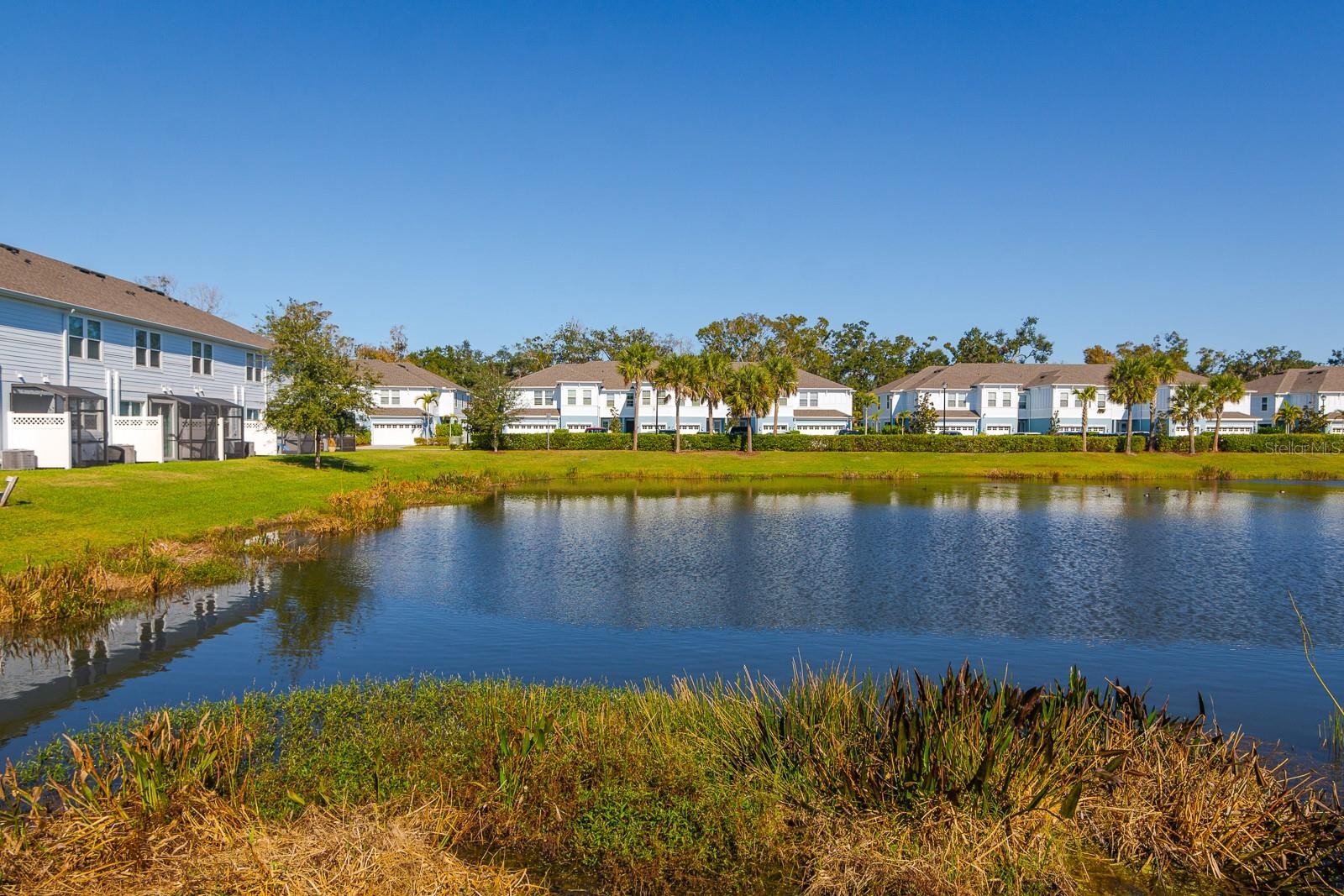 STUNNING TOWNHOME WITH EXPANSIVE POND VIEWS! This impeccably maintained 3-bedroom, 2.5-bath townhome offers approximately 1,920 square feet of thoughtfully designed living space, complete with a one-car garage and serene water views that create a truly peaceful setting. Upon entering, you are welcomed into a spacious and open great room with plenty of room for both living and dining—perfect for everyday comfort and entertaining alike. The stylish kitchen features quartz countertops, stainless steel appliances, abundant cabinetry, and bar seating, making it both functional and inviting. A convenient pantry provides additional storage, while the open layout allows natural light to flow throughout the space. The entire first floor is finished with elegant wood-look ceramic tile, adding warmth and durability. Upstairs, upgraded wood flooring continues through the stairway and hallway, leading to a well-designed split bedroom layout. The spacious owner’s suite overlooks the tranquil pond and features a large walk-in closet and an oversized en-suite bathroom with dual sinks. Two additional bedrooms are nicely sized and finished with plush carpeting, offering flexibility for family, guests, or a home office. The upstairs laundry room adds everyday convenience and ease. Step out onto the lanai and relax while enjoying peaceful pond views and abundant wildlife, creating a private and serene outdoor retreat. This home is move-in ready, very well maintained, and offers modern finishes throughout. Ideally located near shopping, dining, and everyday conveniences, this townhome combines low-maintenance living with comfort, style, and beautiful water views—an exceptional opportunity you won’t want to miss.