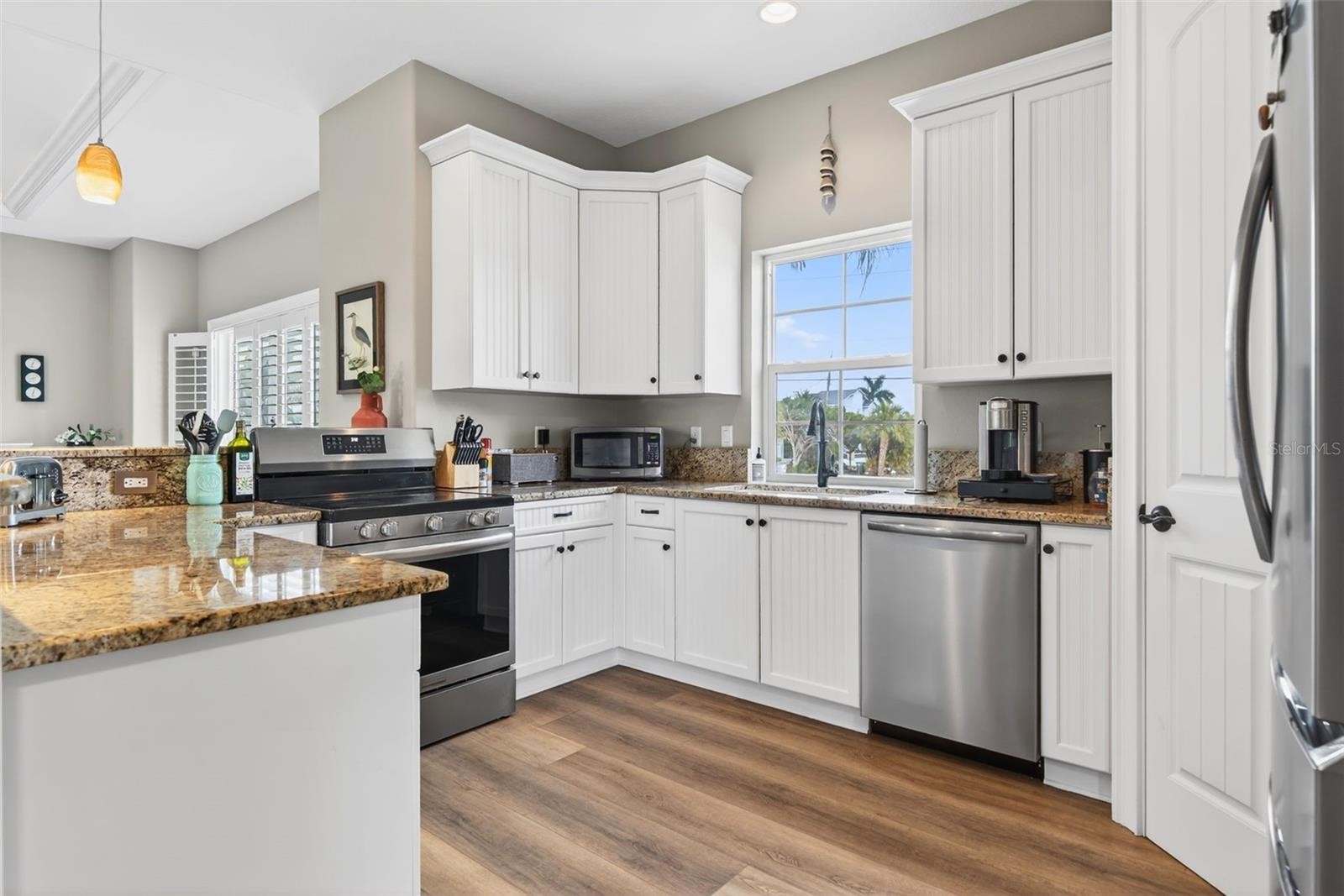 A rare find on Anna Maria Island, this elevated coastal home sits on an expansive 10,000+ square foot corner lot, offering exceptional privacy on multiple sides, an uncommon feature in the heart of Holmes Beach. Enhanced by a new metal roof (2025), newer air conditioning system (2022), storm-rated impact windows and doors, and a newly resurfaced heated pool (2025), this home offers true peace of mind and resort-style living. With weekly rental zoning, this Anna Maria Island real estate opportunity is offered fully turnkey furnished, has recently operated as a short-term rental, and is located just 3 blocks from Anna Maria Island’s sugar sand Gulf Beaches. A perfect blend of island lifestyle with strong investment flexibility. Centrally located in Holmes Beach FL, this quiet neighborhood home is close to restaurants, shopping, coffee shops, and many island attractions. This custom home is far from “cookie cutter.” Custom features include an open-concept layout with 9.5-foot ceilings, soaring tray accents, abundant natural light, luxury vinyl flooring, brand-new carpet in bedrooms, plantation shutters, and a distinctive round formal dining room that captures peaceful and picturesque views down the canal. The chef’s kitchen offers granite countertops and a spacious breakfast bar flowing into the great room, perfect for family nights or an evening of entertaining guests. The private primary suite includes an en-suite bath, a walk-in closet, and continued picturesque views of the canal. Both the primary and additional bedrooms feature built-in closet shelving and organizational systems for added ease. Step outside to a truly rare find in Holmes Beach: an oversized, completely private backyard oasis designed for ultimate relaxation. The outdoor experience begins on the elevated deck, offering the perfect vantage point over the sparkling heated pool, an ideal spot for morning coffee or evening cocktails. Below, a resort-style sunbathing terrace invites you to soak up the sun with plenty of room for intimate outdoor dining or entertaining family and friends. Fully fenced and finished with lush tropical landscaping and low-maintenance artificial turf, this expansive retreat provides the space and privacy rarely found in this area. The property offers convenient access to Sarasota-Bradenton International Airport approximately 40 minutes away, Tampa International Airport about 60-70 minutes, and IMG Academy roughly 25 minutes from the island. Plus a Holmes Beach bonus with City of Holmes Beach boat slip rentals available directly across the street on a first-come, first-served annual lease basis (currently waitlisted) for approximately $750/year.