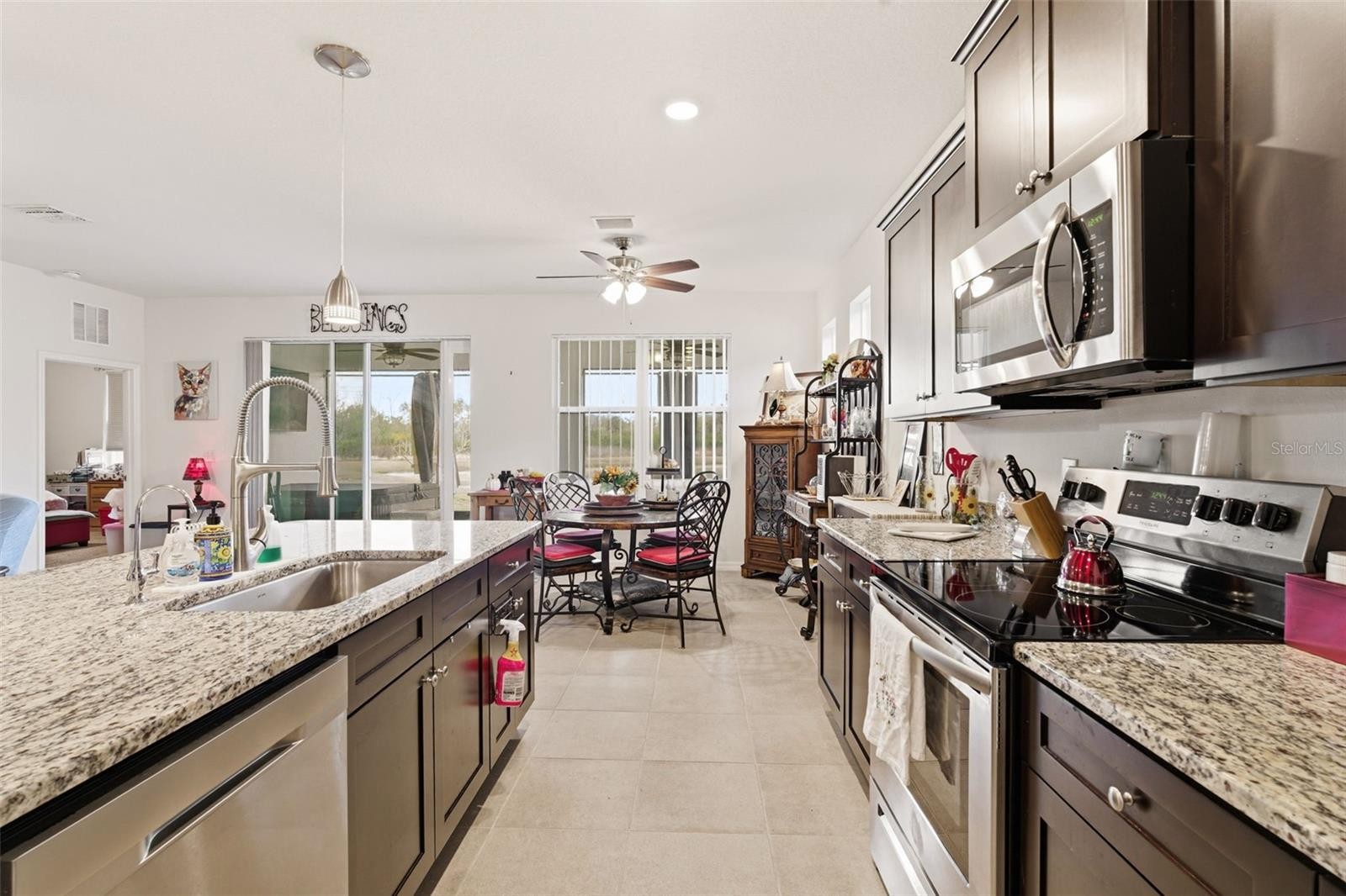 Welcome to Willow Walk! Built in 2019, this beautifully maintained one-story concrete block home offers over 2,000 square feet of thoughtfully designed living space with 4 bedrooms and 2 bathrooms—perfect for comfortable everyday living and effortless entertaining. The open-concept layout creates a seamless flow between the kitchen, dining, and living areas, all overlooking an oversized covered lanai with a 4-person hot tub—an ideal setting to embrace Florida’s indoor-outdoor lifestyle. Enjoy peaceful water and conservation views stretching across the backyard, providing both privacy and a scenic backdrop. The spacious primary suite is privately situated at the rear of the home and features an ensuite bath with an oversized walk-in shower. Two secondary bedrooms share a full bath at the front of the home, while the fourth bedroom—currently used as a therapy room—is conveniently located near the laundry room, offering flexibility for guests, a home office, or hobby space. This property sits on a 6,250+ square foot lot and includes stainless steel appliances, modern finishes, and the advantages of newer construction, including energy efficiency and low maintenance. Over $65,000 in upgrades include paid-in-full solar panels with net metering, a water softener system, customized closets, custom blinds throughout, upgraded lighting, LED holiday lighting, and a 4-person hot tub. A detailed list of upgrades and personal property is available in the attachments. Conveniently located in the Palmetto/Ellenton area, you’ll enjoy easy access to shopping, dining, parks, and major commuter routes—all within a welcoming neighborhood community. Buyer to verify all measurements and tax information, which are approximate.