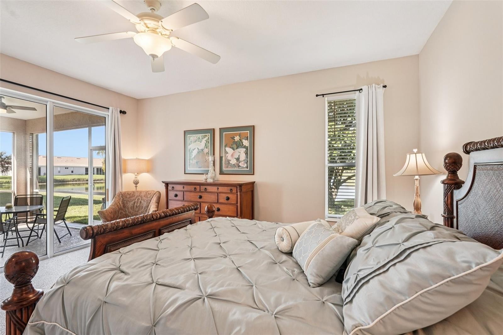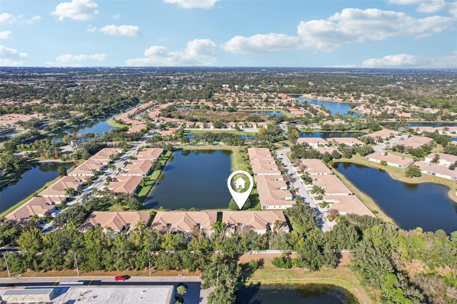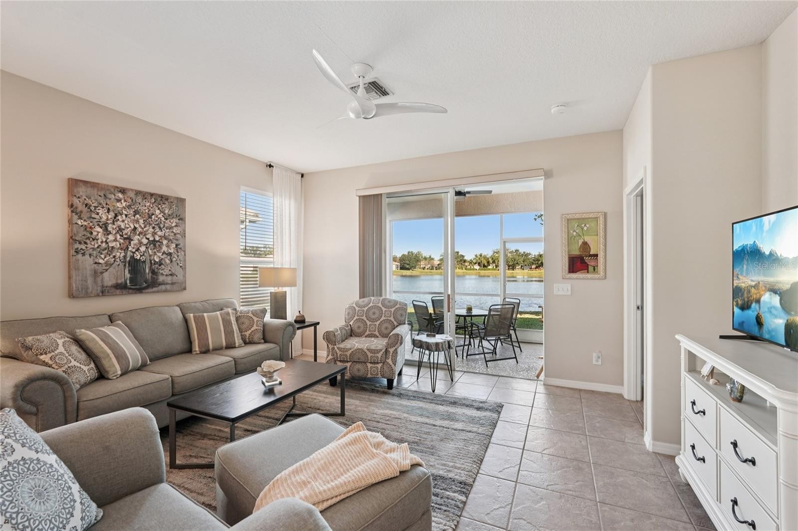 Welcome to an exceptional opportunity in the highly desirable Lakeridge Falls community — an active 55+ gated neighborhood just north of University Parkway offering maintenance-free living and outstanding resort-style amenities. This beautifully maintained move-in ready lakefront villa welcomes you with stunning water views from the moment you enter, creating a serene and inviting backdrop for everyday living. Designed for comfort and ease, the residence features two bedrooms, a versatile den, two baths, an interior laundry room, and a two-car garage. The open, light-filled floor plan flows seamlessly to a screened lanai overlooking tranquil lake views, perfect for morning coffee, evening relaxation, or entertaining guests. Truly move-in ready, this home has been meticulously cared for and thoughtfully updated, including stainless steel appliances (2019), updated primary and guest baths, HVAC system (2023), refaced kitchen cabinetry with new hardware, soft-close drawers and doors, under-cabinet lighting, luxury vinyl flooring in the den, and a painted garage floor with new garage door opener (2024). Lakeridge Falls residents enjoy an exceptional lifestyle with access to an updated clubhouse, fitness center, heated resort-style pool and spa, bocce courts, card and billiards rooms, library spaces, scenic lakeside walking paths, and a full calendar of social activities. Lush tropical landscaping, a 24-hour gated entry, and a prime Sarasota location close to I75, SRQ Airport, shopping, dining, medical facilities, cultural venues, and award-winning Gulf beaches complete the offering. This is a rare opportunity to embrace an elevated Florida lifestyle where simplicity, casual elegance, and leisure come together effortlessly. Schedule your private showing today — this one truly should not be missed.