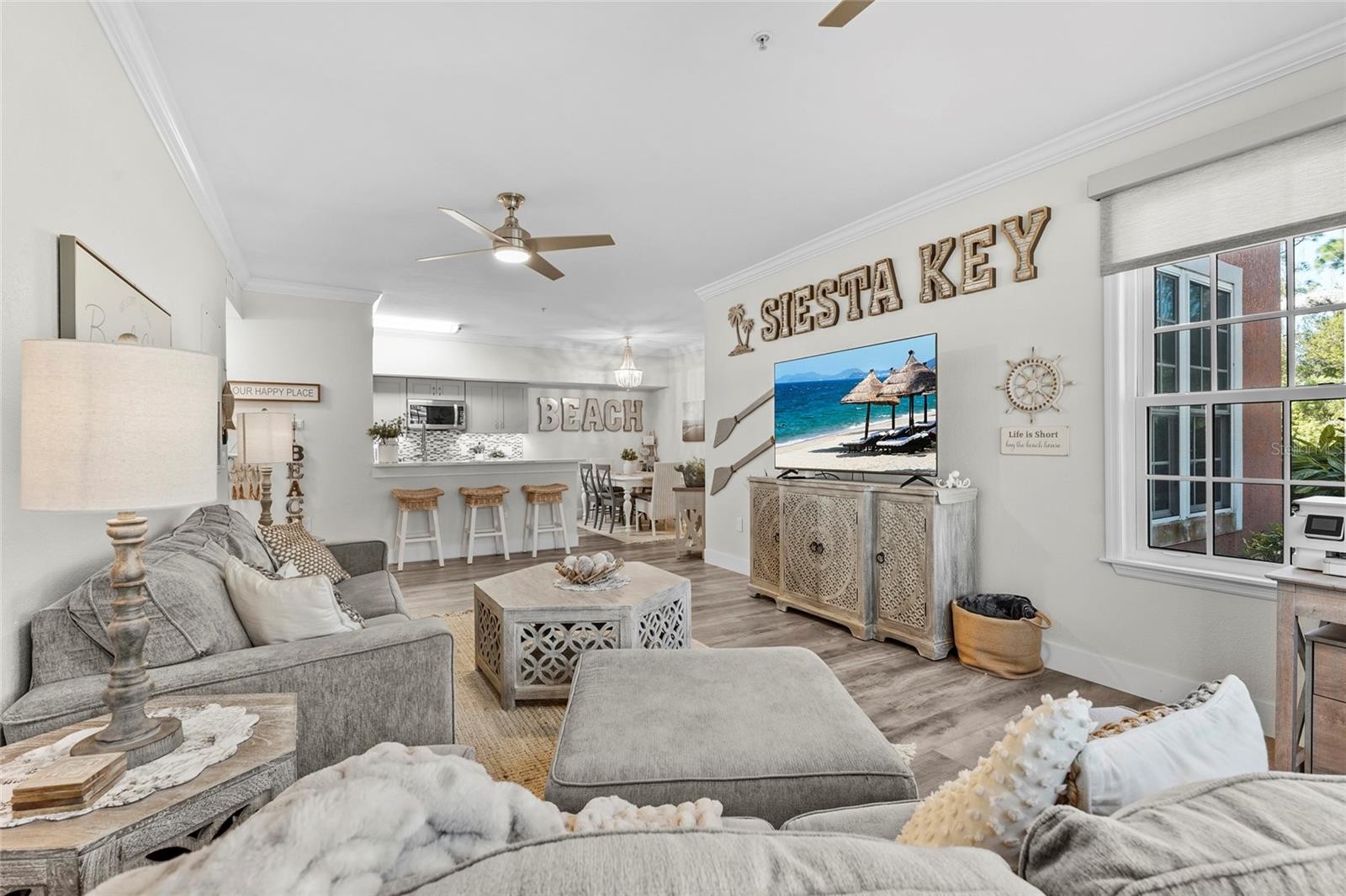 Welcome to Bella Villino at Palmer Ranch. This completely updated two-bedroom, two-bathroom condominium offered TURNKEY features gleaming quartz countertops and rich wood cabinetry with soft-close precision to the luxury vinyl flooring that flows seamlessly throughout. Newer stainless steel appliances, while both bathrooms showcase stunning marble-tiled showers. The primary suite's ensuite bathroom features a built-in wireless Bluetooth speaker. A brand-new air conditioning system and hot water heater installed in 2025. Theis unit includes a one car garage AND a covered assigned parking space. Amenities offer a pool and spa, racquetball and tennis courts, a clubhouse complete with billiards and a business center. Picnic areas, gas grills, and dedicated dog-walking stations round out this extraordinary community, all maintained by an attentive onsite management team. The location is nothing short of extraordinary. Stroll to nearby Potter Park, grab essentials at the neighboring supermarket, or venture minutes away to the legendary shores of Siesta Key. With convenient access to the Legacy Trail, downtown Sarasota's cultural treasures, and major thoroughfares.