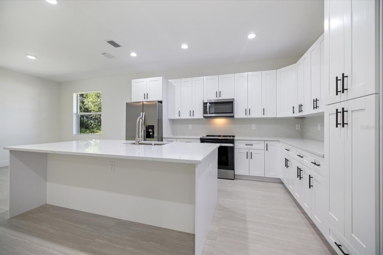 One or more photo(s) has been virtually staged. MODERN, NEW CONSTRUCTION - COME SEE THE DIFFERENCE FOR YOURSELF! WHY SETTLE FOR BORING GENERIC BUILDERS, WHEN YOU CAN GET ELEGANCE AT AN FANTASTIC PRICE! This brand-new, SLEEK 3-bed, 2-bath 2025 MODERN home is move-in ready! NO FLOOD ZONE, NO CDD, and NO HOA! BUY NEW AND REAP THE BEENFITS OF LOW HOME OWNER'S INSURANCE - CAN YOU IMAGINE ONLY PAYING $1000 a year!? PEACE OF MIND WITH ALL HURRICANE IMPACT RESISTANT WINDOWS AND DOORS! Contemporary upgrades throughout, with NO CARPERTING! All new SS appliances, a frosted HURRICANE IMPACT GLASS DOOR welcomes you home, along with a charming front porch to greet neighbors. This unique home features stylish design elements, including LARGE FLOOR TILES in every room, TALL, MODERN 8’ shaker-style doors with 9’-4” ceilings, 6” TALL BASEBOARD, and smooth, sleek flat walls in clean white palette. The sophisticated gourmet kitchen offers soft-close wood cabinetry, tall 42" upper cabinets, SPARKLING QUARTZ COUNTER-TOPS with a matching quartz backsplash, and modern elegant tiled bathrooms. The living room and dining area offer the ideal open-concept, featuring a huge breakfast bar, and an IMPACT SLIDER connecting to an enormous 24’ x 11-5" COVERED LANAI, where you’ll embrace outdoor living among an established tropical tree-filled backyard! The large master bedroom showcases a luxurious en-suite bathroom with an elegant double quartz sink, a walk-in glass-tiled shower, and CUSTOM BUILT-IN CLOSET ORGANIZERS INEVERY CLOSET! This home was built for energy efficiency and safety, featuring ALL IMPACT WINDOWS and DOORS, WHOLE HOUSE GUTTERS, plus an IRRIGATION SYSTEM! This PRIME NORTH PORT location offers a quiet neighborhood, yet you are only minutes from Port Charlotte Town Center Mall, which includes the area’s movie theater, plus numerous retail & dining! Nearby SARASOTA COUNTY SCHOOLS include Atwater Elementary (8 min), Woodland Middle School (12 min), and North Port High (20 min). Additionally, two fantastic community pools are nearby. The area's HUGE kid-friendly North Port Aquatic Center is just 20 minutes away, featuring water slides, a kiddie pool, lap pool, and a relaxing lazy river. Alternatively, you can visit nearby Centennial Park, only 3 miles away, offering memberships or walk-in access to their aquatic and fitness center, with baseball & soccer fields, playground & picnic areas, plus nature trails, all across the street. Additionally, our area’s famous Fishermen’s Village is just over the bridge, a quick 25-minute commute. Plus, the hot new area of Wellen Park, only 25 minutes east, offers new restaurants, boutique shopping and Free Friday night concerts in the park! For beach lovers, Venice or Englewood Beach can be accessed within 30 minutes or so. Come experience a quality-built new construction, and see the difference! Builder offering 1-year Builder Craftsmanship Warranty and BONUS SCREEN CAGE with ACCEPTED OFFER!