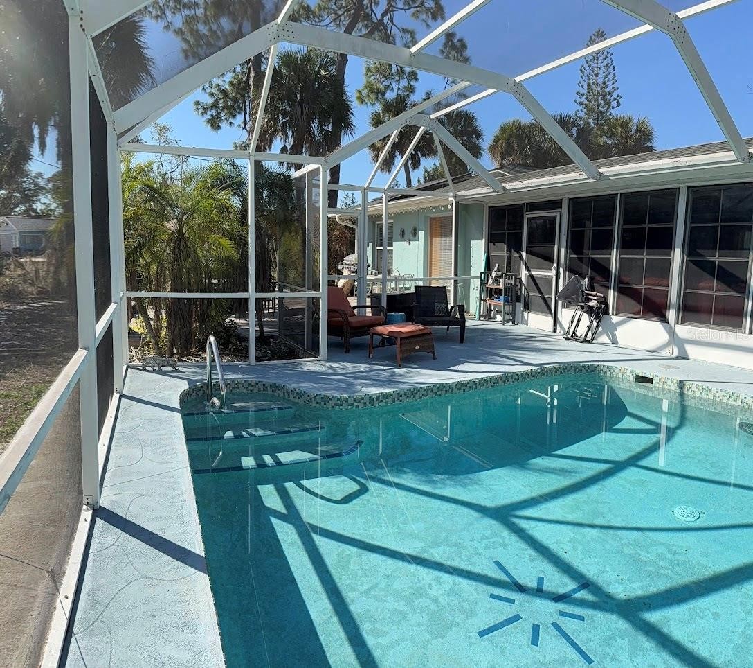 RARE DOUBLE LOT WITH DETACHED "SHE SHED"-"MAN CAVE" & CITY WATER! Discover the ultimate Florida lifestyle in this beautifully updated 2-bedroom, 2-bathroom home, featuring a detached finished shed on an expansive double lot. Situated in a quiet, established neighborhood, this property offers a level of versatility rarely found in North Port. The main residence boasts a modernized kitchen and a renovated primary & guest bathrooms, providing a contemporary feel throughout the open living spaces. All new S.S. appliances. Step outside to your private, Tropical oasis—a spacious caged pool perfect for year-round relaxation and entertaining. For peace of mind, the roof was replaced just 4 years ago and the septic was replaced in 2020. The detached guest house provides incredible potential for a mother-in-law suite, a private home office, or a hide-a-way. Unlike many properties in the area, this home is connected to City Water, eliminating the maintenance and concerns of a well system. Location is everything! You are minutes away from premier shopping and dining, yet tucked away from the hustle and bustle. With North Port’s rapid growth and the new Sarasota Memorial Hospital campus scheduled for 2028 completion, this is not just a home—it’s a smart investment in one of Florida's most promising cities. Don’t miss your chance to own this unique compound!