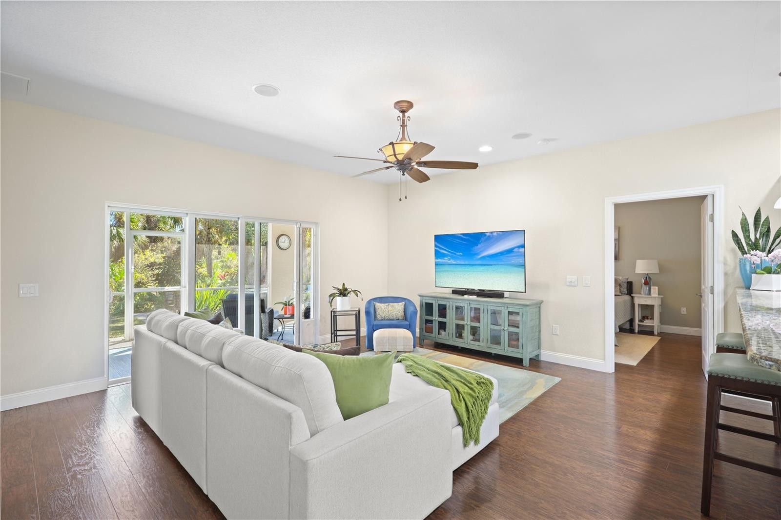 Under contract-accepting backup offers. Welcome to this beautifully maintained, high-and-dry residence at 4160 Lagoon Terrace, located in a desirable X flood zone! This thoughtfully designed 3-bedroom, 2-bath home offers an open-concept floor plan with a split bedroom layout, providing both comfort and privacy. The secluded backyard is ideal for relaxing or entertaining, featuring multiple patio areas, including a new 30 x 16 and 16x39 paver patio that seamlessly extends the living space and enhances an indoor-outdoor lifestyle—without the extra maintenance of a pool. The home is equipped with hurricane-impact windows and a generator with external garage wall outlet, offering peace of mind without compromising style. Additional upgrades include dusk to dawn exterior soffit lights, a whole-house water filtration system, reverse osmosis at the kitchen sink, new roof (2023), new induction cooktop (2025), new water heater (2024), a new refrigerator (2025), and surround sound speakers throughout, perfect for an elevated home entertainment experience. With no HOA restrictions, the property allows for convenient parking of a boat or RV. Located in the growing city of North Port, this home is within easy reach of multiple airports and just 25 minutes from Manasota and Venice beaches. Sports enthusiasts will appreciate the proximity to CoolToday Park in Wellen Park (Atlanta Braves spring training) and Charlotte Sports Park (Tampa Bay Rays spring training). The area also offers an abundance of shopping, dining, walking and biking trails, pickleball courts, boat ramps, and golf courses. Schedule your showing today!!
