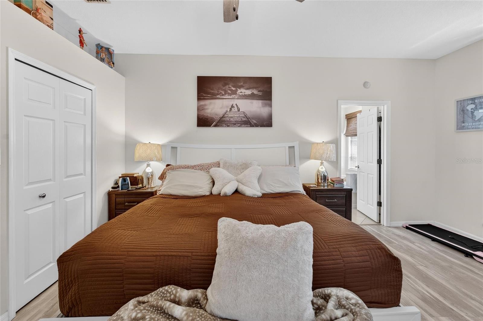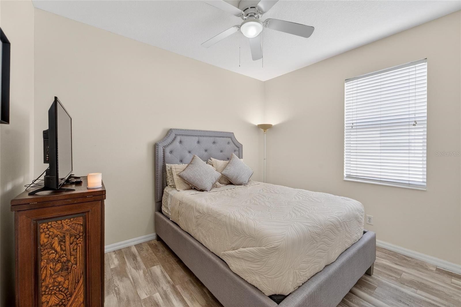 Welcome to easy, one-level living in a private community with no through streets — offering peace, privacy, and a true neighborhood feel. This beautifully maintained 3-bedroom, 2-bathroom home is ideal for first-time buyers or anyone looking to enjoy the convenience of single-story living. With a thoughtfully designed split floor plan, the primary suite is tucked away from the other bedrooms, creating a quiet retreat at the end of the day. The recently remodeled kitchen makes this home completely move-in ready — giving you updated style and functionality without the stress or extra expense of renovations. And with no carpeting throughout, you’ll love the modern look, easy cleaning, and low-maintenance lifestyle. All bedrooms feature ceiling fans for added comfort, and the home has been clearly well cared for — offering peace of mind to buyers who want something solid and reliable. Step outside to your screened-in lanai overlooking a tranquil pond with a fountain — the perfect spot for morning coffee, relaxing evenings, or hosting friends in a serene setting. The nicely landscaped yard adds to the curb appeal and welcoming feel. With a 2-car garage and a location designed for minimal traffic and maximum privacy, this home checks all the boxes for comfort, convenience, and long-term livability. Schedule your showing today and see why this home feels just right the moment you walk in.