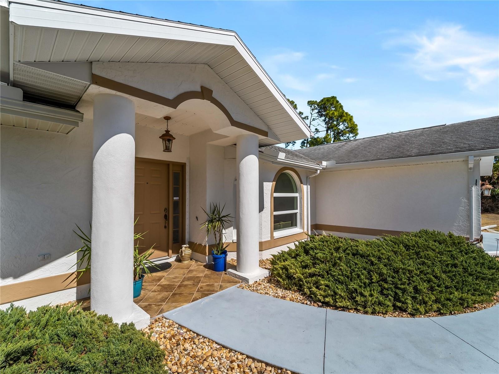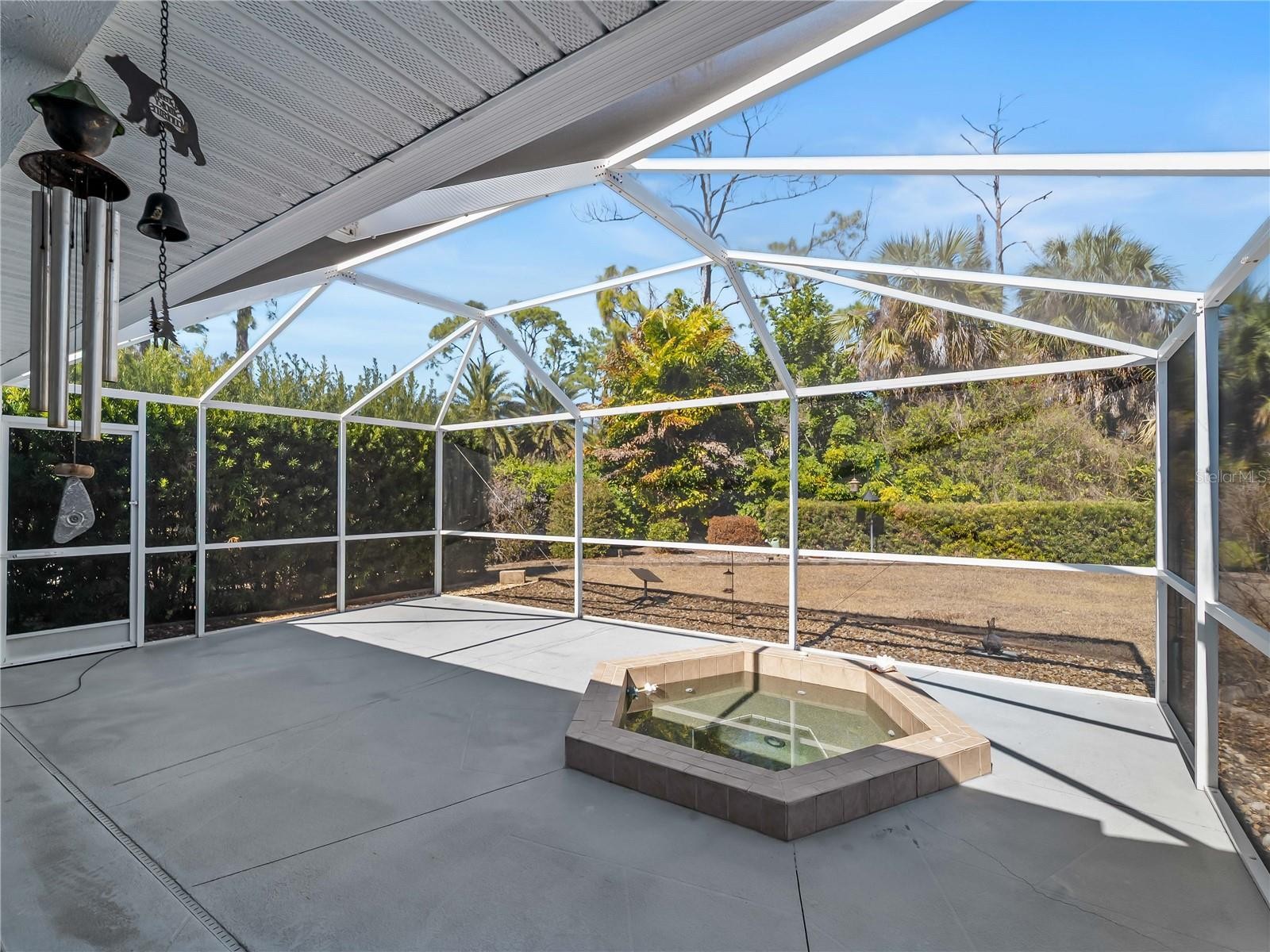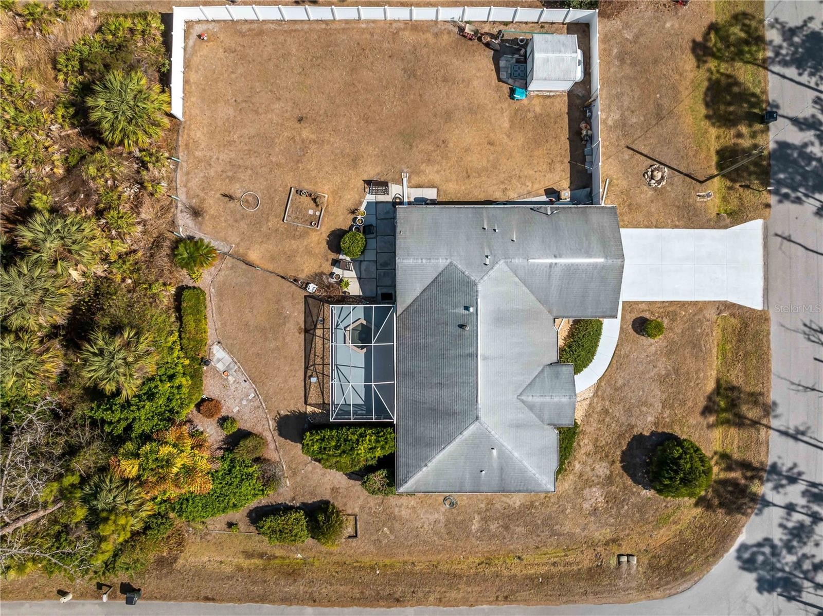 One or more photo(s) has been virtually staged. FLOOD INSURANCE NOT REQUIRED, WHOLE HOUSE GENERATOR — a well-maintained 3-bedroom, 2-bath residence with a 2-car garage, situated on an oversized corner homesite with city water service. This property offers exceptional outdoor space, including an additional half lot to the east and a buildable lot to the north, for a combined total of approximately 25,491 square feet. Mature landscaping provides privacy and a natural backdrop, while the screened patio and in-ground heated saltwater spa create an inviting outdoor living area. The home is equipped with impact windows and sliding doors, hurricane shutters, a hurricane-rated garage door, and a 16kW whole-house generator with automatic transfer switch. Additional updates include overhead plumbing, a poly septic tank replacement (2023), and a 2022 air conditioning system. Granite countertops, central vacuum, and added insulation contribute to everyday comfort and functionality. Located outside of currently designated Special Flood Hazard Areas according to publicly available flood maps (buyer to verify), this property offers space, improvements, and flexibility rarely found on a corner parcel of this size. All this AND a fenced back yard with a shed.