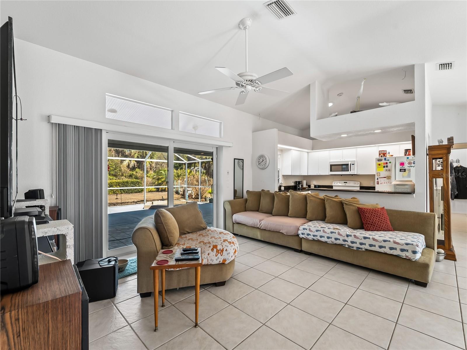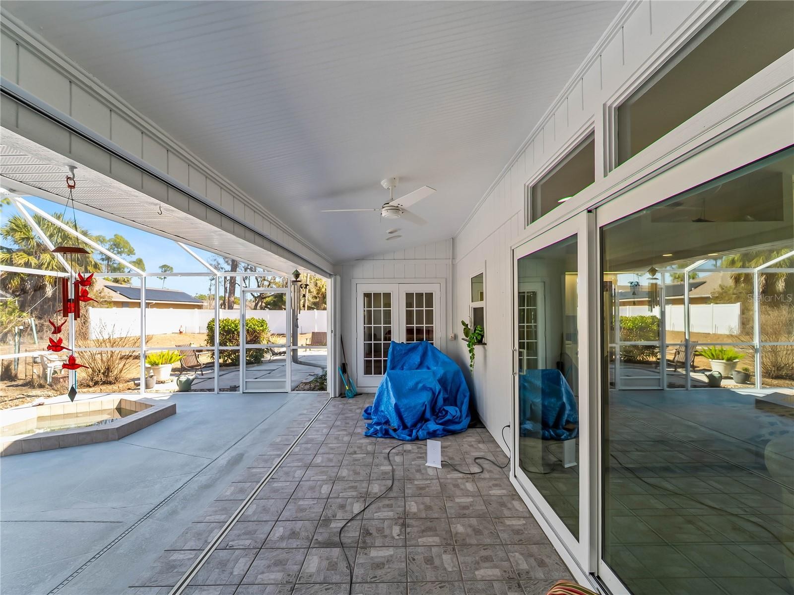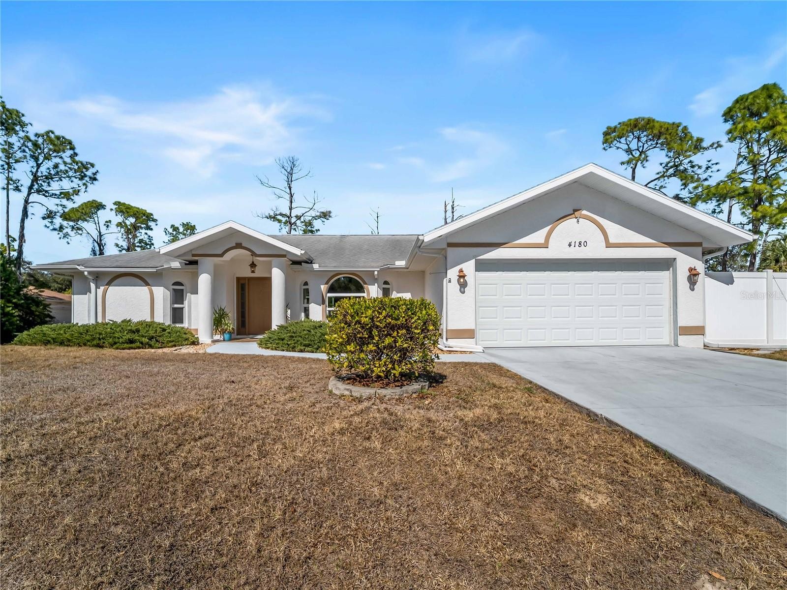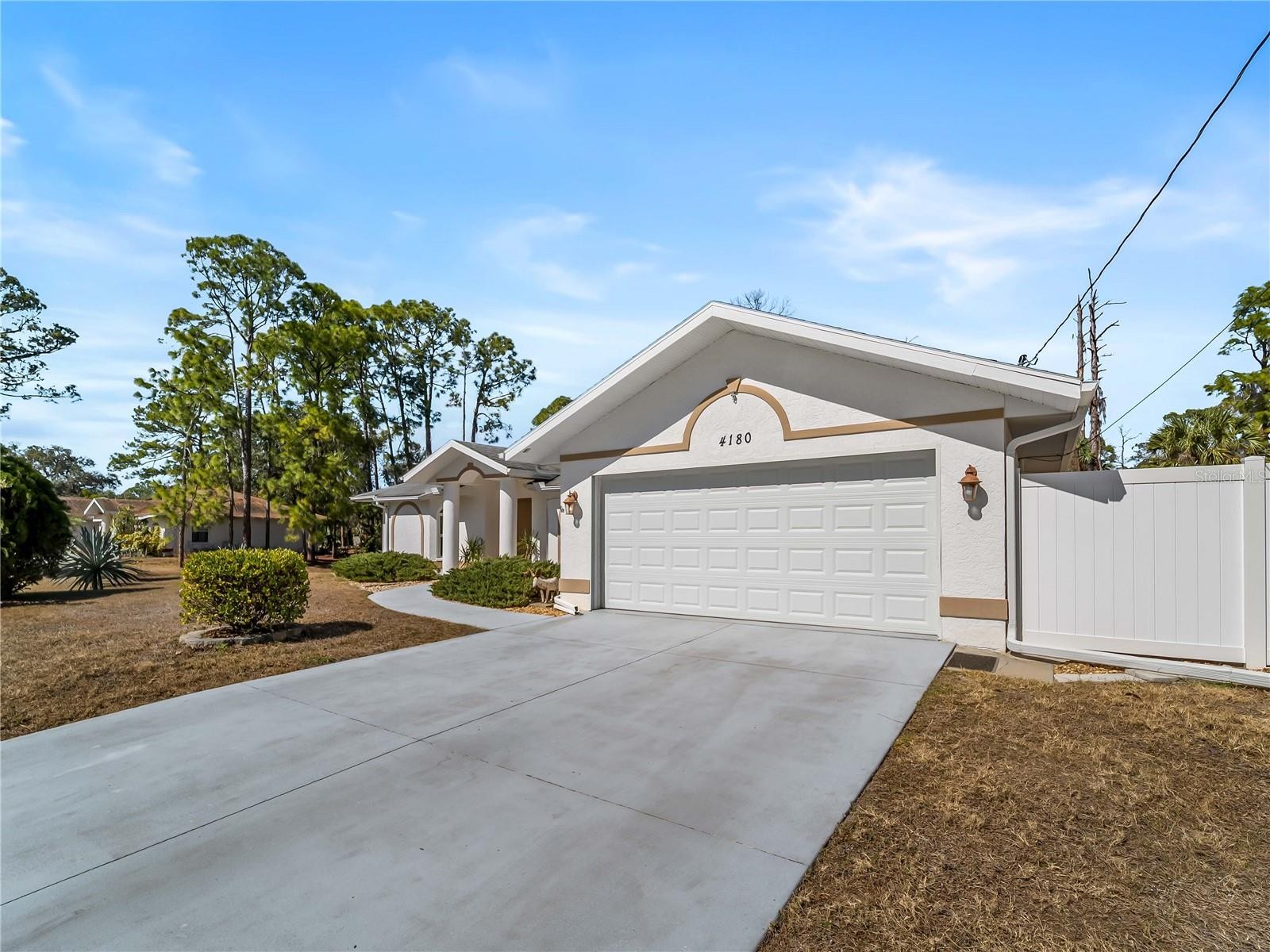 One or more photo(s) has been virtually staged. FLOOD INSURANCE NOT REQUIRED, WHOLE HOUSE GENERATOR — a well-maintained 3-bedroom, 2-bath residence with a 2-car garage, situated on an oversized corner homesite with city water service. This property offers exceptional outdoor space, including an additional half lot to the east and a buildable lot to the north, for a combined total of approximately 25,491 square feet. Mature landscaping provides privacy and a natural backdrop, while the screened patio and in-ground heated saltwater spa create an inviting outdoor living area. The home is equipped with impact windows and sliding doors, hurricane shutters, a hurricane-rated garage door, and a 16kW whole-house generator with automatic transfer switch. Additional updates include overhead plumbing, a poly septic tank replacement (2023), and a 2022 air conditioning system. Granite countertops, central vacuum, and added insulation contribute to everyday comfort and functionality. Located outside of currently designated Special Flood Hazard Areas according to publicly available flood maps (buyer to verify), this property offers space, improvements, and flexibility rarely found on a corner parcel of this size. All this AND a fenced back yard with a shed.
