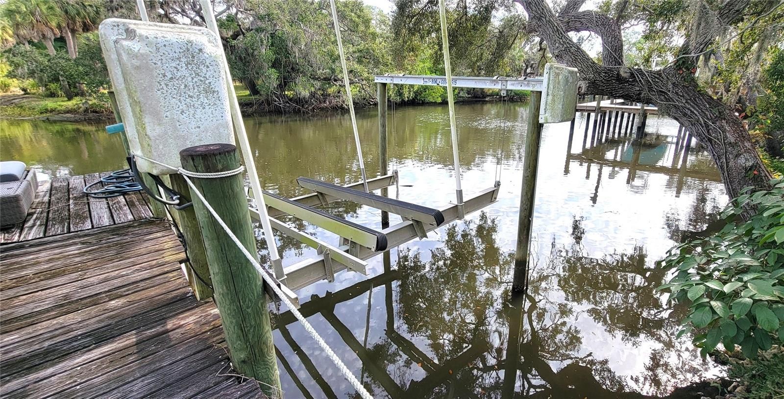 UNBELIEVABLE OPPORTUNITY! This 3-4 bedroom / 3 bathroom home is directly on Phillippi Creek with a dock and boat lift. This home sits at the very private end of a cul de sac on .5 acres of land! Enter and immediately notice the soaring 15-foot vaulted ceilings & two skylights in the living room with fireplace and handsome stonework all the way up. The rear private patio overlooks greenery. The eat-in kitchen has the same high ceilings and features a central island, quartz tops, raised-panel cabinetry, and a pantry. The 15-foot ceilings carry into the primary bedroom and there is a door out to the rear screened patio, swimming pool, and hot tub. The primary bath features a walk-in closet, dual vanities, and separate shower and soaking tub. There is a separate dining room and split guest bedroom/bath on the main floor as well. Upstairs has a third bedroom, a small bathroom, and fourth bedroom (no closet)-also perfect as an office. Come make this special home all your own with your remodeling ideas and a little TLC! --What the boater's want to know...The dock is older as is the lift. There is a sitting area at the end of the dock for sunrise. It appears to have 3-foot depth under the lift at mean-high tide and it is approximately a relaxing 35-minute boat ride to the Intracoastal Waterway passing under one bridge with approximate clearance of 9.5'. Come see this super waterfront opportunity today at an unbelievable price!