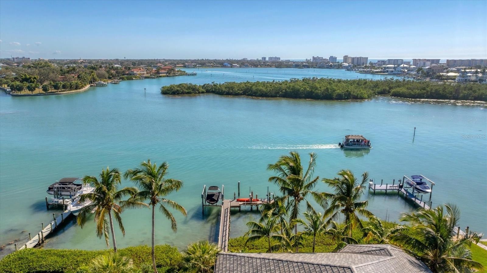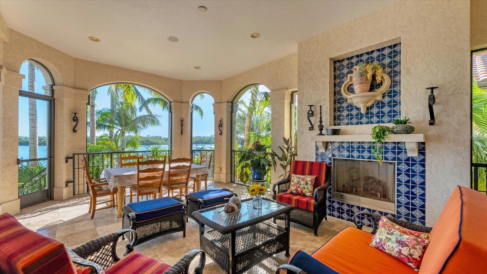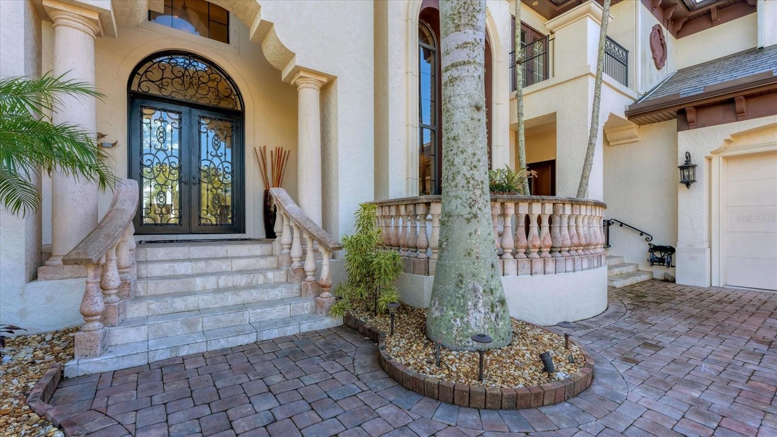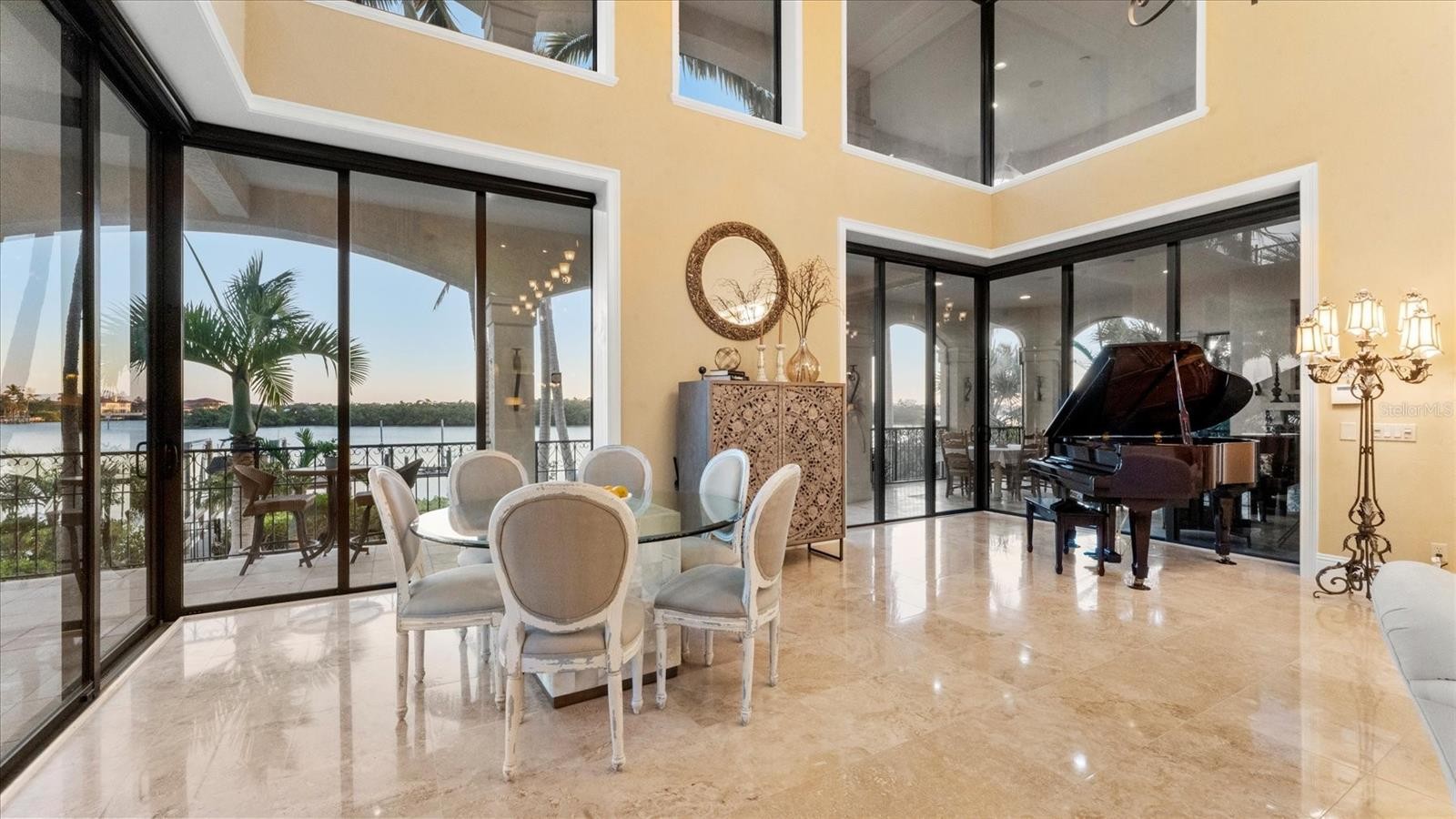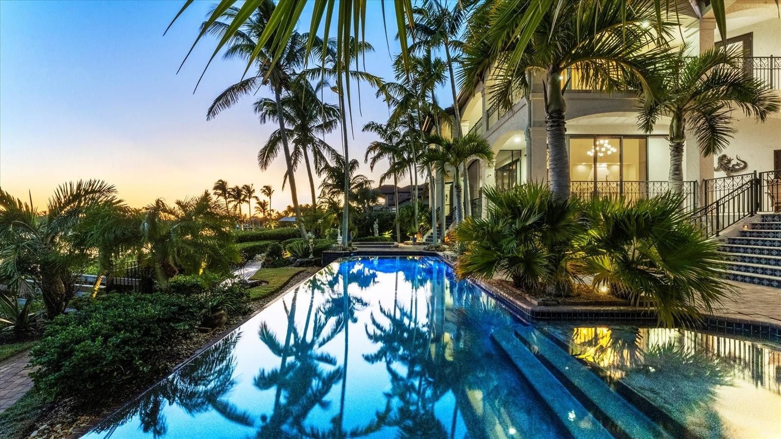 Set along the tranquil shores of Dona Bay, this John Cannon–designed residence exudes timeless sophistication and refined coastal living. Over 5,700 square feet of thoughtfully designed open-concept living space is enhanced by soaring 30 ft. ceilings, three fireplaces, a sweeping staircase, polished travertine floors throughout and beautiful Mediterranean architectural interests throughout. Formal and casual living areas unfold seamlessly, opening to multiple balconies, ideal for entertaining and relaxed waterfront living. The magnificent kitchen serves as the heart of the home, featuring exotic 2" blue Bahia granite counters, a large gas range, 2 dishwashers, 2 copper sinks, and wet bar with walk-in 1000 bottle wine cellar. The main floor also boasts two grand living areas with stunning water views, one of two primary suites, two guest bedrooms, 2 1/2 bathrooms and a butler pantry with laundry facilities. The elevator leads to the second floor where a dedicated game room, private office, and the magnificent primary suite serves as a private sanctuary, opening to a romantic terrace overlooking the bay. A closet fit for royalty also hosts a washer and dryer for convenience. The primary bathroom boasts a full room mirror, two large vanities, walk in shower and Roman tub. Outdoors, the home’s graceful lines lead to an infinity saltwater pool with a sun deck, spa, full bath with A/C, and resort-style entertainment area, all shaded by 92 palm trees. A bayfront walkway leads to the new Trex dock with a 10,000 lb lift, completing the experience. This is a 4-zone house, all units new, a new steel "EDCO" roof and two septic tanks with new floats and pumps. The extensive list of improvements is available in the attachments.