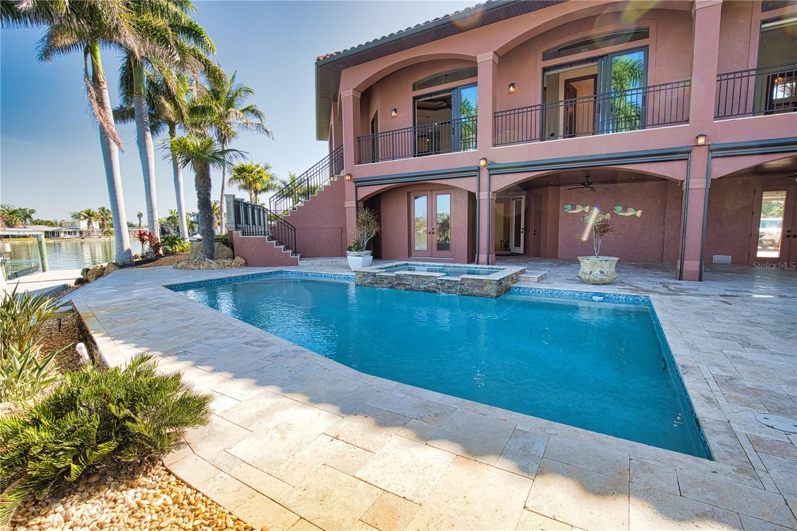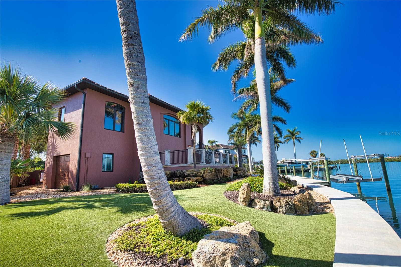 **Welcome to 420 Palmetto Crescent – A Luxurious Waterfront Oasis** Step into a realm of unparalleled elegance and breathtaking waterfront views at this custom-built masterpiece by Beechwood Builders. Nestled in the serene Nokomis, Florida, this stunning residence boasts 145 feet of private bay frontage, offering direct access to the Gulf of America just minutes away—perfect for boating enthusiasts. This exquisite 3-bedroom, 2.5-bath home is designed for both relaxation and entertainment. The spacious garage accommodates up to 7 cars and includes a workshop area. Dive into the luxurious saltwater pool or unwind in the spa, by an inviting outdoor kitchen, featuring a new gas grill, ideal for alfresco dining. The beautifully landscaped property features a meticulously laid paver brick driveway, as well as, pavers surrounding the pool and covered lanai. Low-maintenance artificial turf eliminates the need for mowing. At the heart of the home lies a chef’s kitchen, complete with top-of-the-line Jenn- Air appliances. Elegant cherry wood cabinets and doors throughout add a warm touch, and designer pendant lights create an inviting atmosphere over the expansive island. The grandeur continues in the great room, which features a double bump-up ceiling soaring to 14 feet, adorned with sophisticated crown molding and a wet bar complete with a beverage cooler. Enjoy seamless transitions from the living and dining areas to the balcony, where you can revel in serene views overlooking the pool, spa, and picturesque Lyons Bay. Centrally located, this luxurious residence is just a stone's throw from shopping, gourmet restaurants, stunning beaches, and the charming Venice Island. Experience the lifestyle you have always dreamed of—schedule your private showing today and make 420 Palmetto Crescent your luxurious waterfront sanctuary.