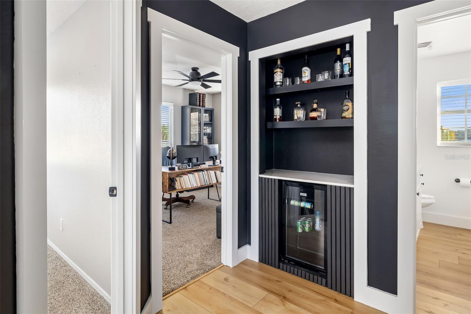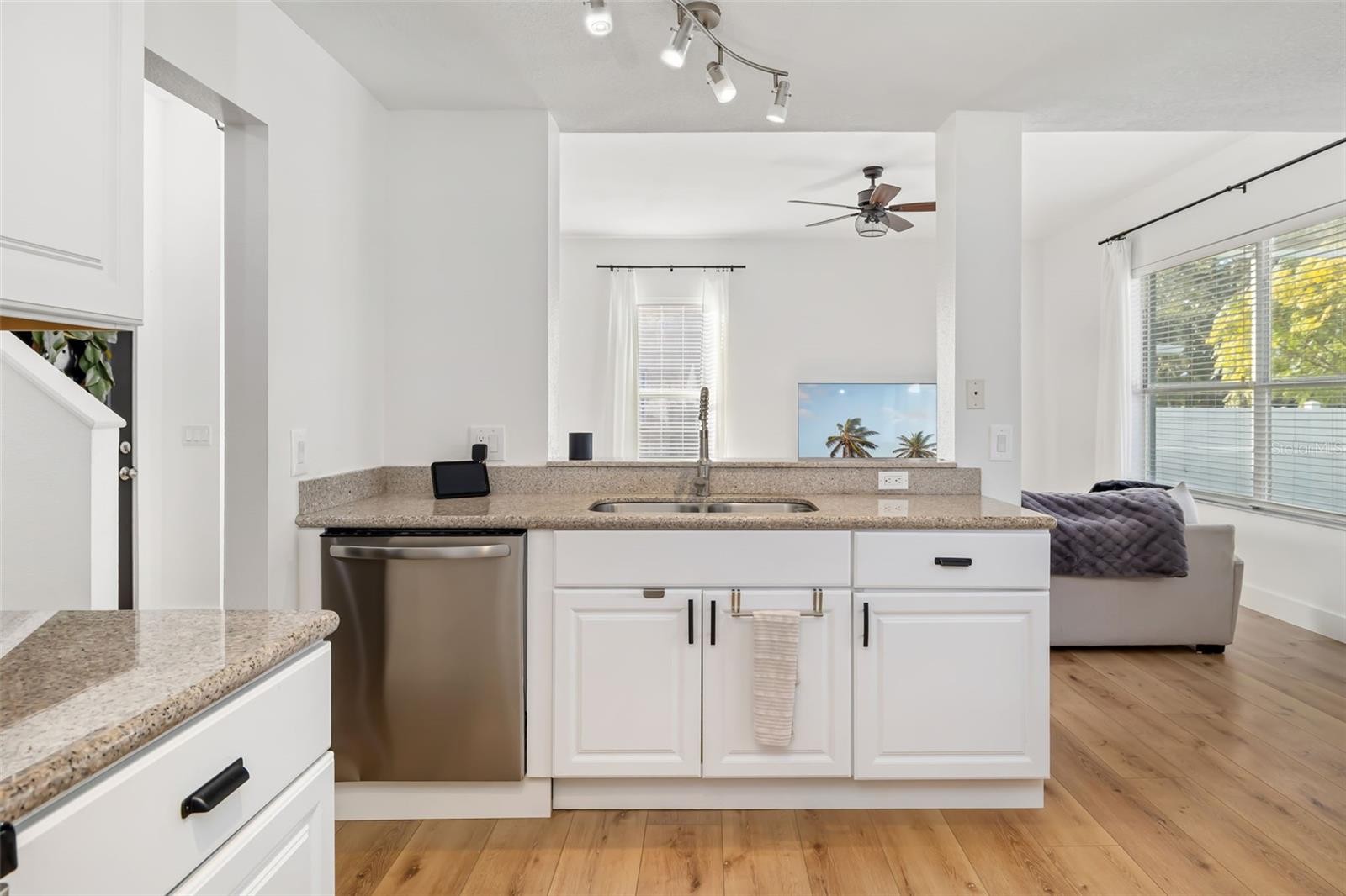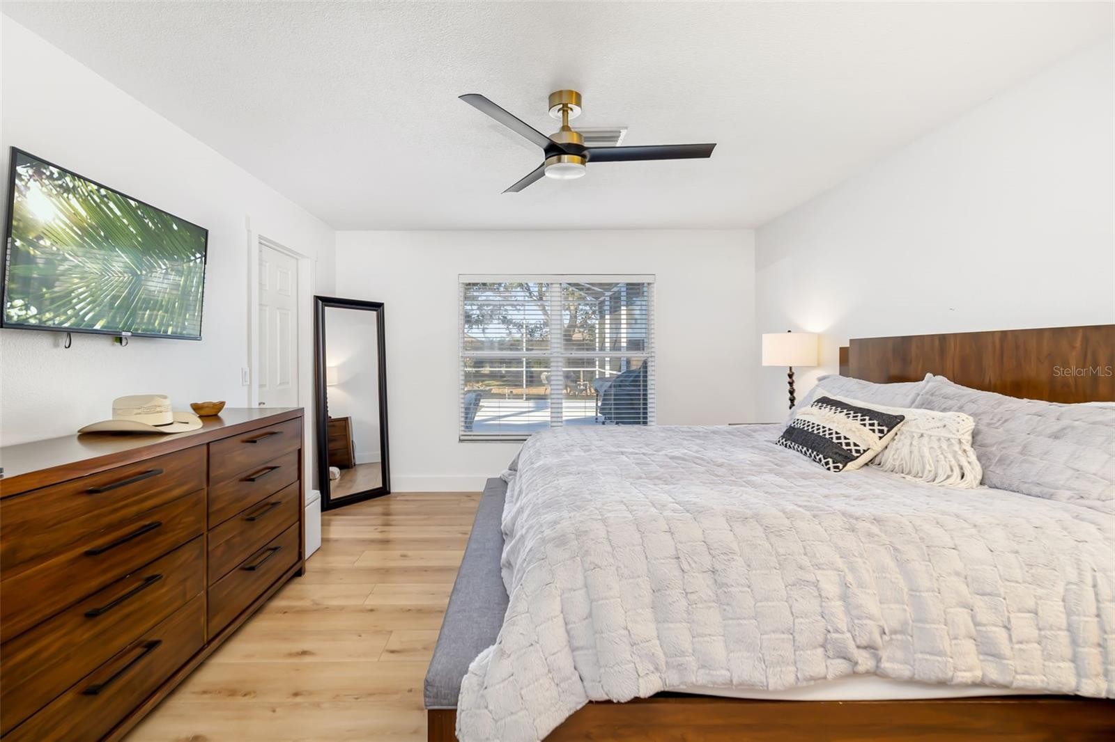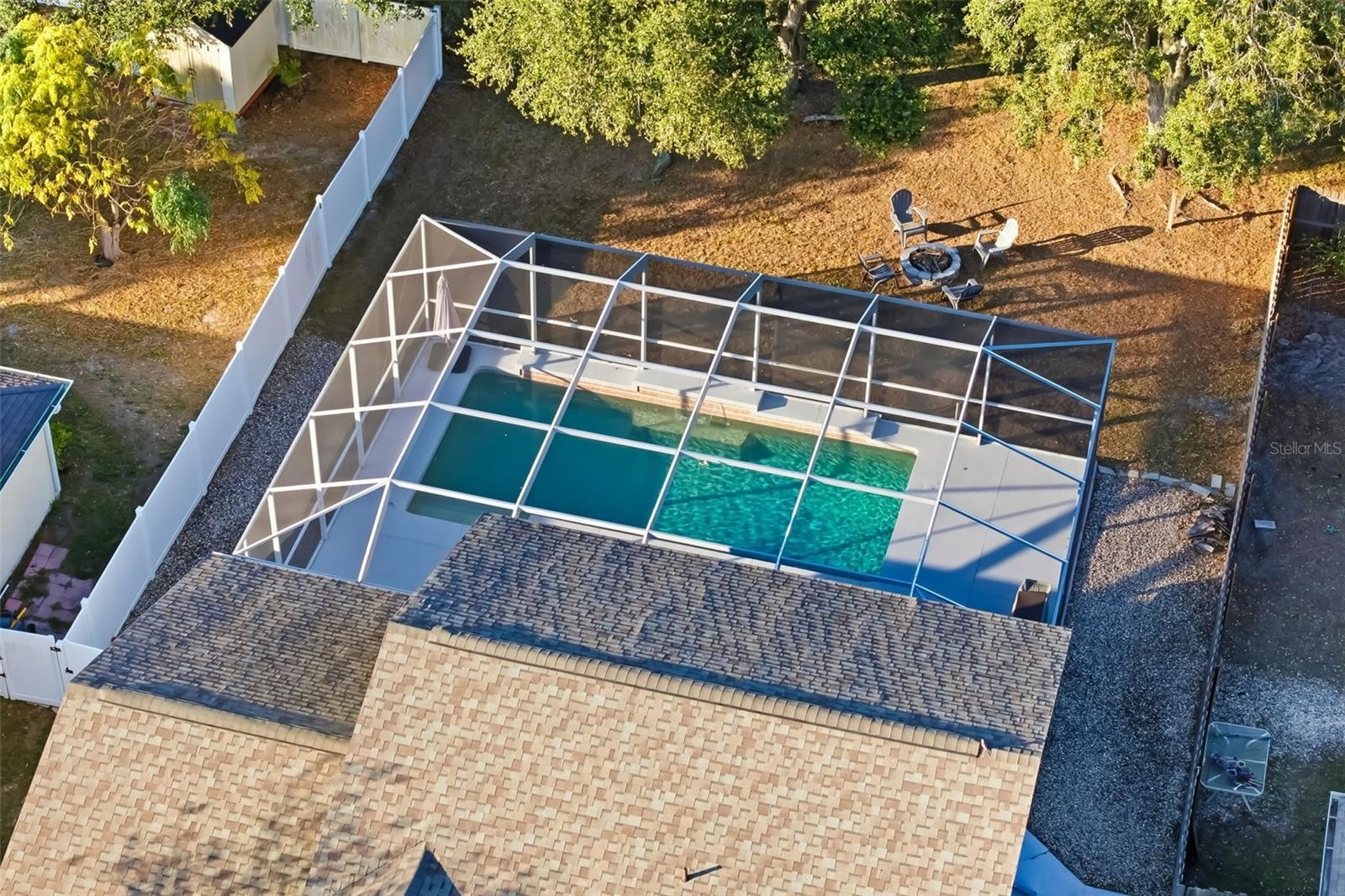 Beautifully 3-bedroom, 2.5-bath pool home offering privacy and comfort. The primary suite is conveniently located on the first floor, with two additional bedrooms upstairs providing flexibility and separation. Upstairs, a large loft area features a mini fridge and dry bar, making it an ideal space for a game room, media area, or additional living area. A large window overlooks the pool, filling the space with natural light and creating an inviting atmosphere. The home offers numerous updates, including new flooring throughout, a roof replaced in 2019, A/C replaced in 2022, and a water heater replaced in 2022. Both the upstairs bathroom and the half bath have been recently remodeled. Step outside to an oversized pool patio, perfect for entertaining or relaxing in a private setting. The two-car garage includes built-in shelving, providing excellent storage and organization. Conveniently located near I-75 and I-275, with easy access to new shopping, dining, and everyday conveniences, this beautiful home is ready for its next owner